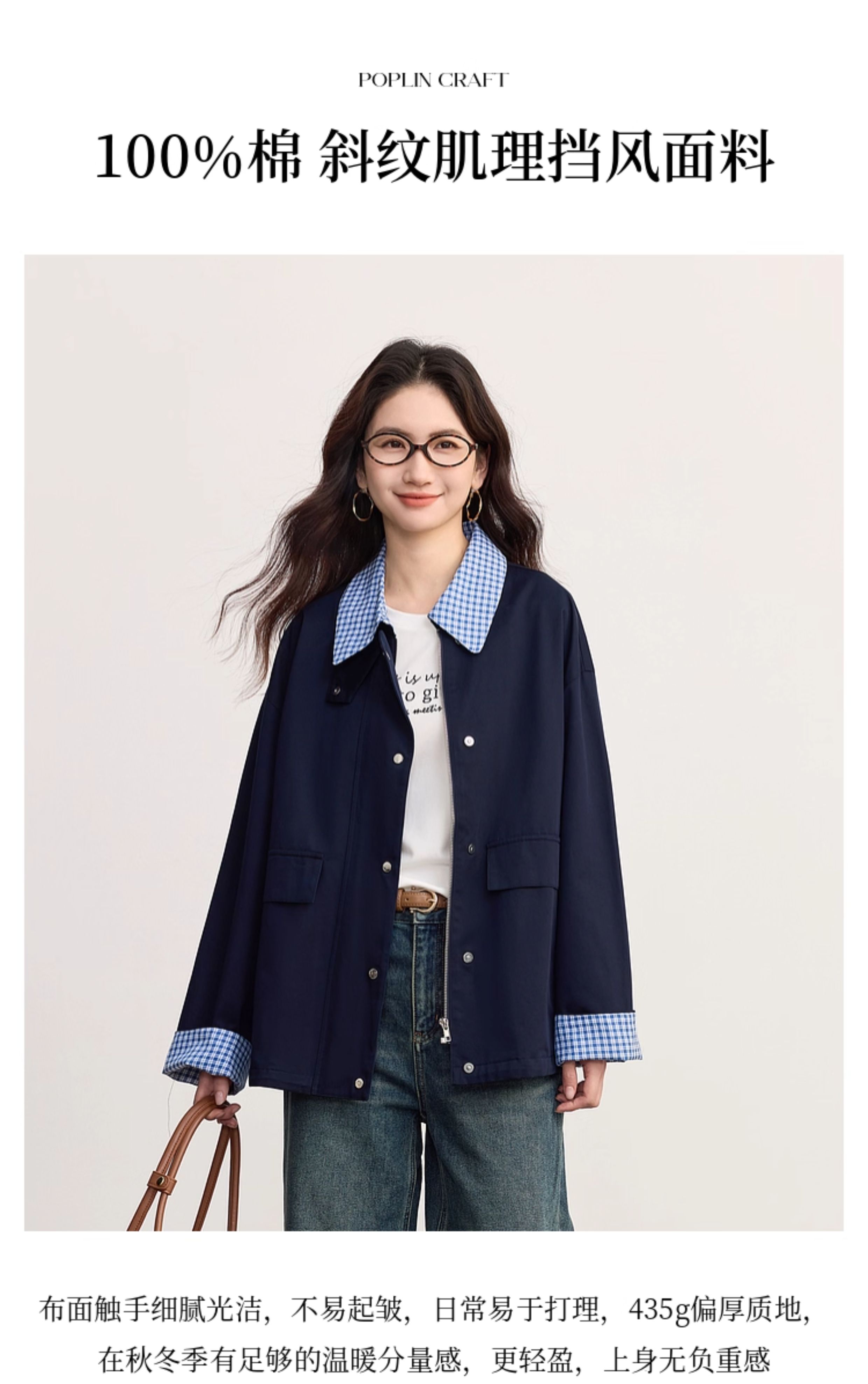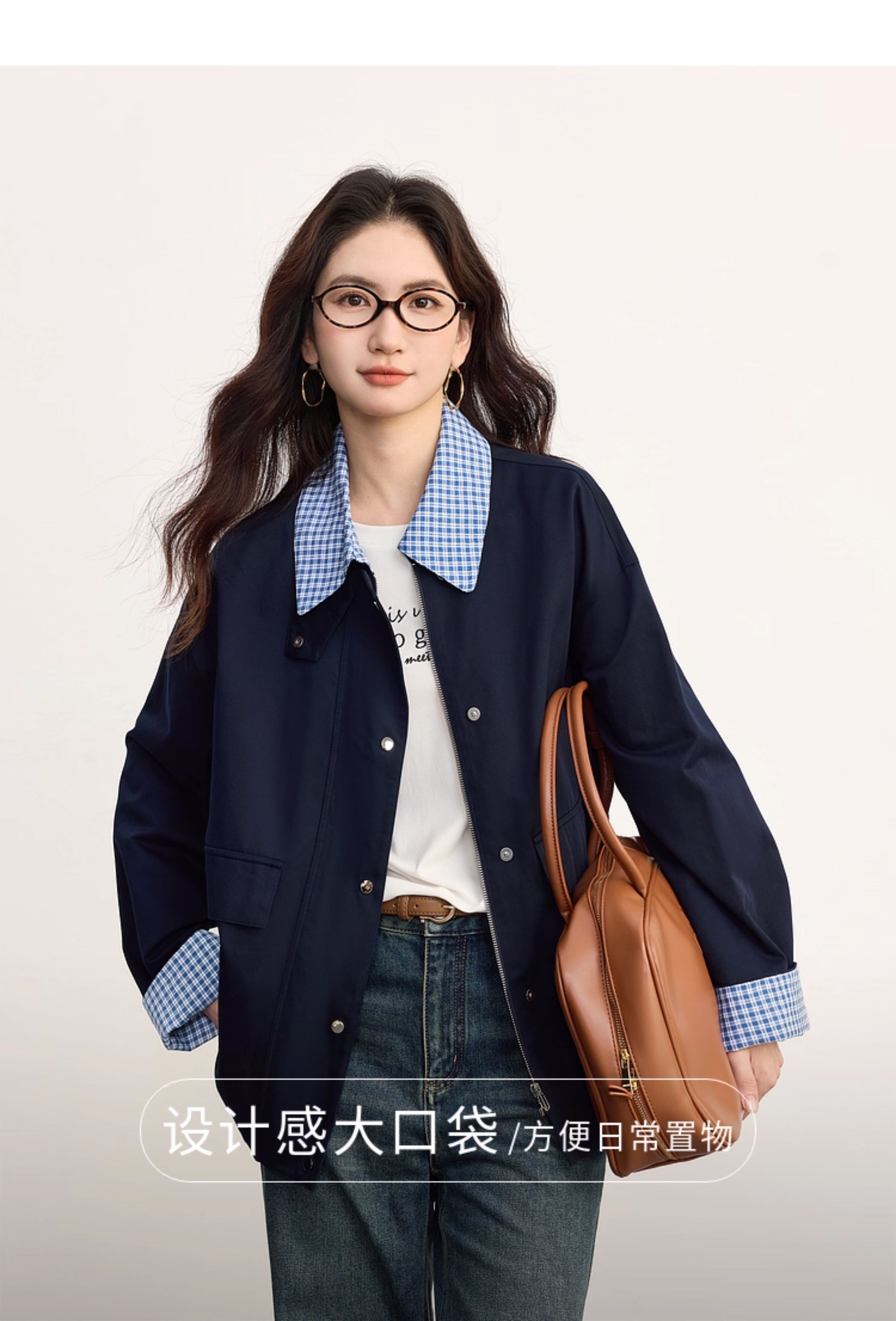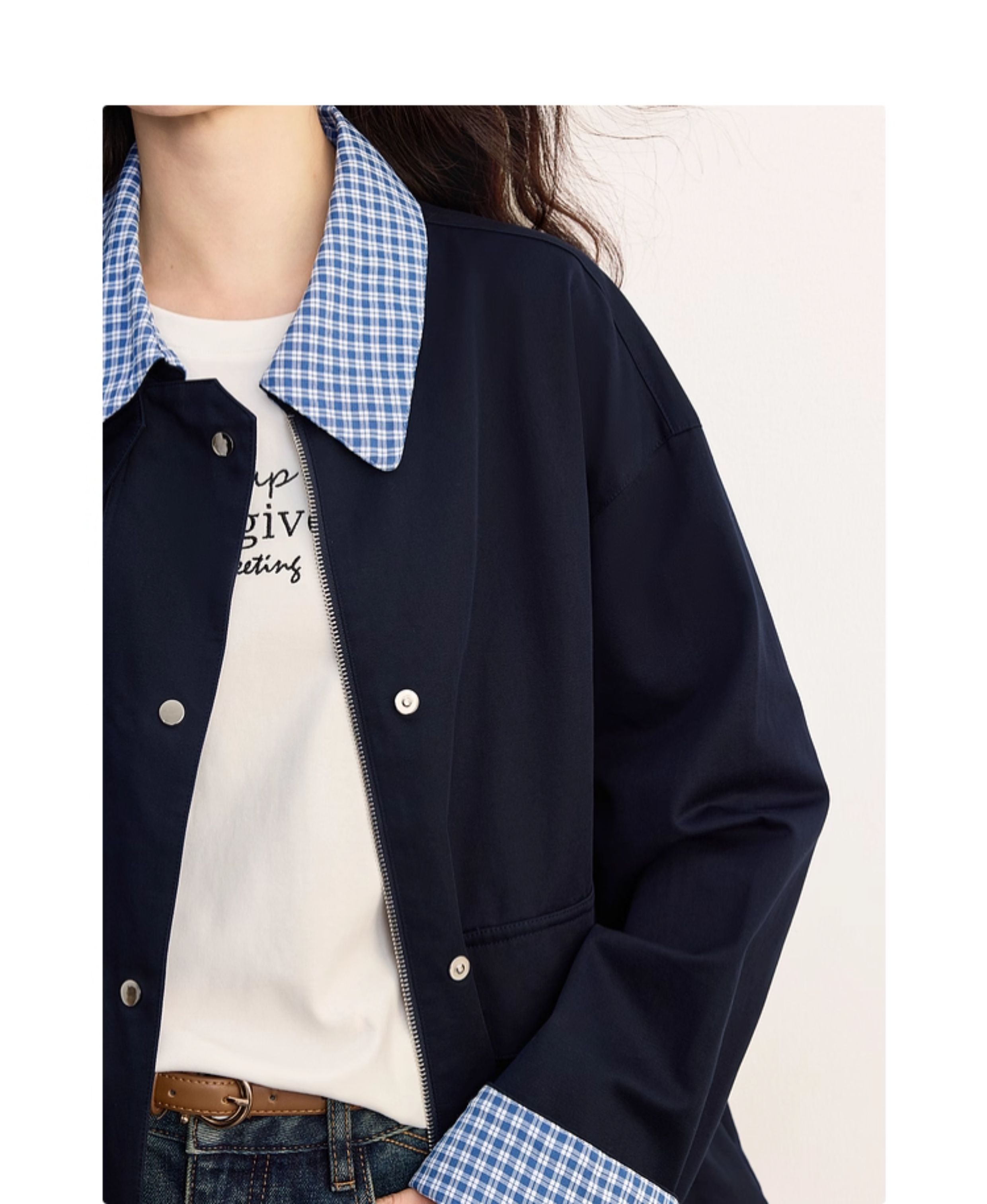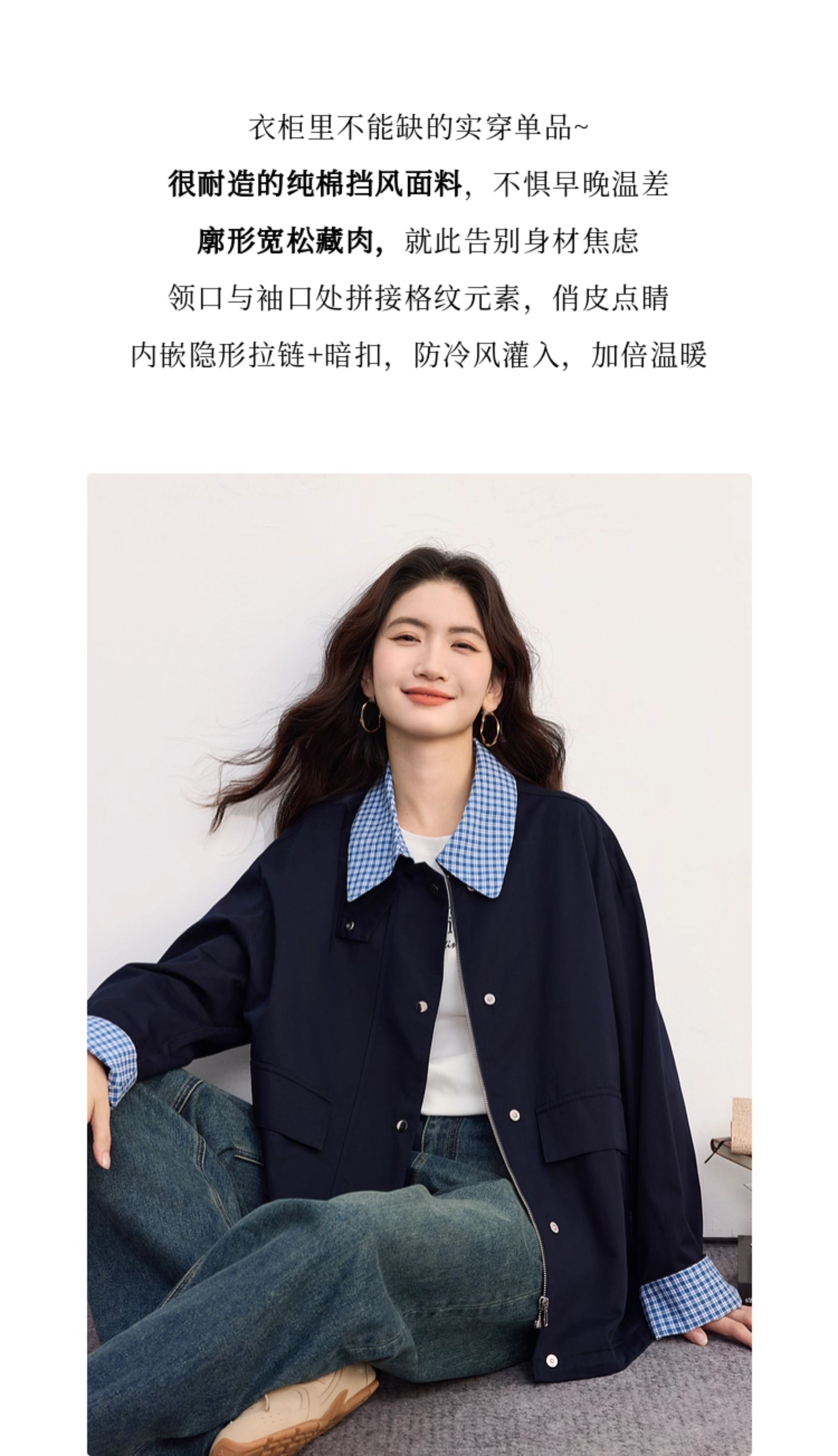 【09/17新品】熙世界假两件格子POLO领外套女2025秋季新款休闲拉链开衫短款上衣