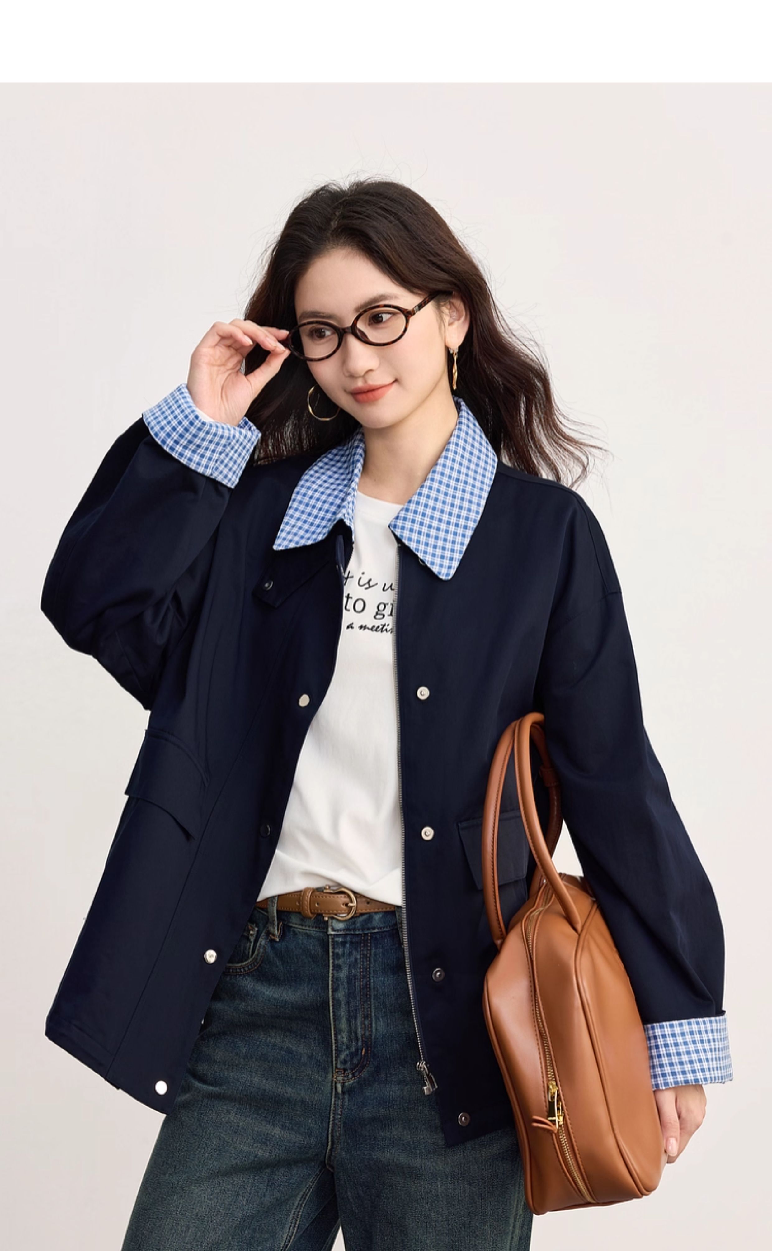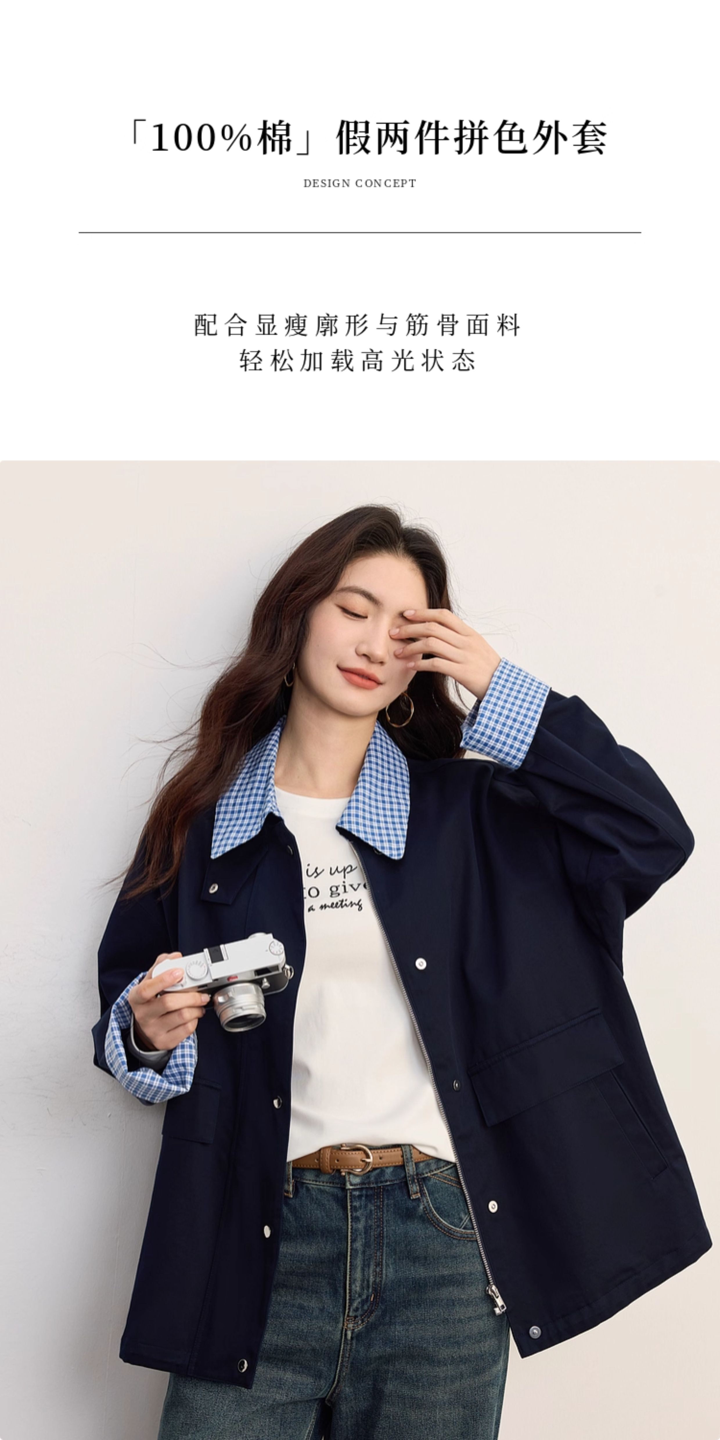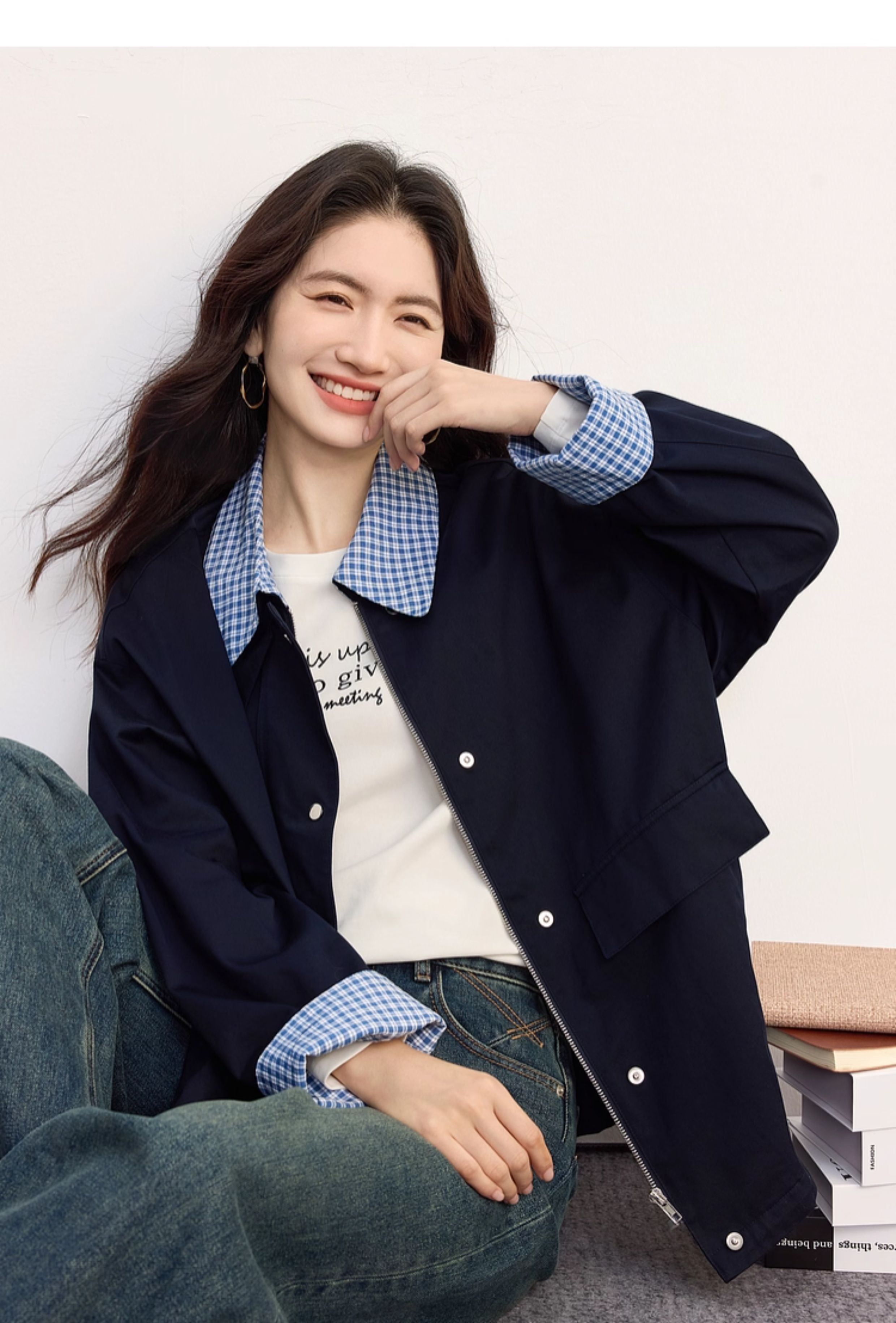 【09/17新品】熙世界假两件格子POLO领外套女2025秋季新款休闲拉链开衫短款上衣