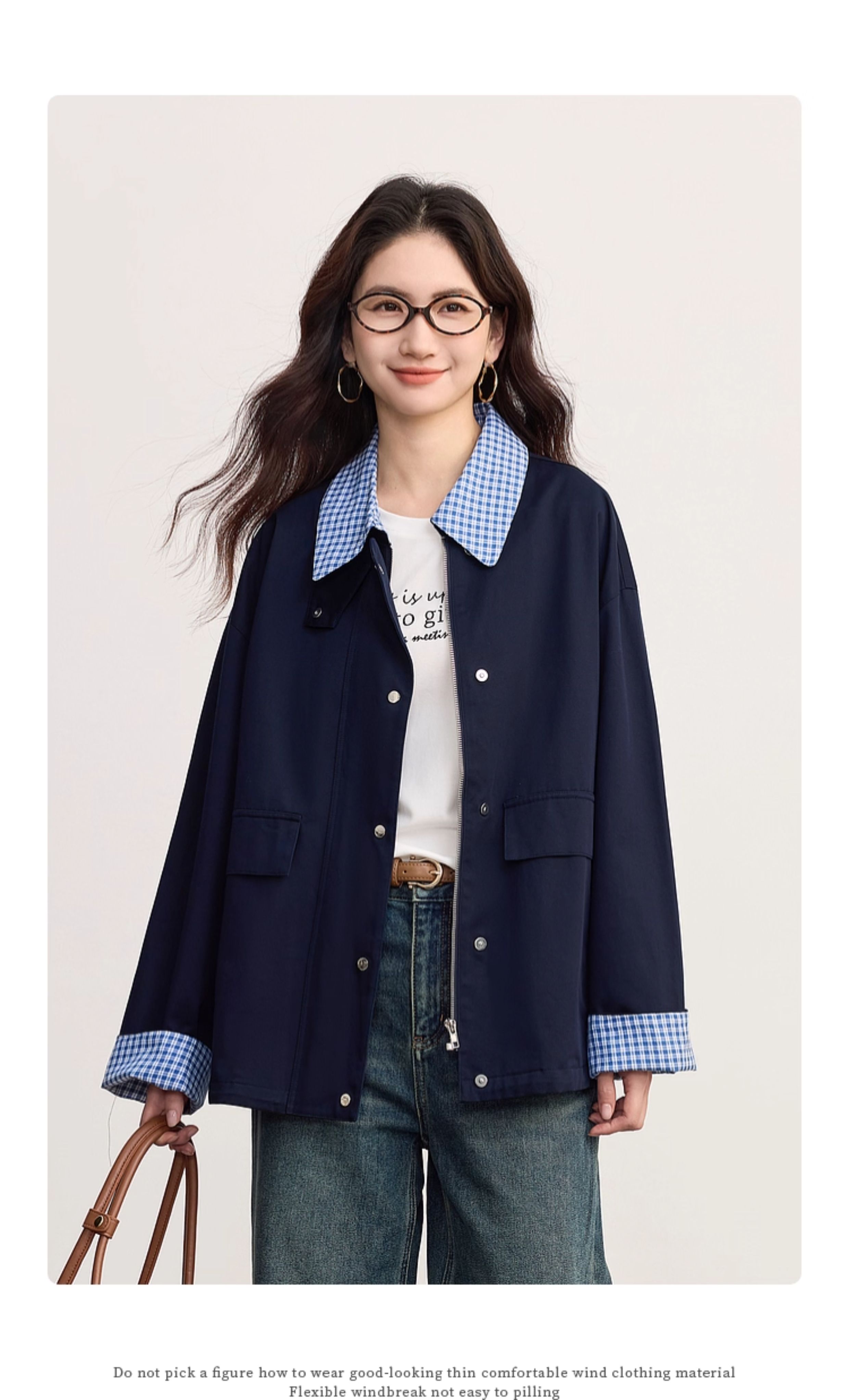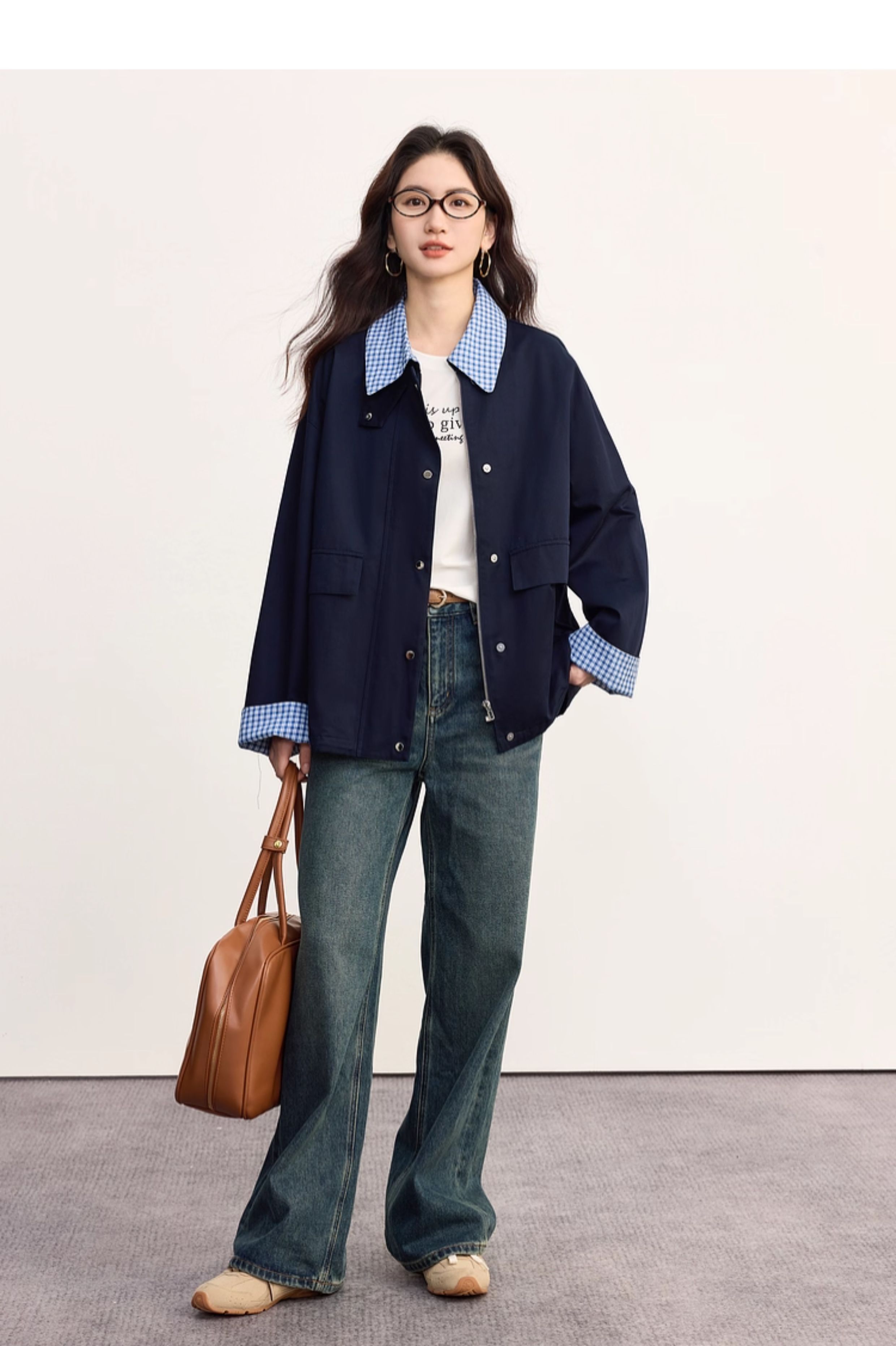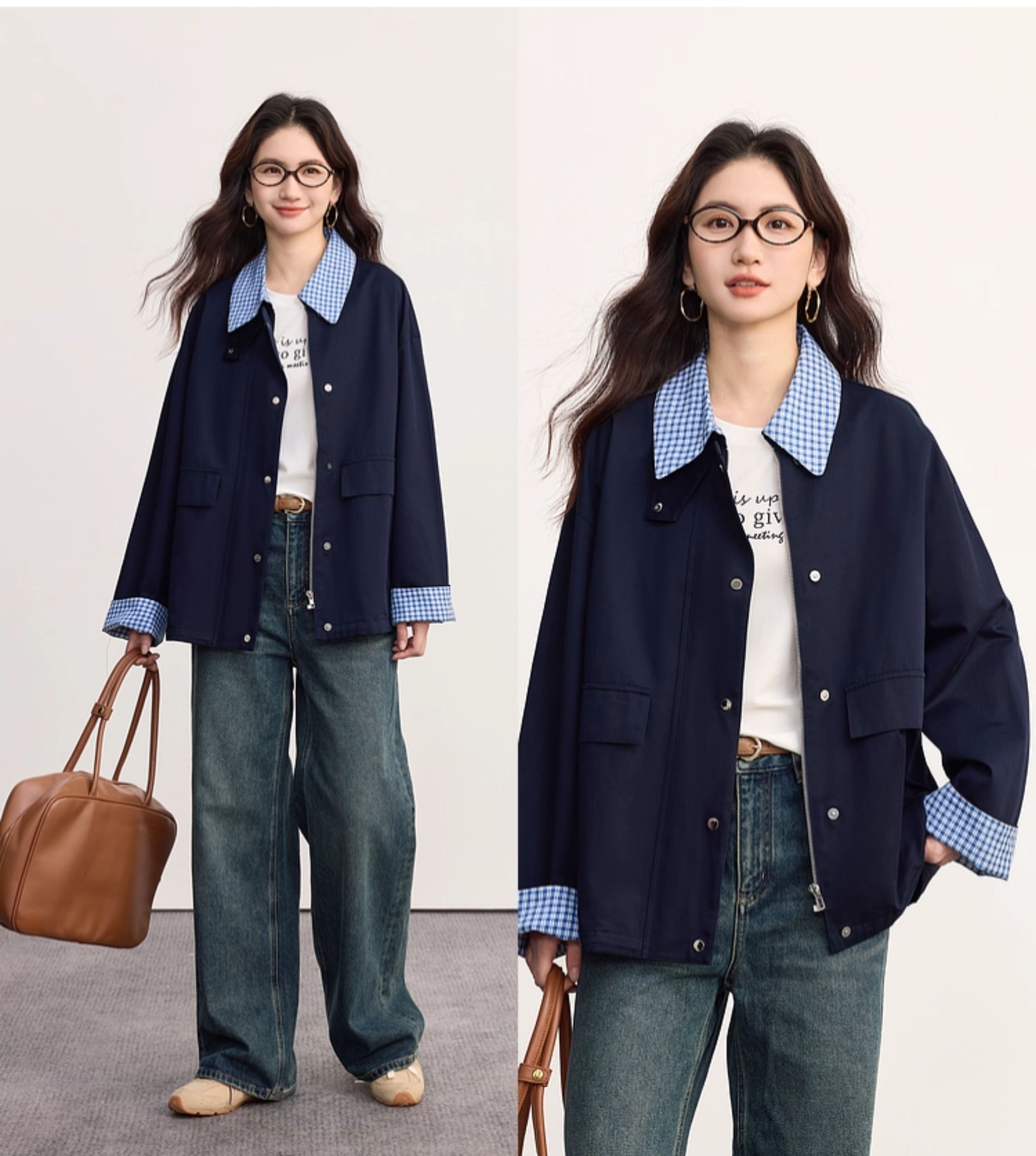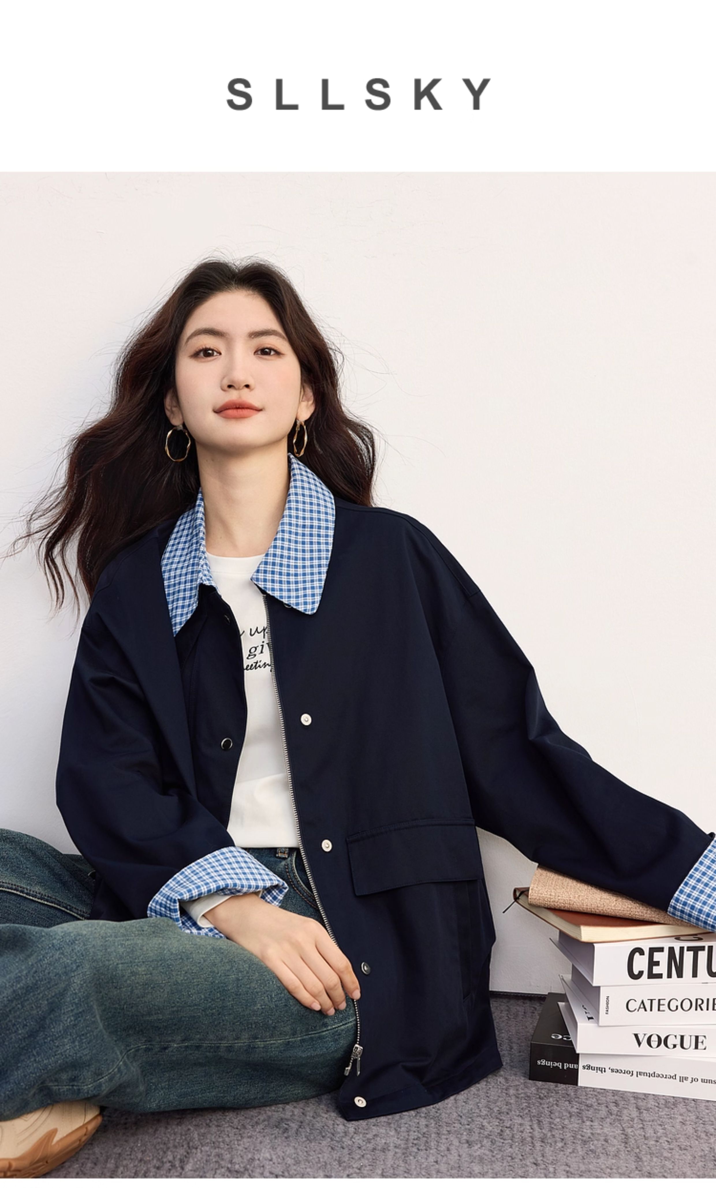 【09/17新品】熙世界假两件格子POLO领外套女2025秋季新款休闲拉链开衫短款上衣
