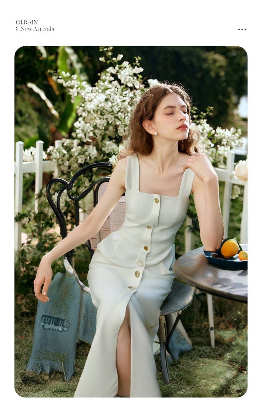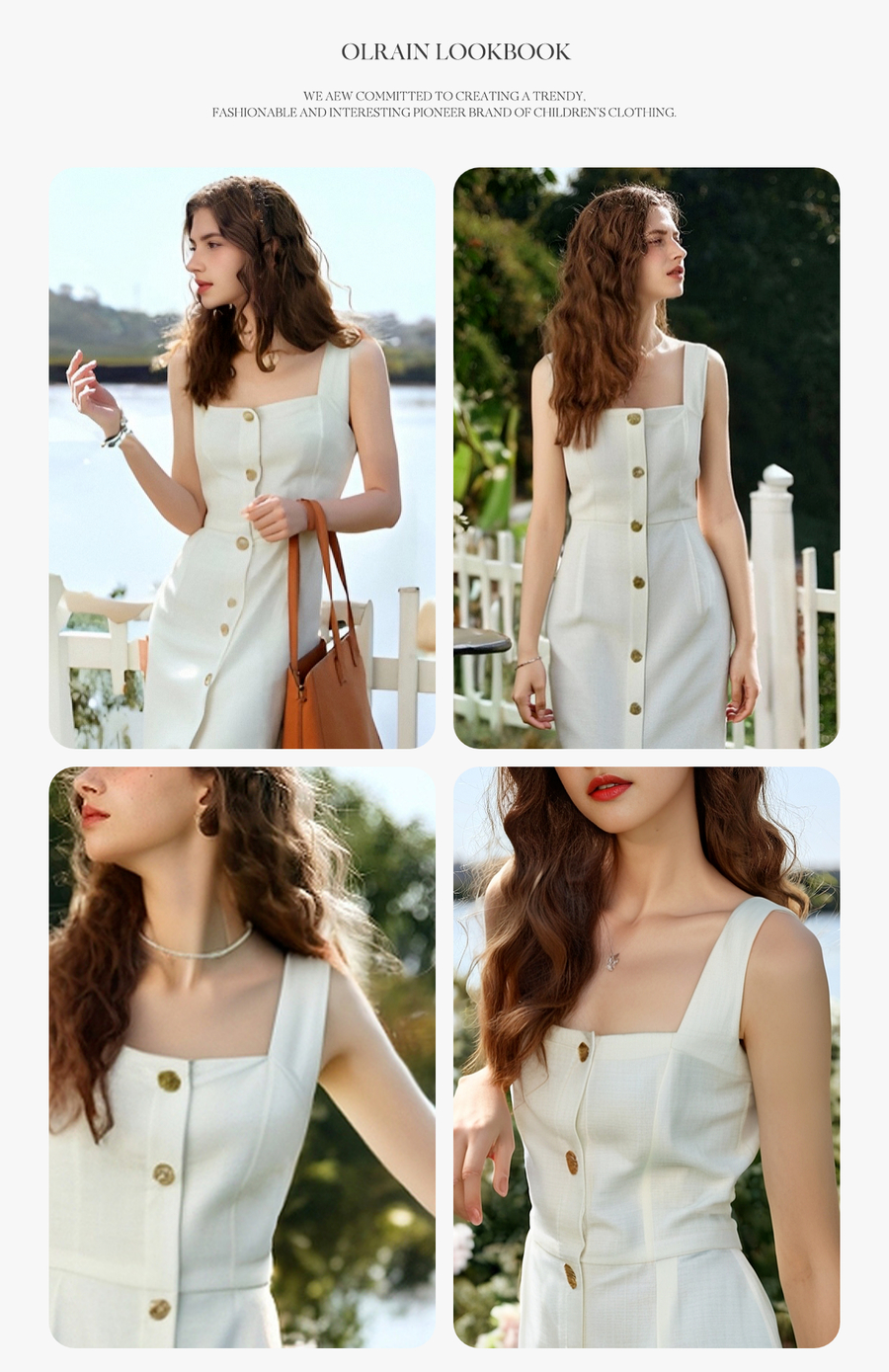 OLrain欧芮儿吊带法式连衣裙女夏季2025年新款假门襟别致纽扣设计