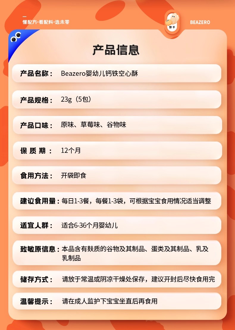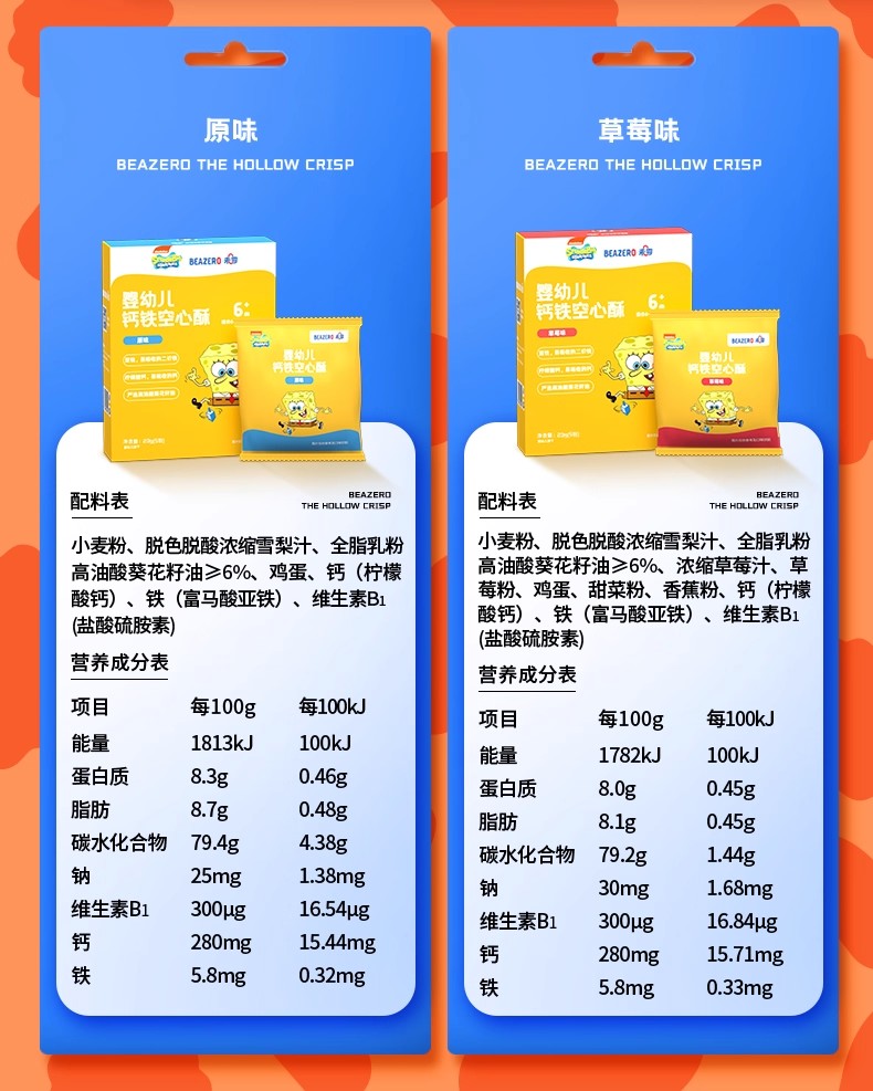 未零海绵宝宝婴幼儿钙铁空心酥