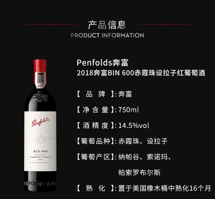 奔富bin600赤霞珠设拉子红葡萄酒750ml /1瓶/2瓶