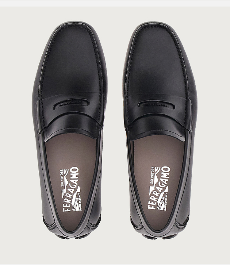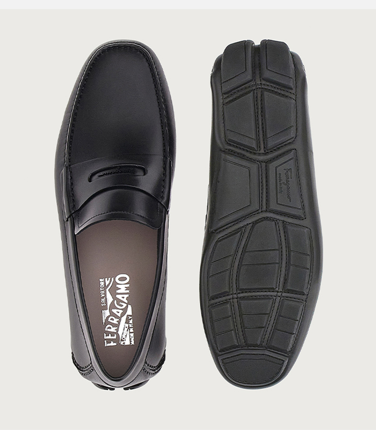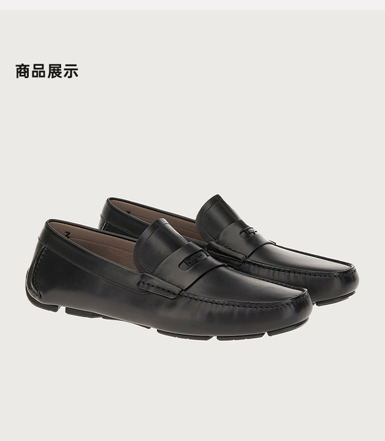 FERRAGAMO 菲拉格慕 男士半哑光小牛皮带标识的开车鞋 黑色 745444