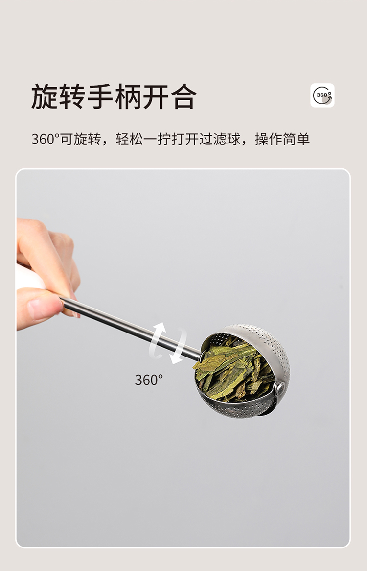 FaSoLa不锈钢旋转手柄泡茶过滤器半圆一泡一提细腻过滤茶汤清亮旋转泡茶器