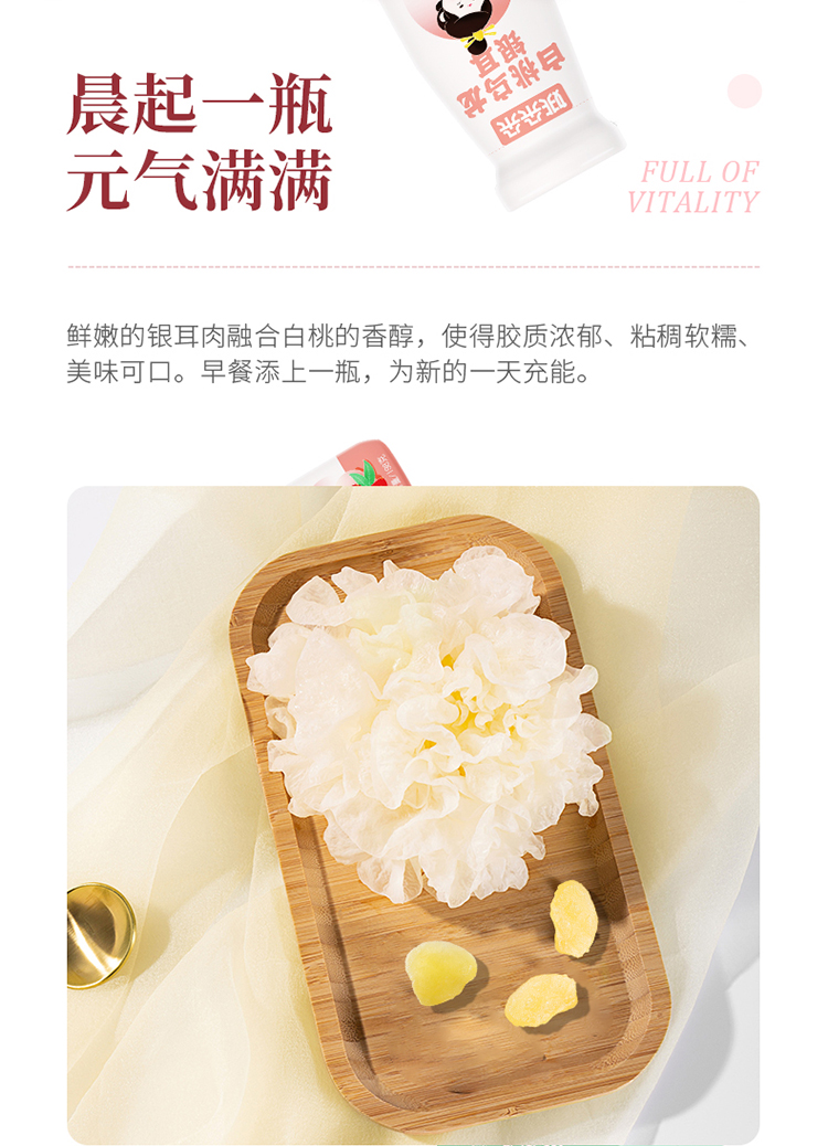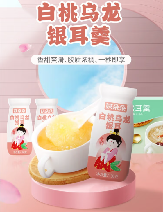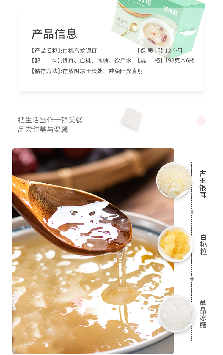 姚朵朵白桃乌龙木耳红枣鲜炖银耳羹198ml*6瓶免冲泡即食代餐罐头