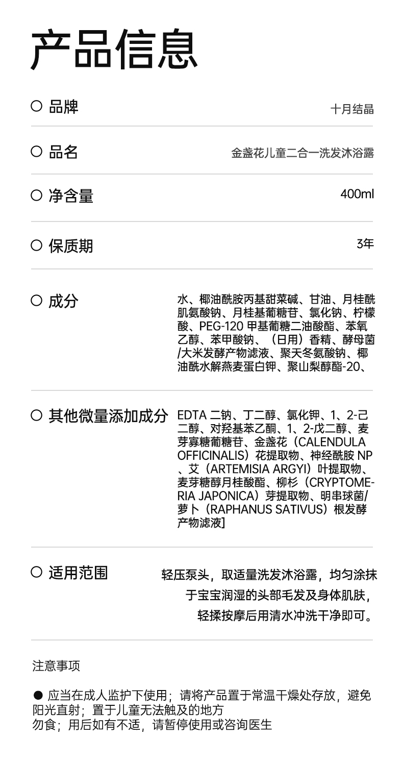 十月结晶金盏花婴儿沐浴露二合一新生儿宝宝沐浴露洗发水