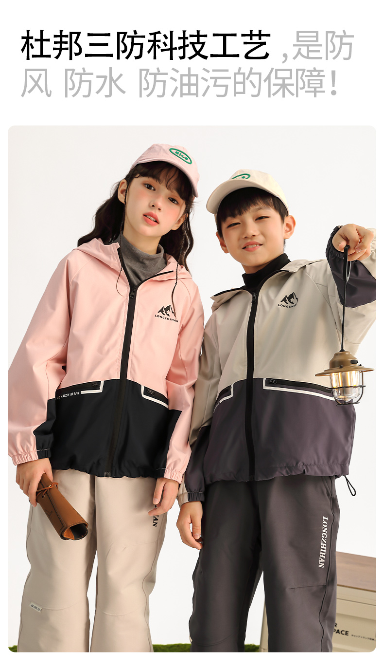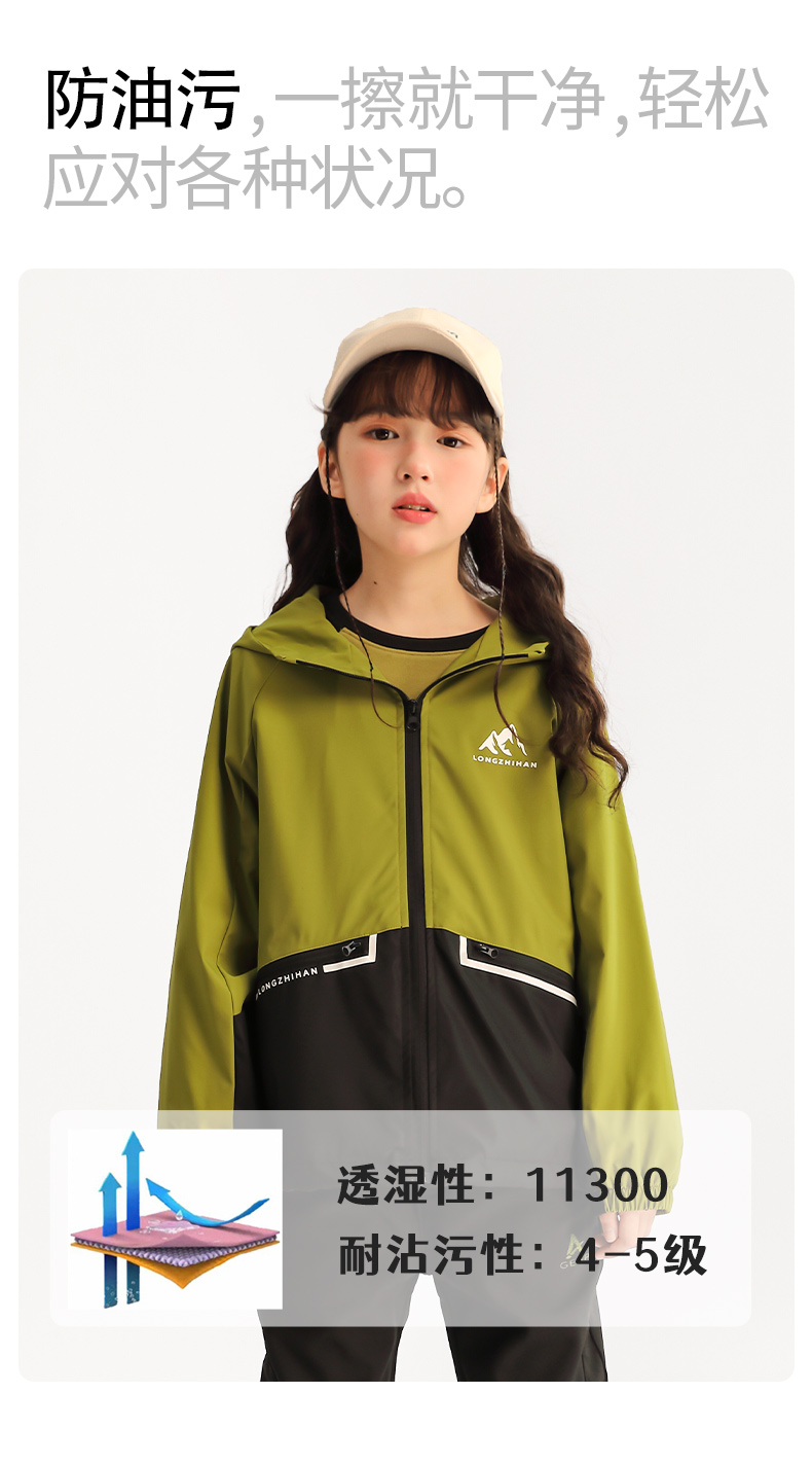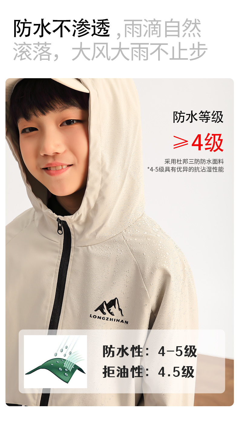 【特价】龙之涵 亲子款“全能王”防风防水加绒外套 防水防油防污杜邦三防 透湿指数10000+ 婴幼儿A类标准 100-185码4色可选