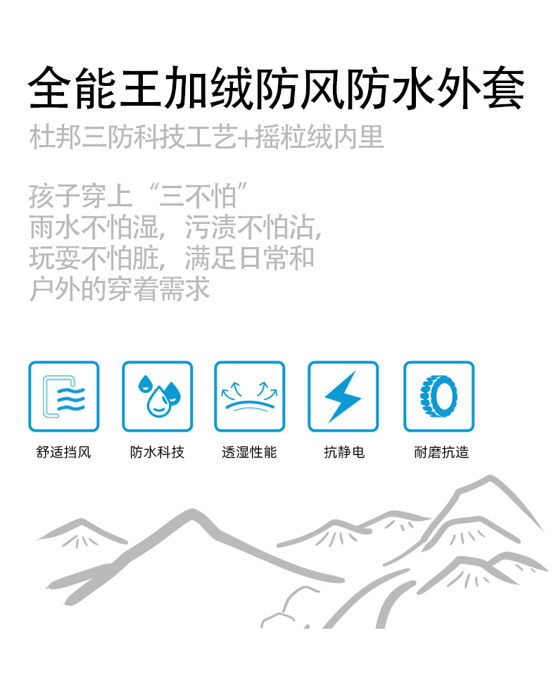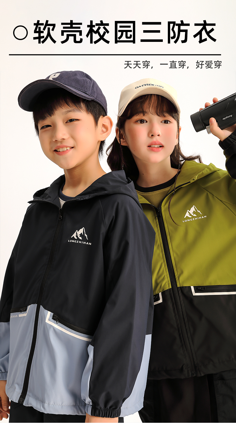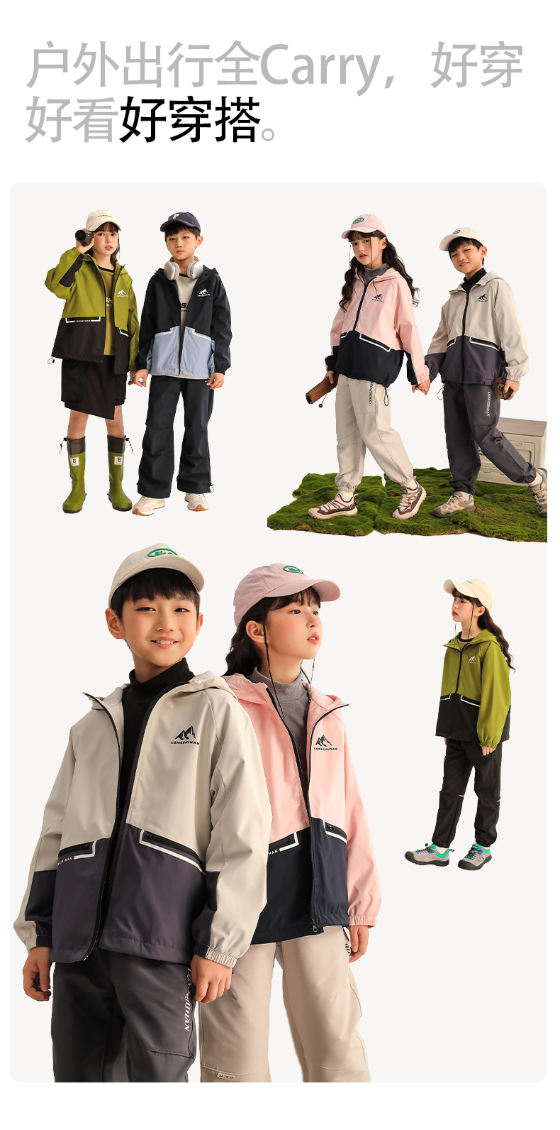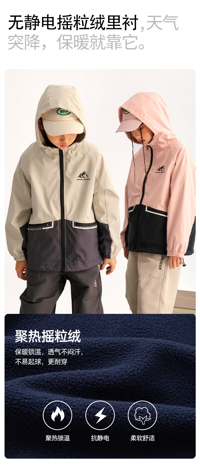 【特价】龙之涵 亲子款“全能王”防风防水加绒外套 防水防油防污杜邦三防 透湿指数10000+ 婴幼儿A类标准 100-185码4色可选