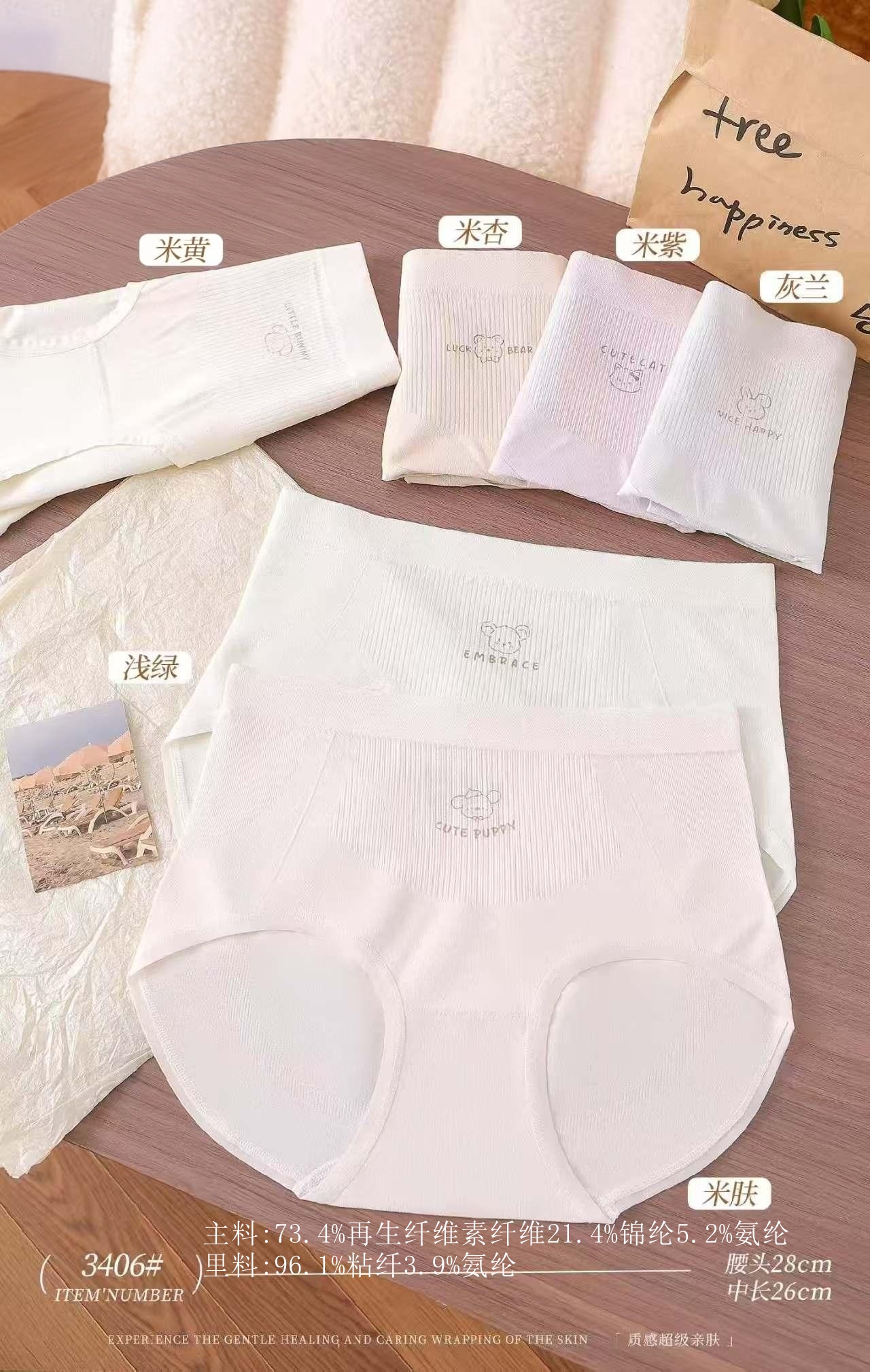 女士无缝内裤裸氨棉纯色可爱印花舒适透气三角裤高弹收腹提臀内裤3406