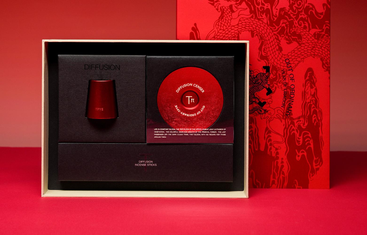 沏派TPYE · 双龙牡丹纹香座礼盒 · 焰红香插香座线香底座家用新中式香器