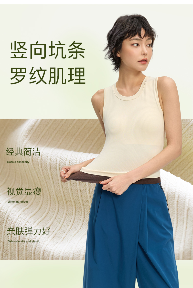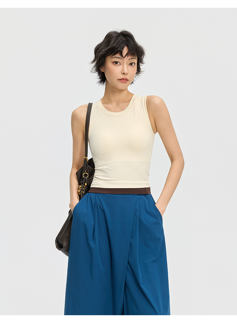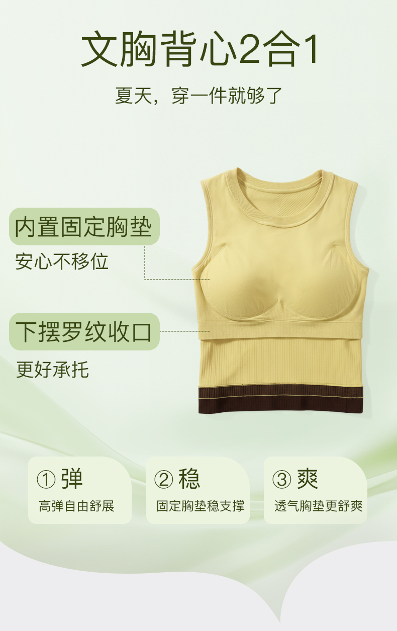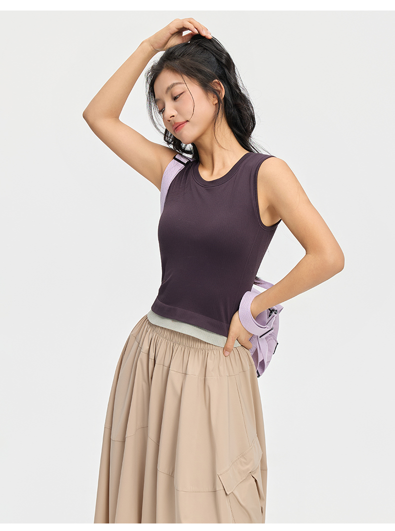 Leorrey/乐拉固定胸垫撞色下摆粗肩带背心高弹瑜伽运动文胸WX1579