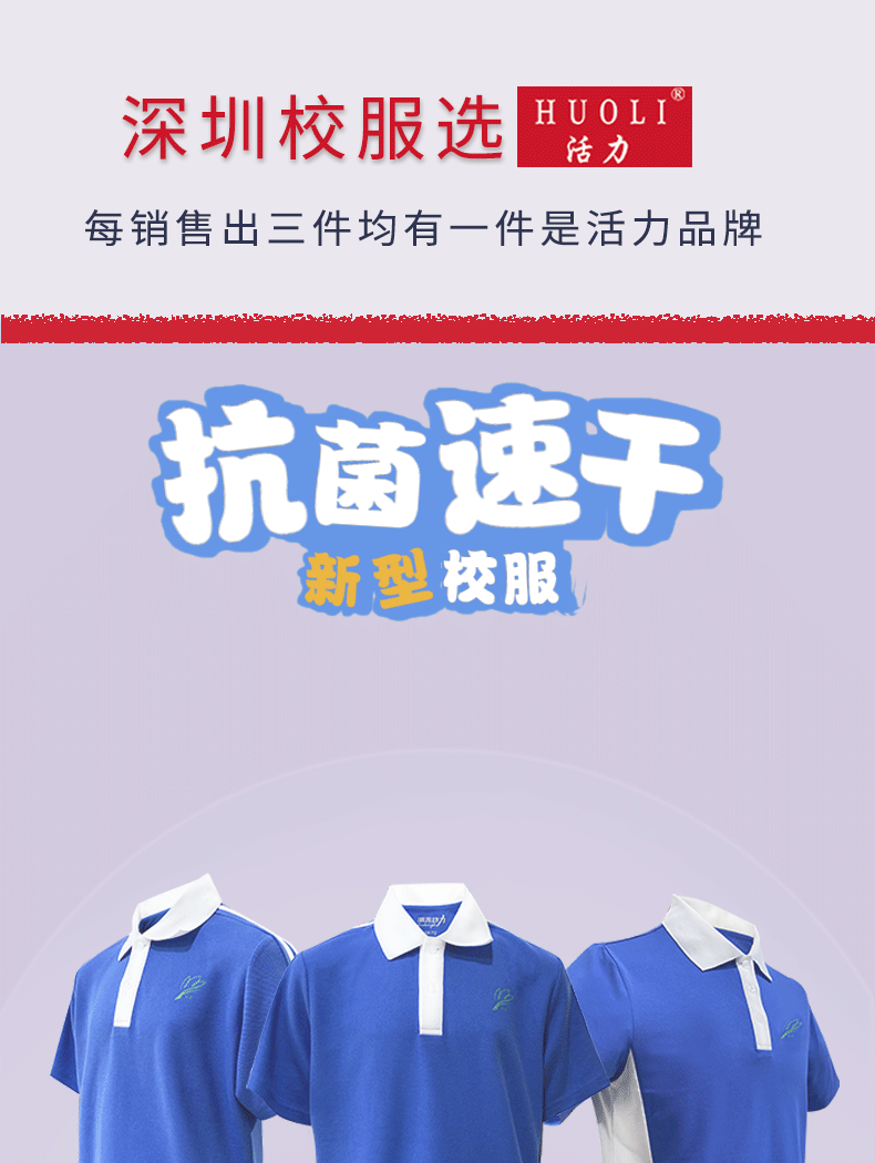 活力校服由深圳市中南活力实业股份有限公司创建的品牌,深圳二十一年老品牌,教育局中标企业;主营深圳校服、广州校服、东莞校服、佛山校服、肇庆校服、江苏校服、鞋袜、学生床上用品等学生课桌椅一站式教育领域产品