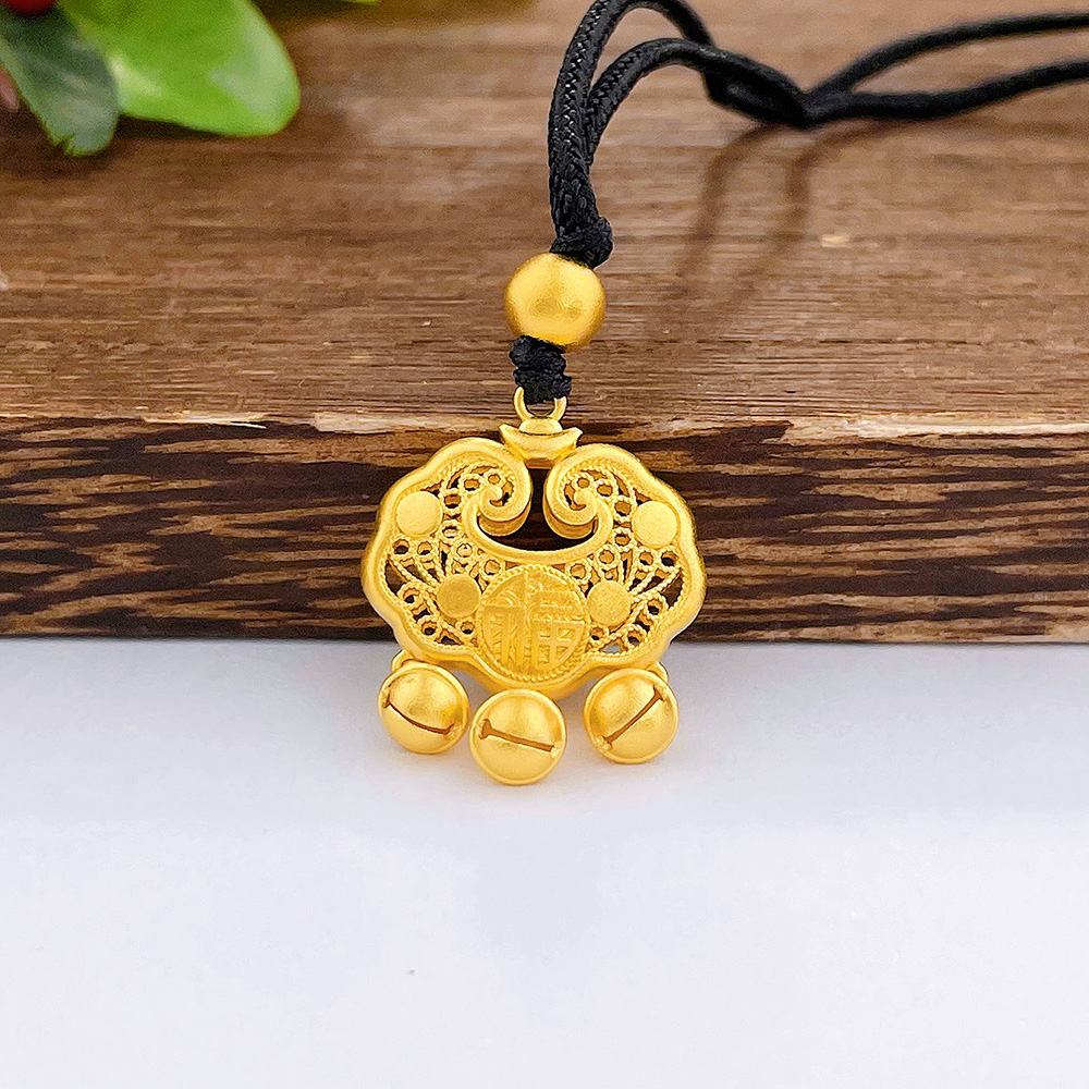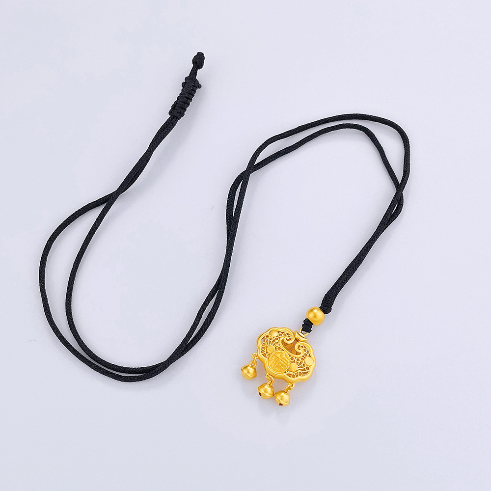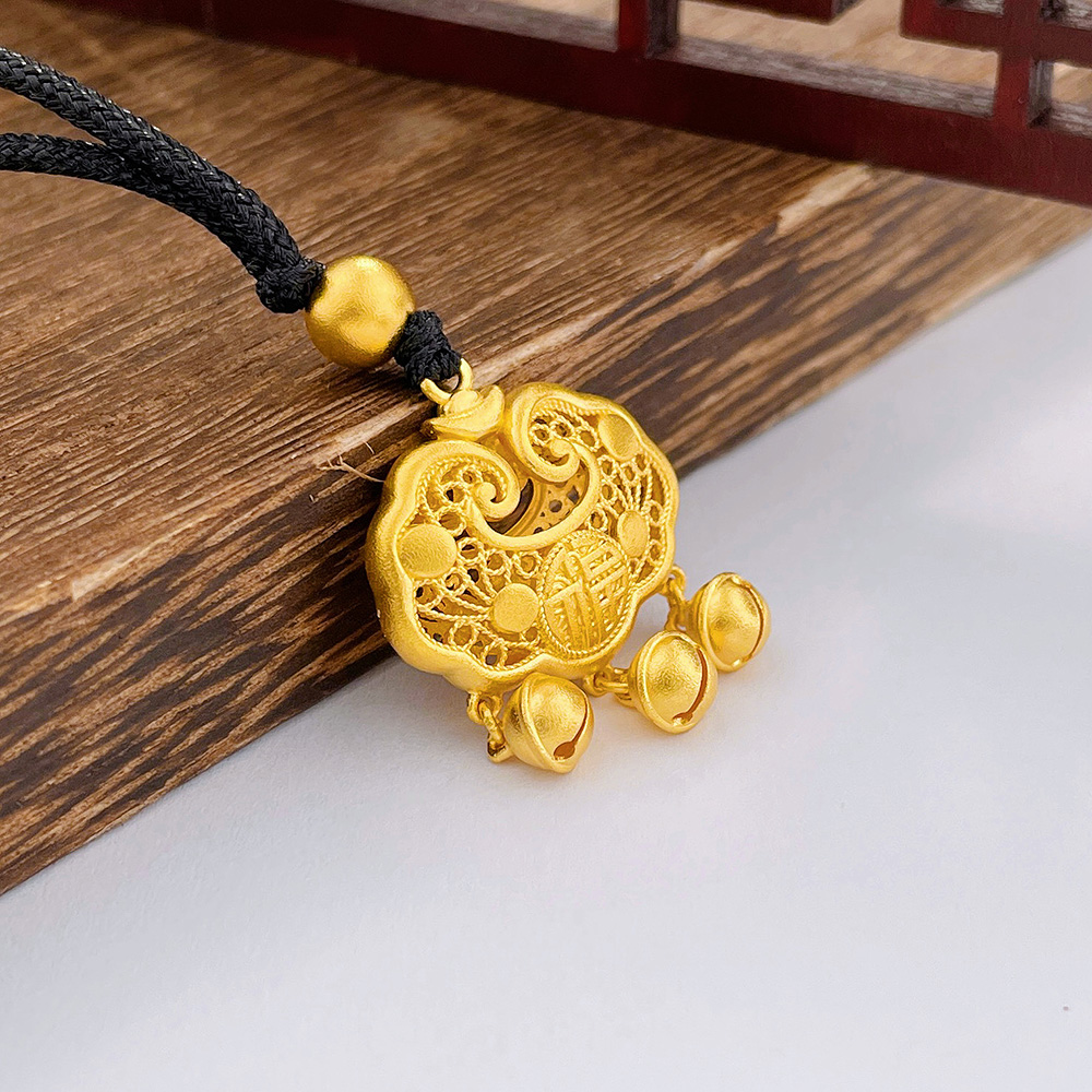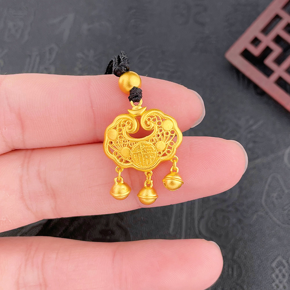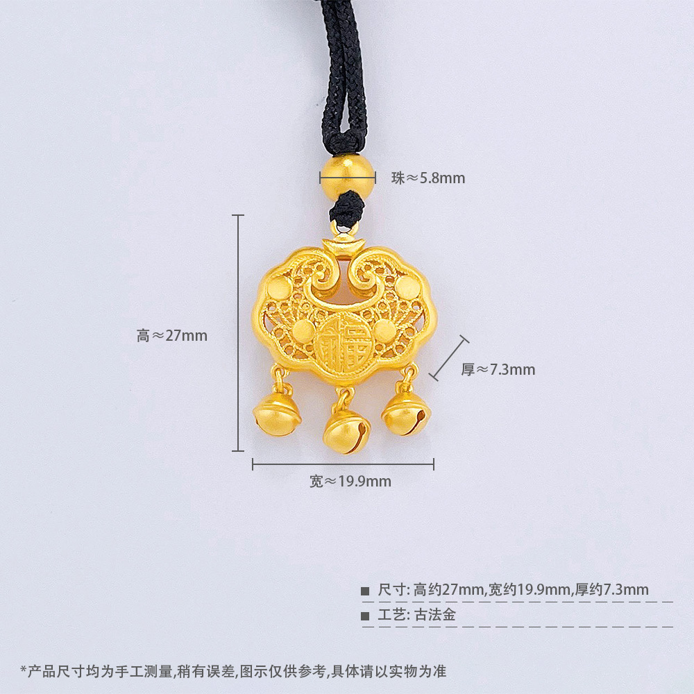 【限时克减150元】足金999.9 #儿童/宝宝 古法黄金挂绳双面镂空福字铃铛如意福字锁包吊坠网红锁包(含珠子)(ANWZGFDZ00312-6)(预售产品下单后不退款不退货不换货不补差价