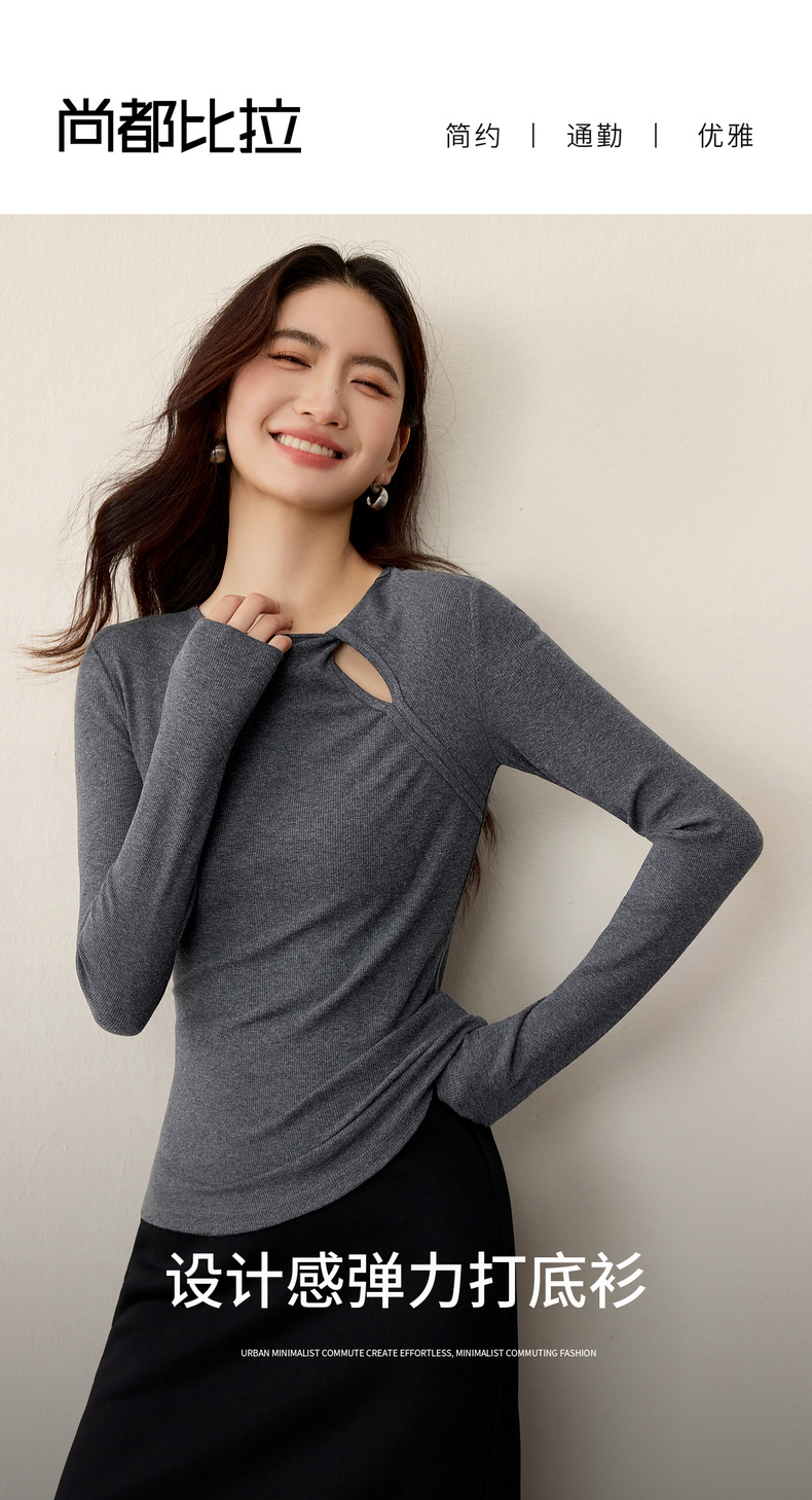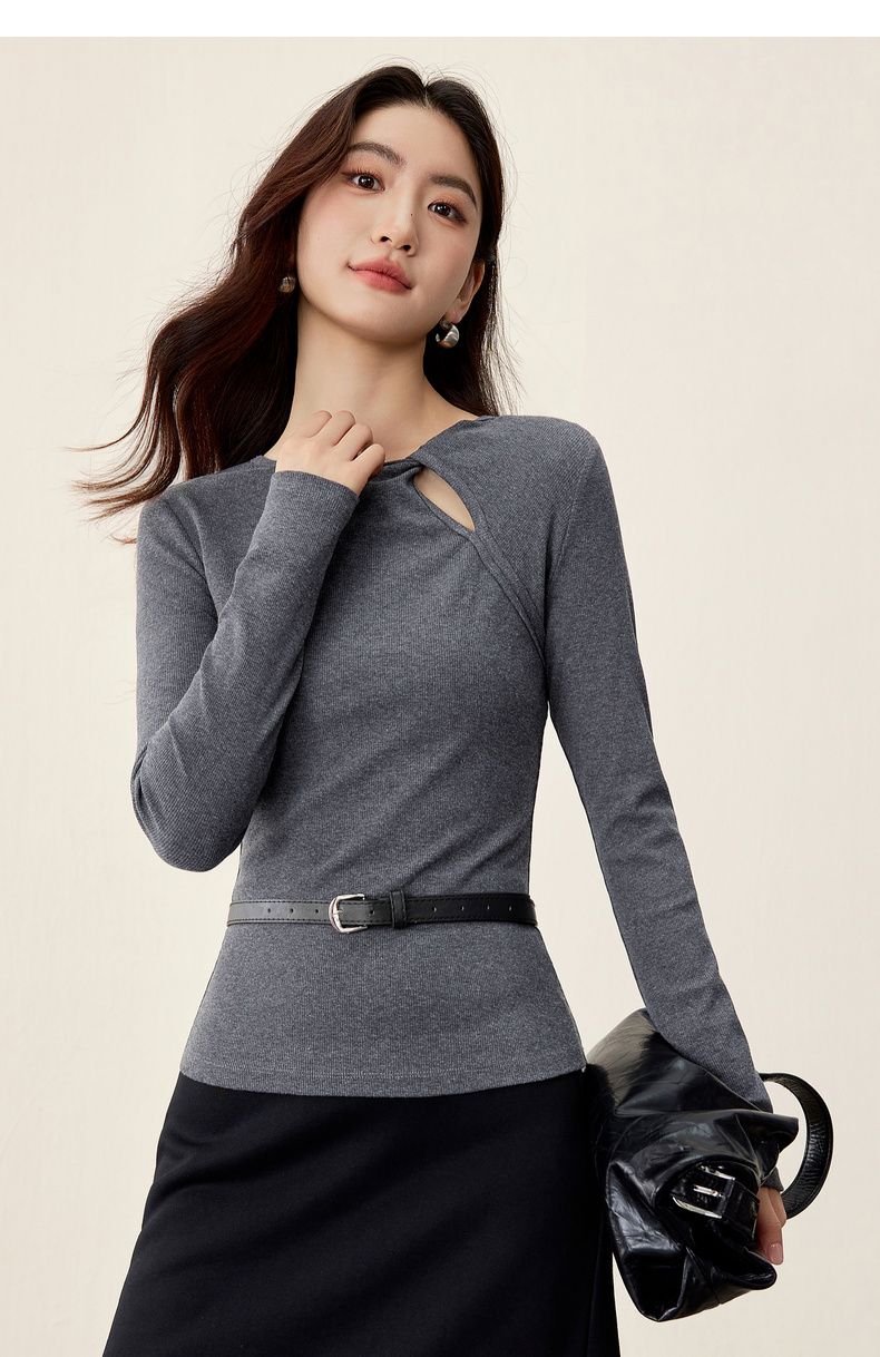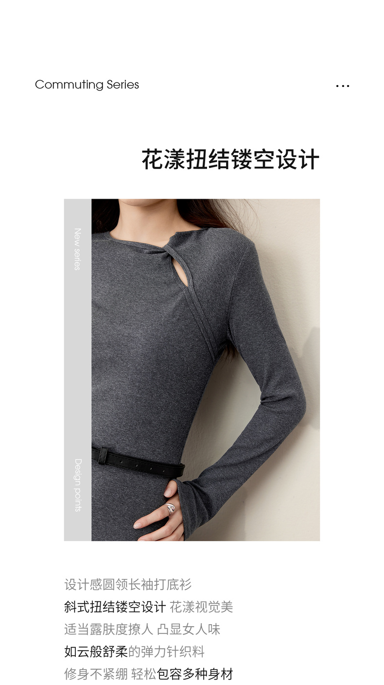【内购】【扭结镂空】通勤上班圆领修身弹力坑条针织长袖外穿内搭打底衫-153SF2922