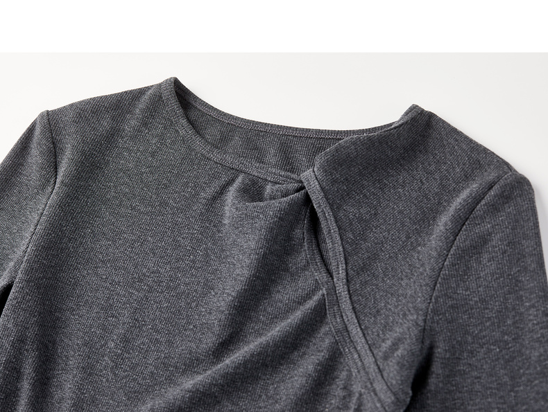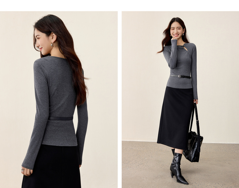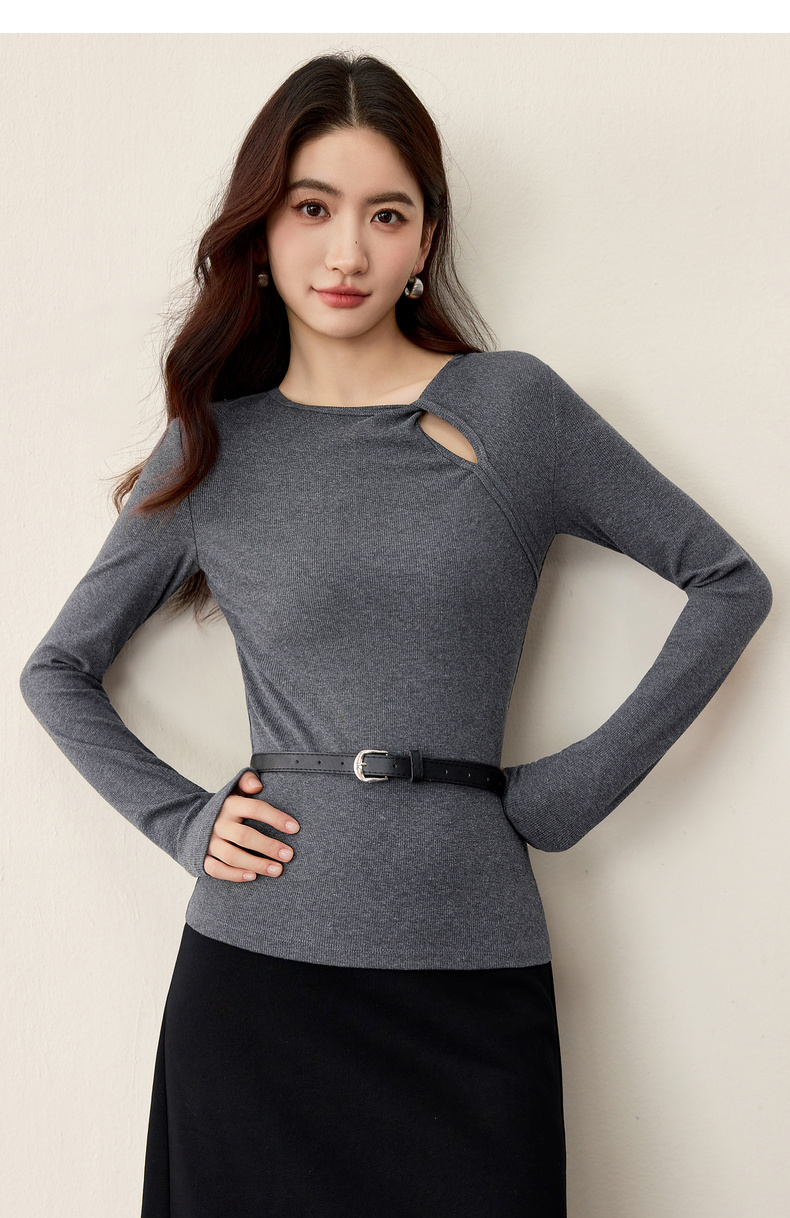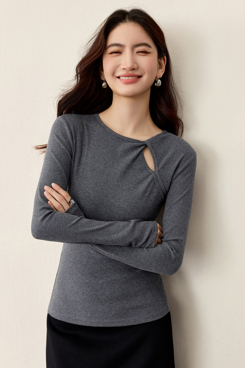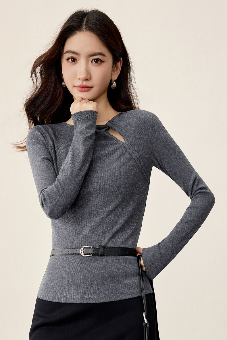 【内购】【扭结镂空】通勤上班圆领修身弹力坑条针织长袖外穿内搭打底衫-153SF2922