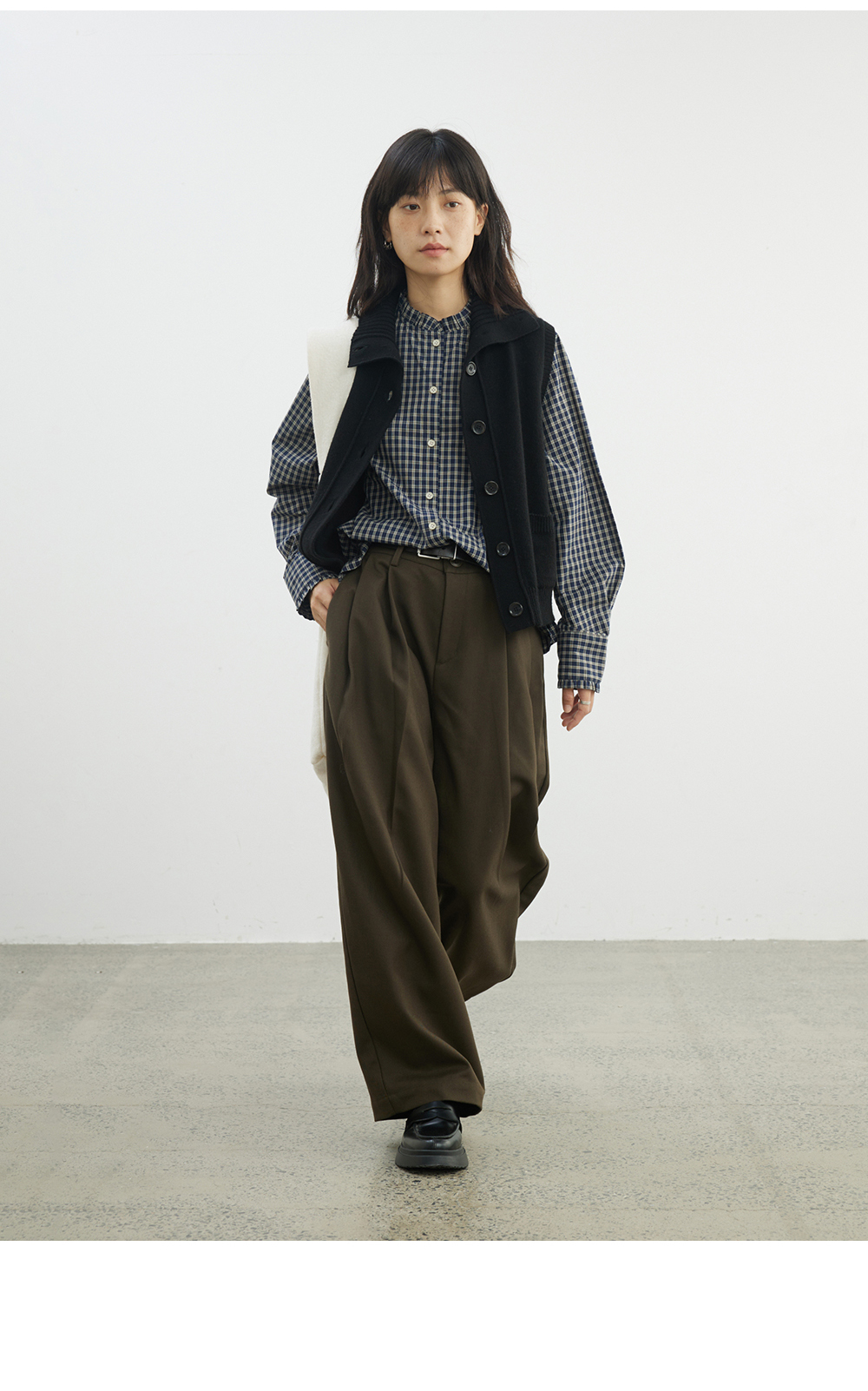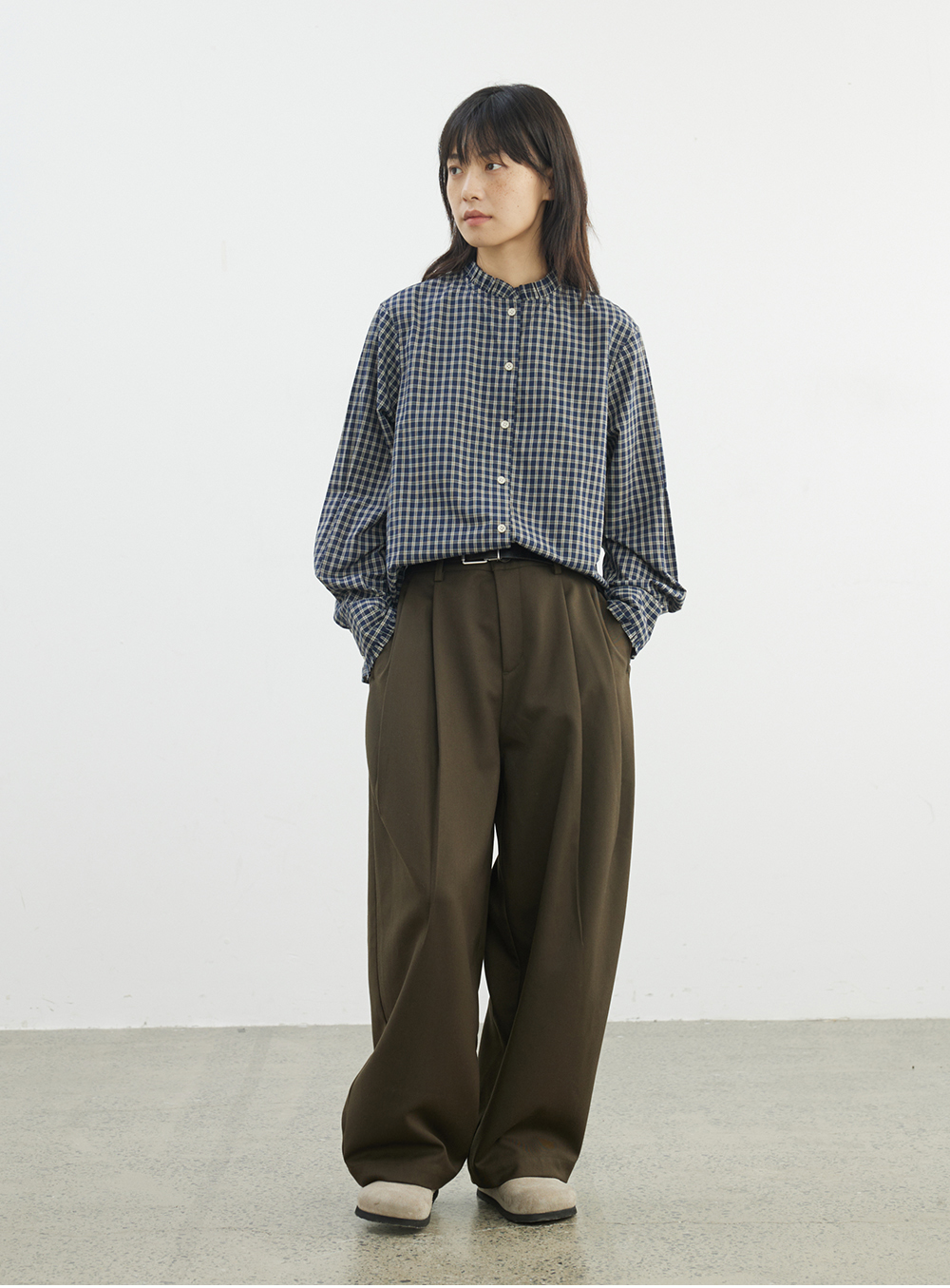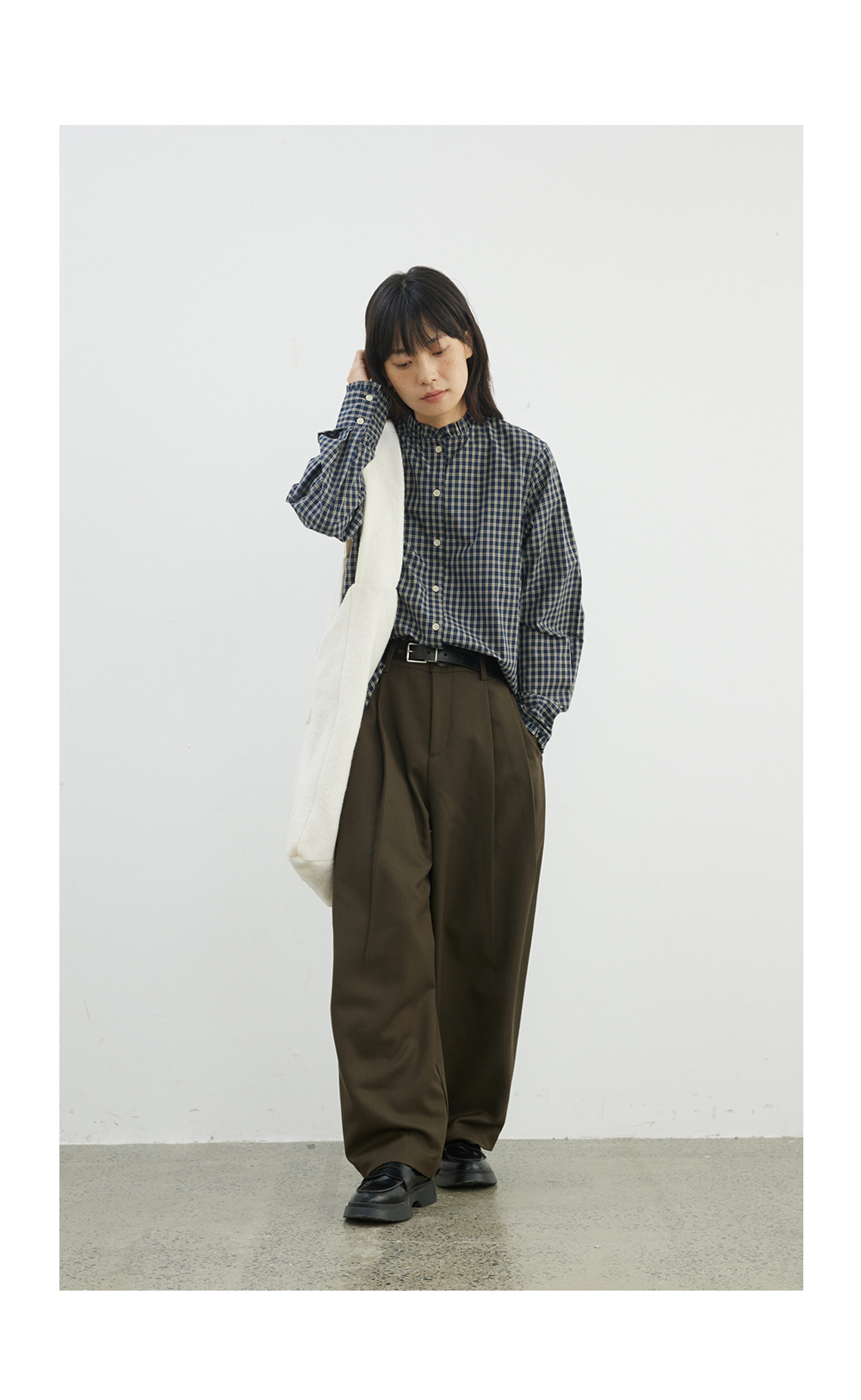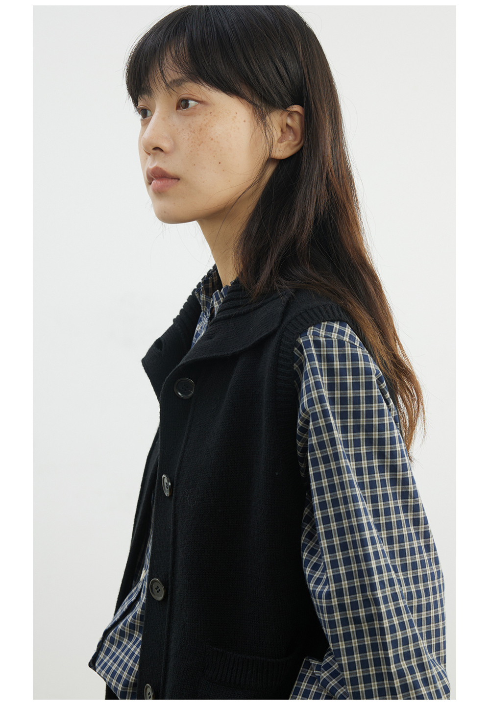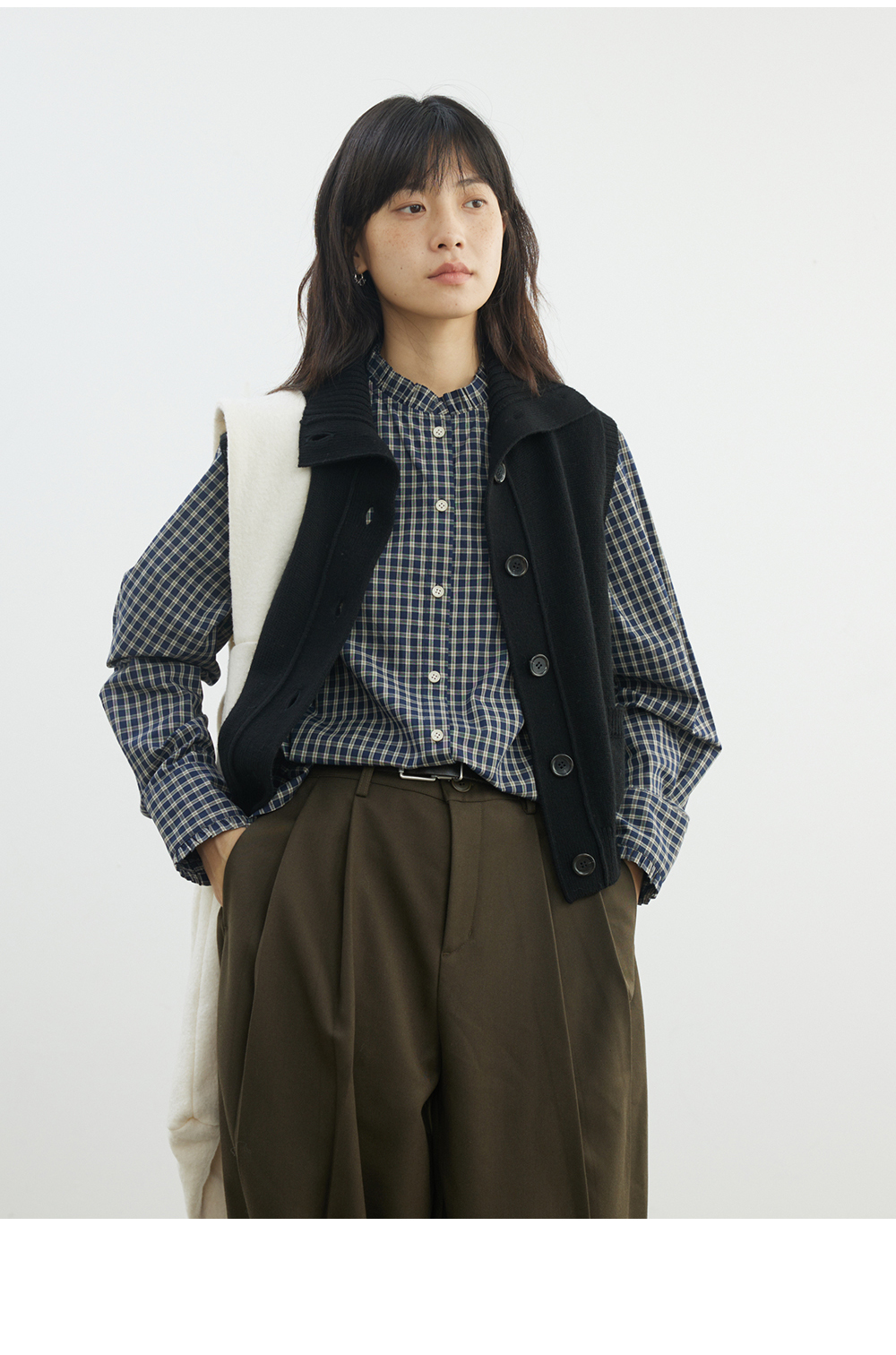 步履不停/4D11213C/复古文艺风花边小立领纯棉格子衬衫