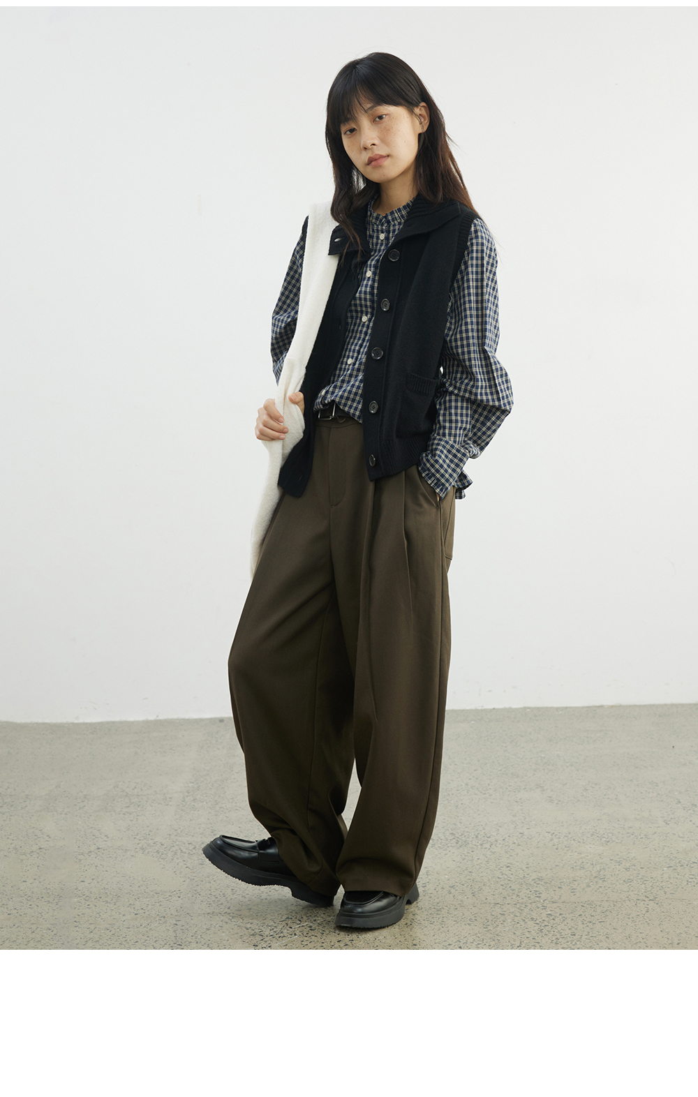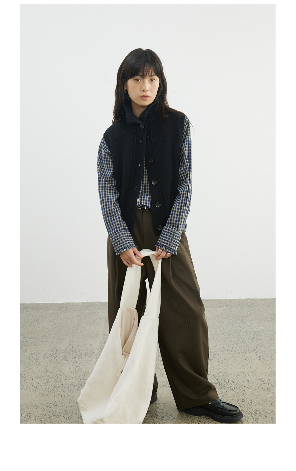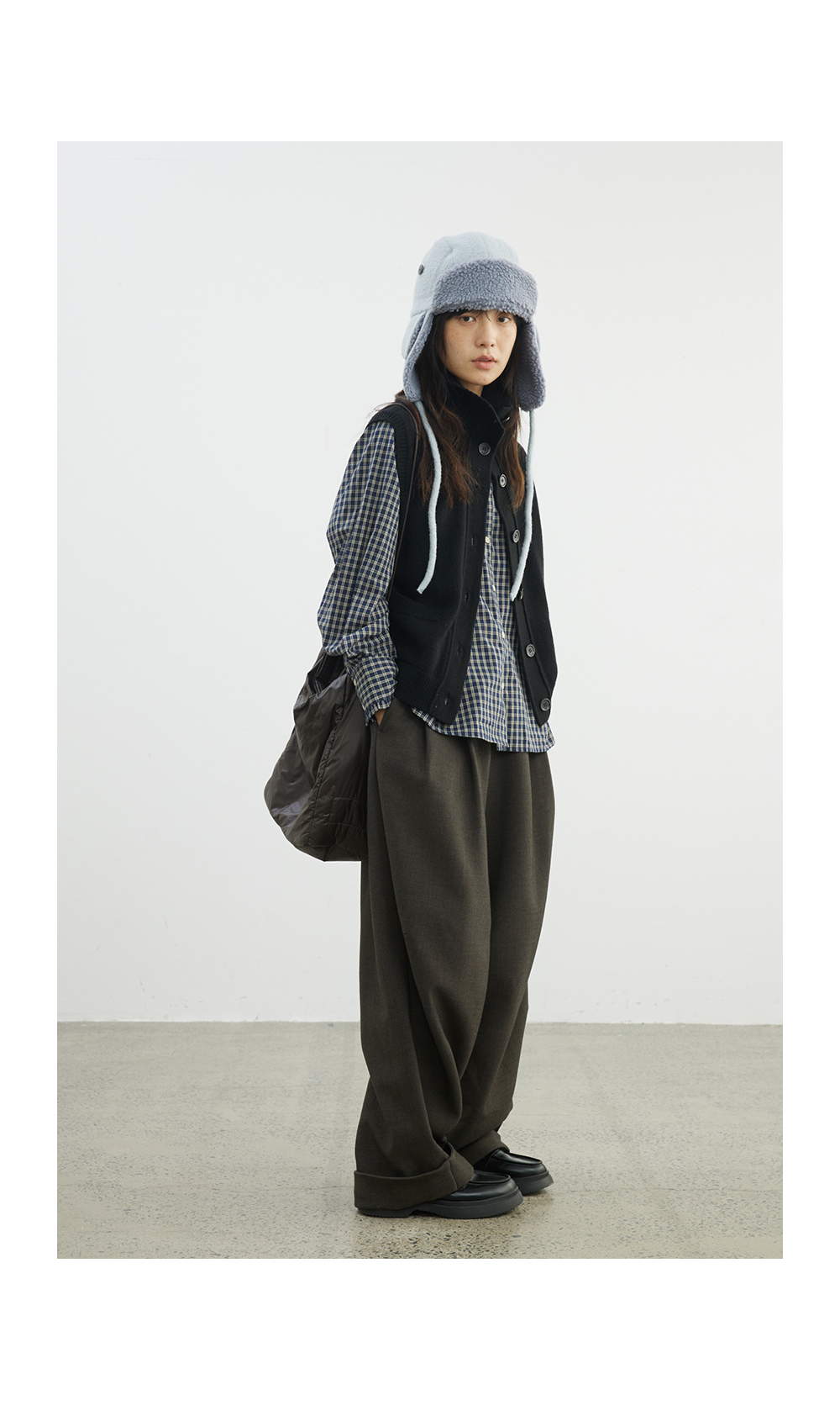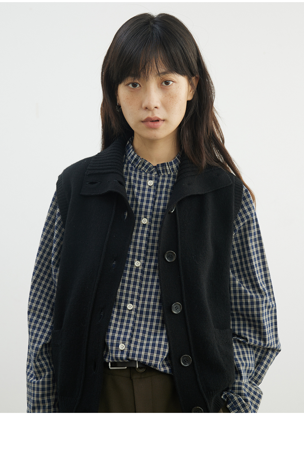 步履不停/4D11213C/复古文艺风花边小立领纯棉格子衬衫