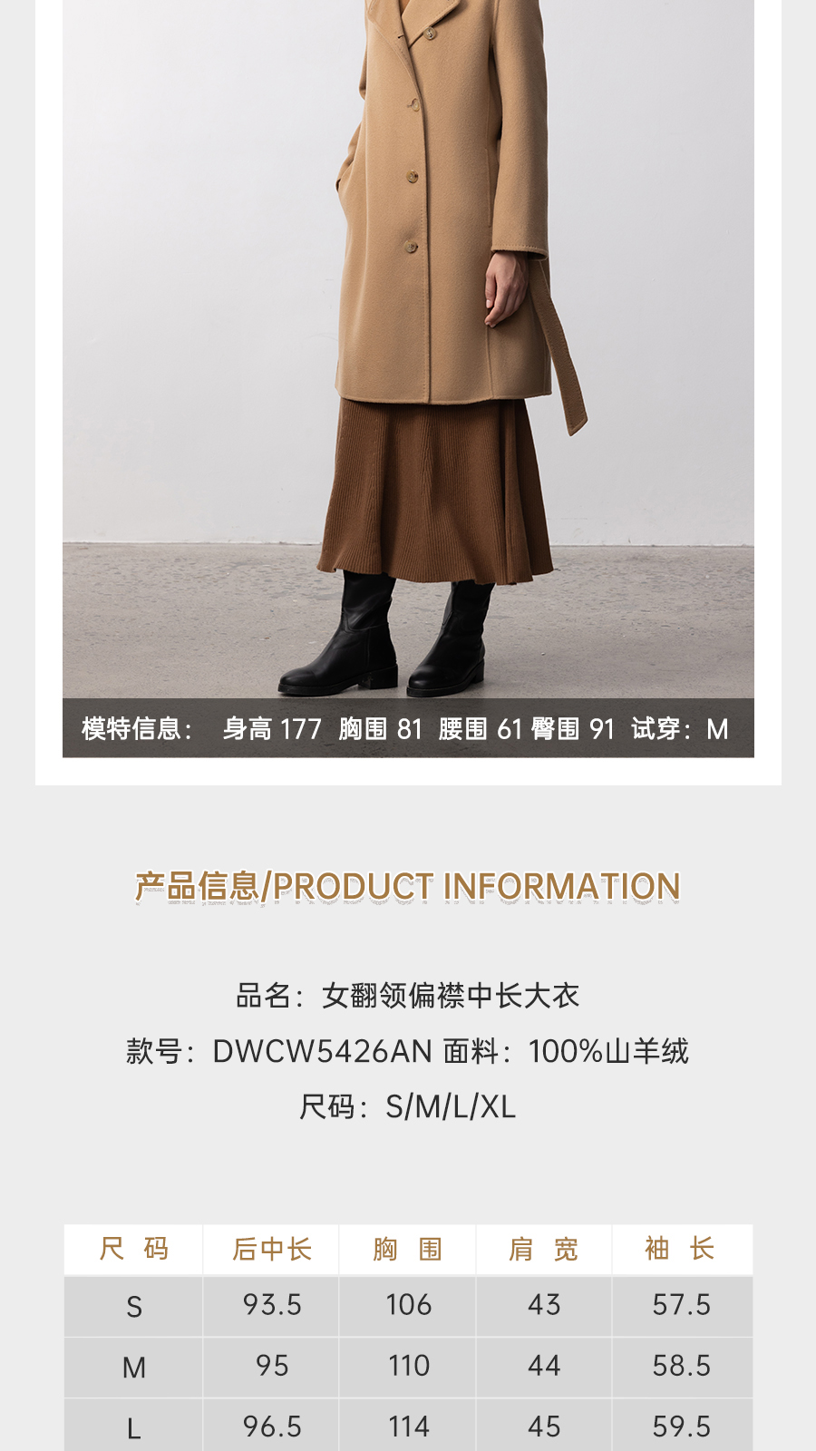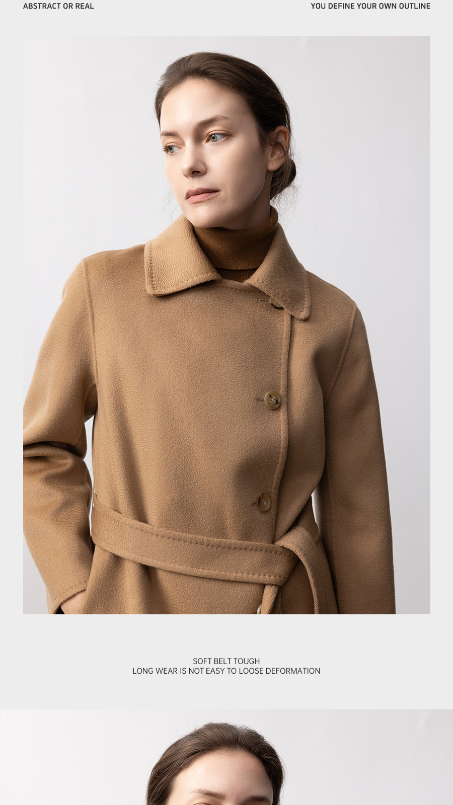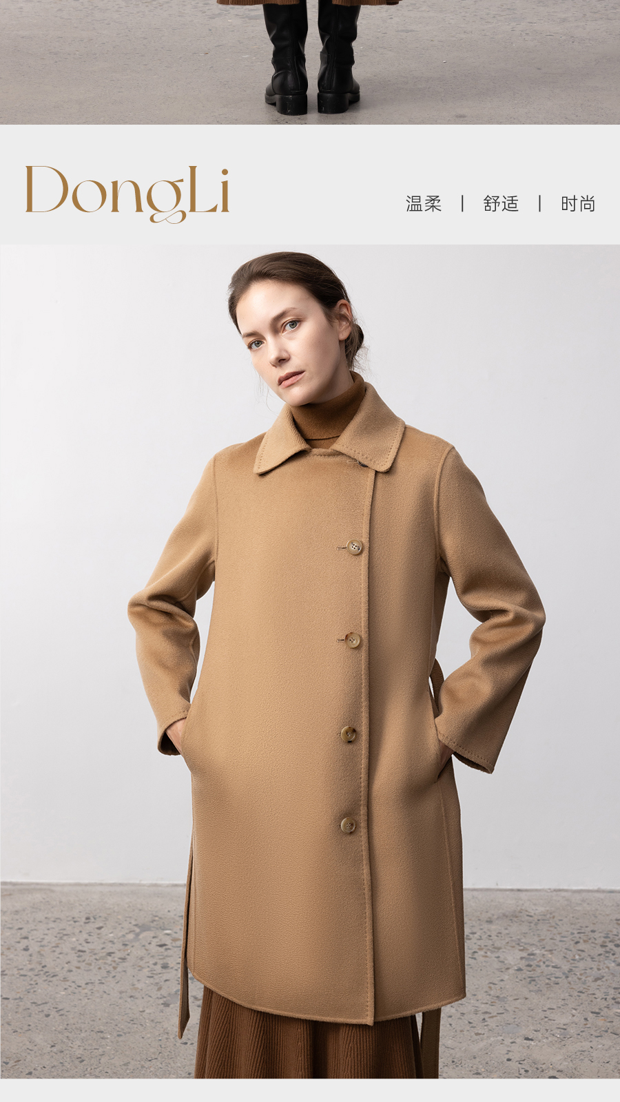 东黎 • 你本珍贵 山羊绒女士秋季女翻领偏襟中长大衣 5426