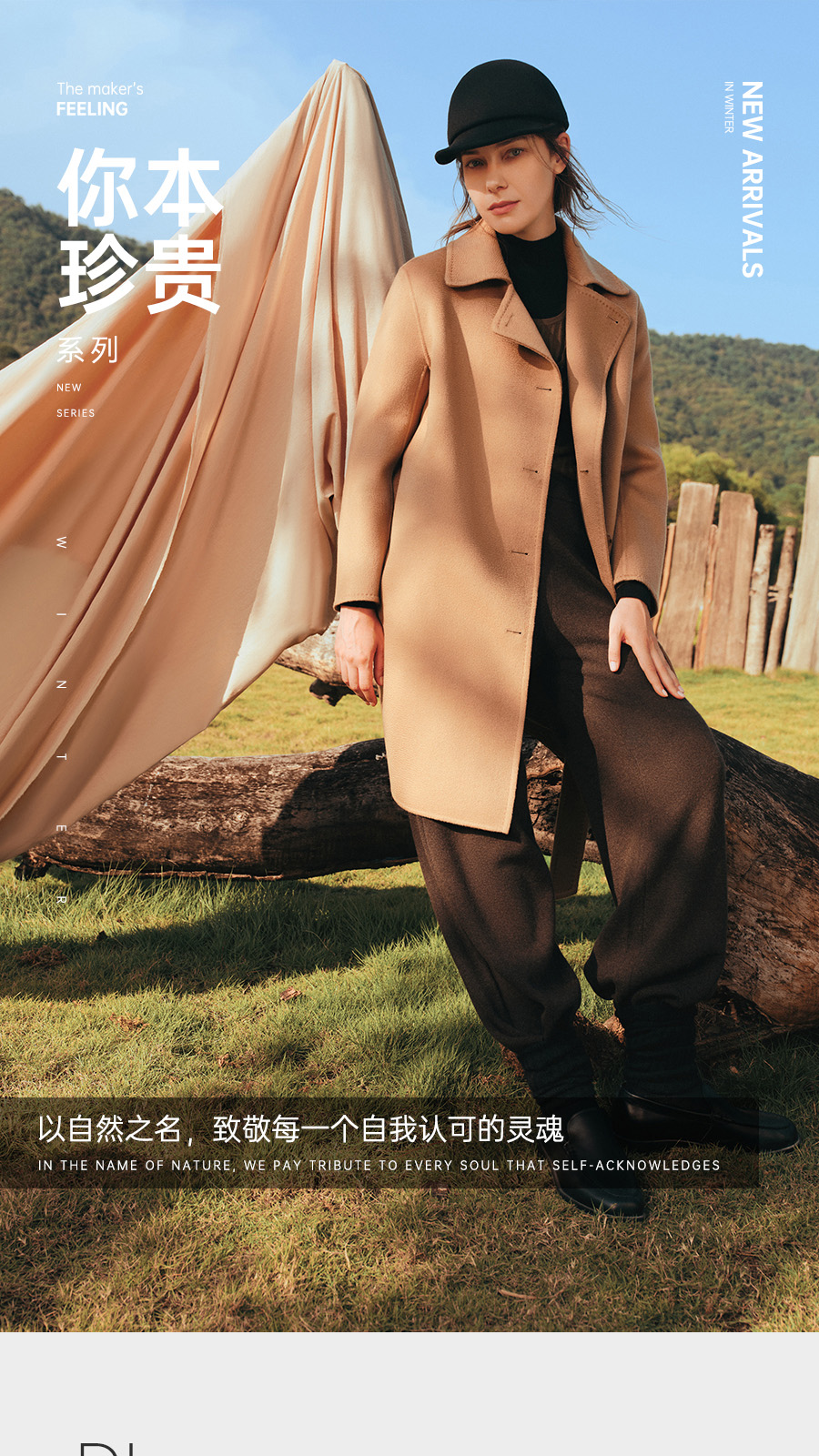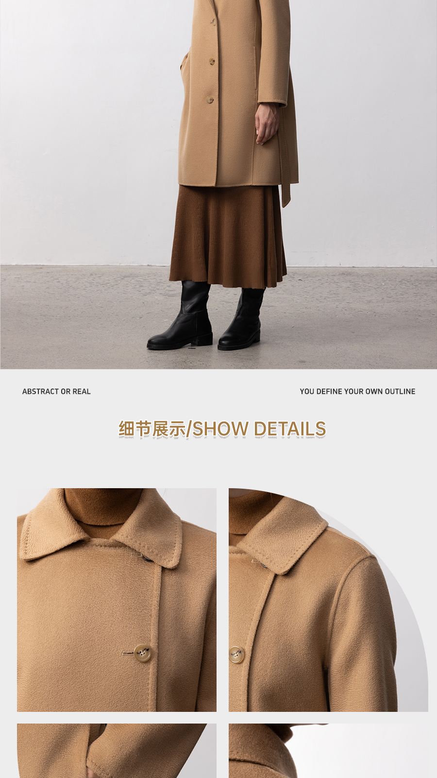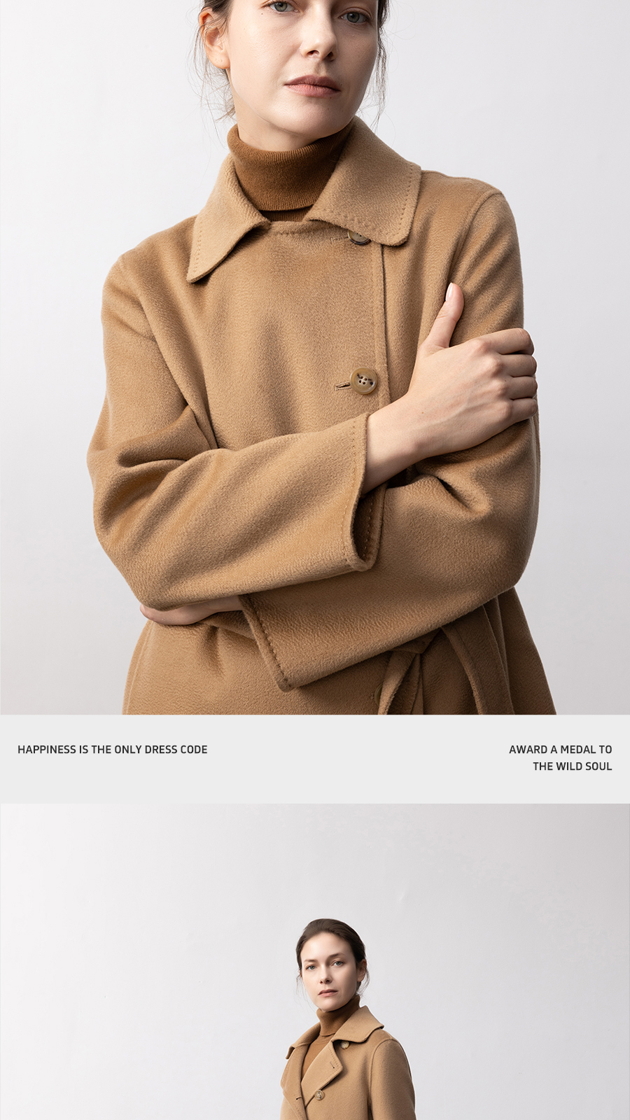 东黎 • 你本珍贵 山羊绒女士秋季女翻领偏襟中长大衣 5426