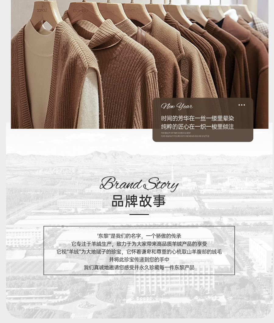 东黎羊绒是赤峰东荣集团自主品牌,自有牧场/羊绒制品全产业链优势,实现了羊绒从“牧场”到“商场”的华丽转变。