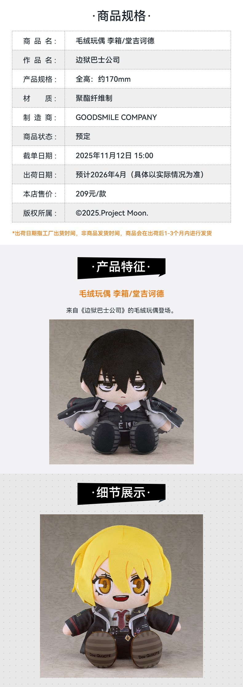 【GSC预售定金】毛绒玩偶 李箱/堂吉诃德 边狱巴士公司 手办模玩