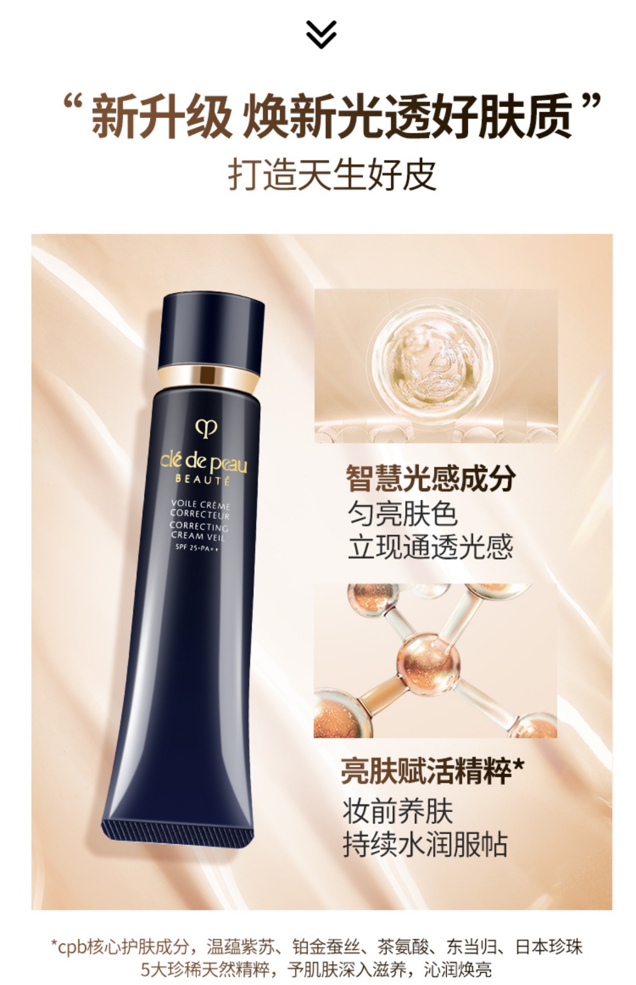 【双旦特惠:保税仓直发】日本CPB 肌肤之钥光凝润采妆前长管 隔离霜37ml赠兰蔻轻透水漾防晒乳10ml