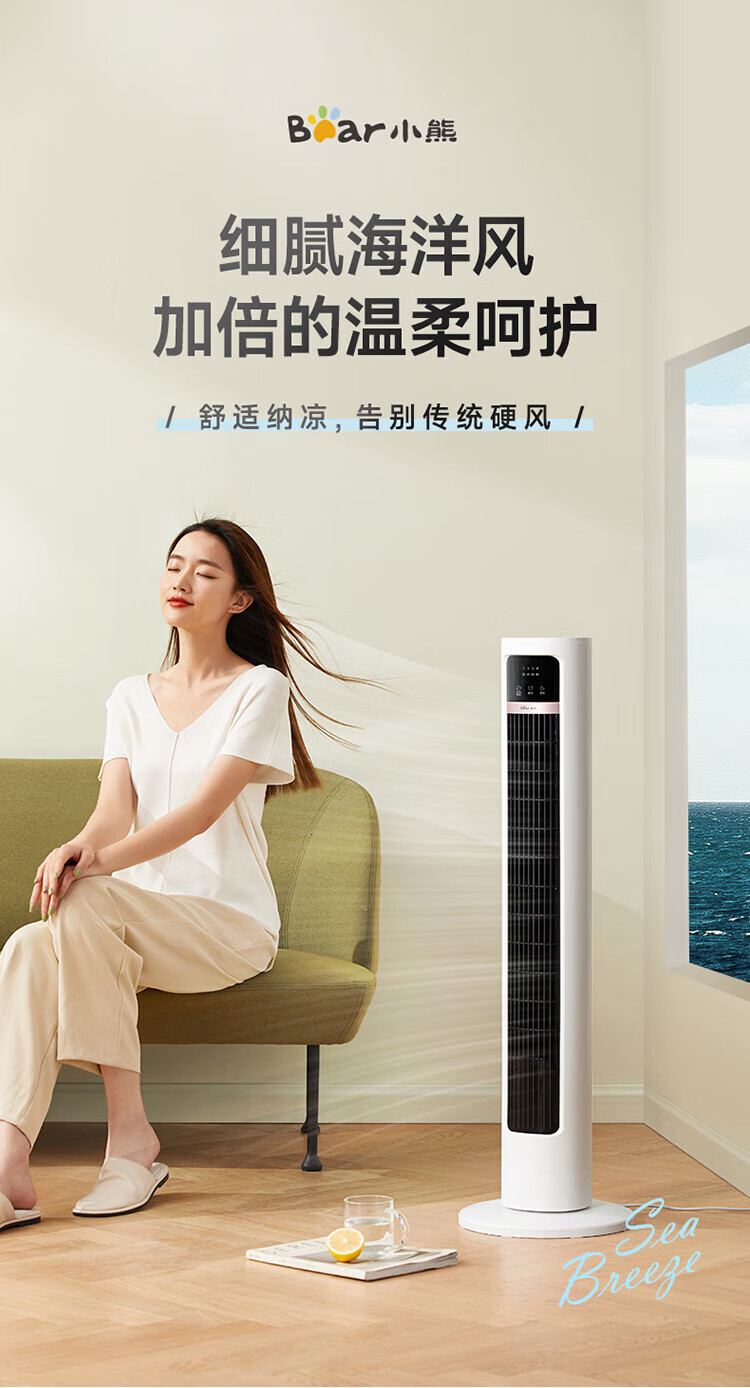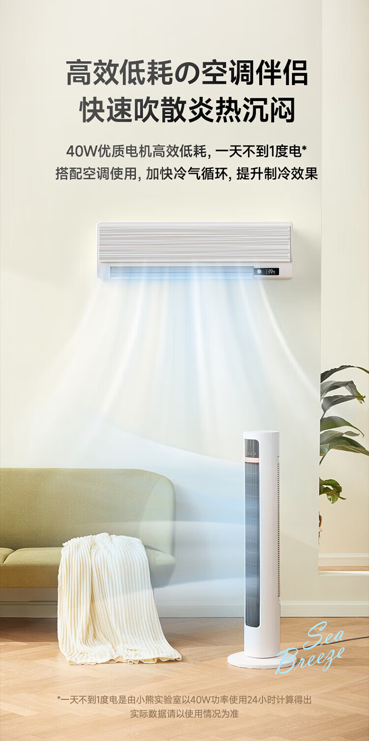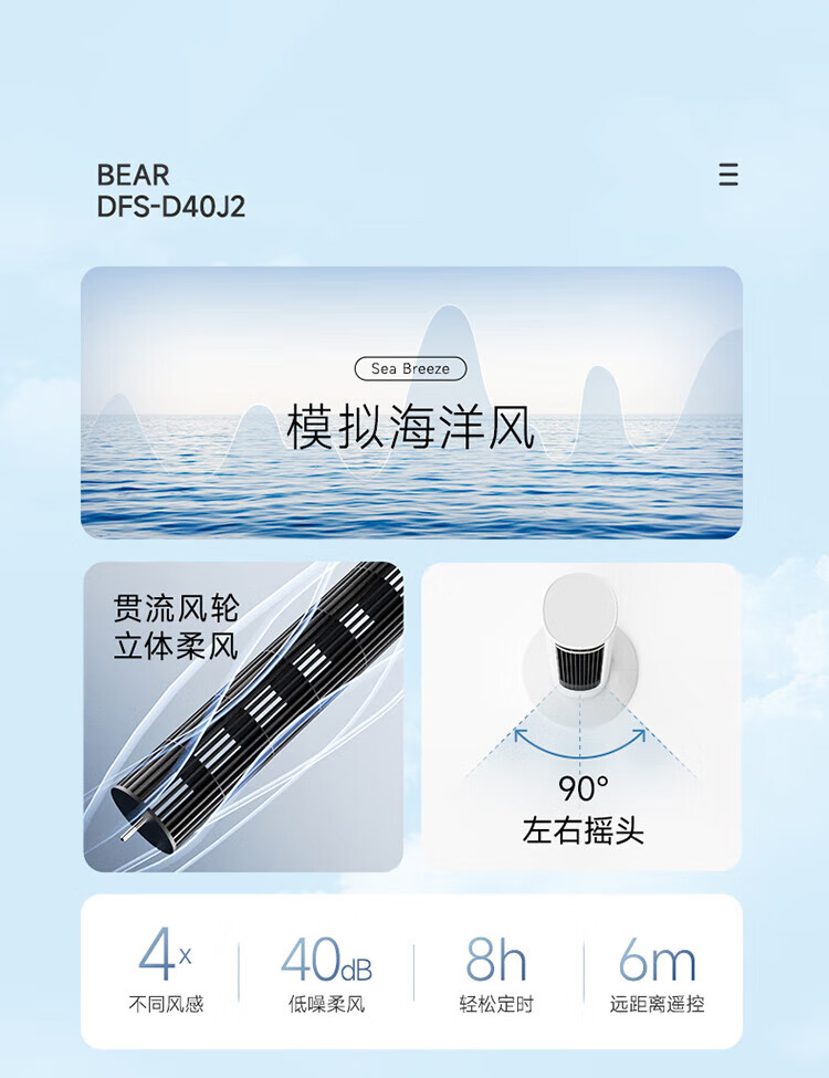 小熊(Bear)无叶风扇塔扇电风扇落地扇立式风扇空气循环扇智能遥控风扇办公室风扇 DFS-D40J2