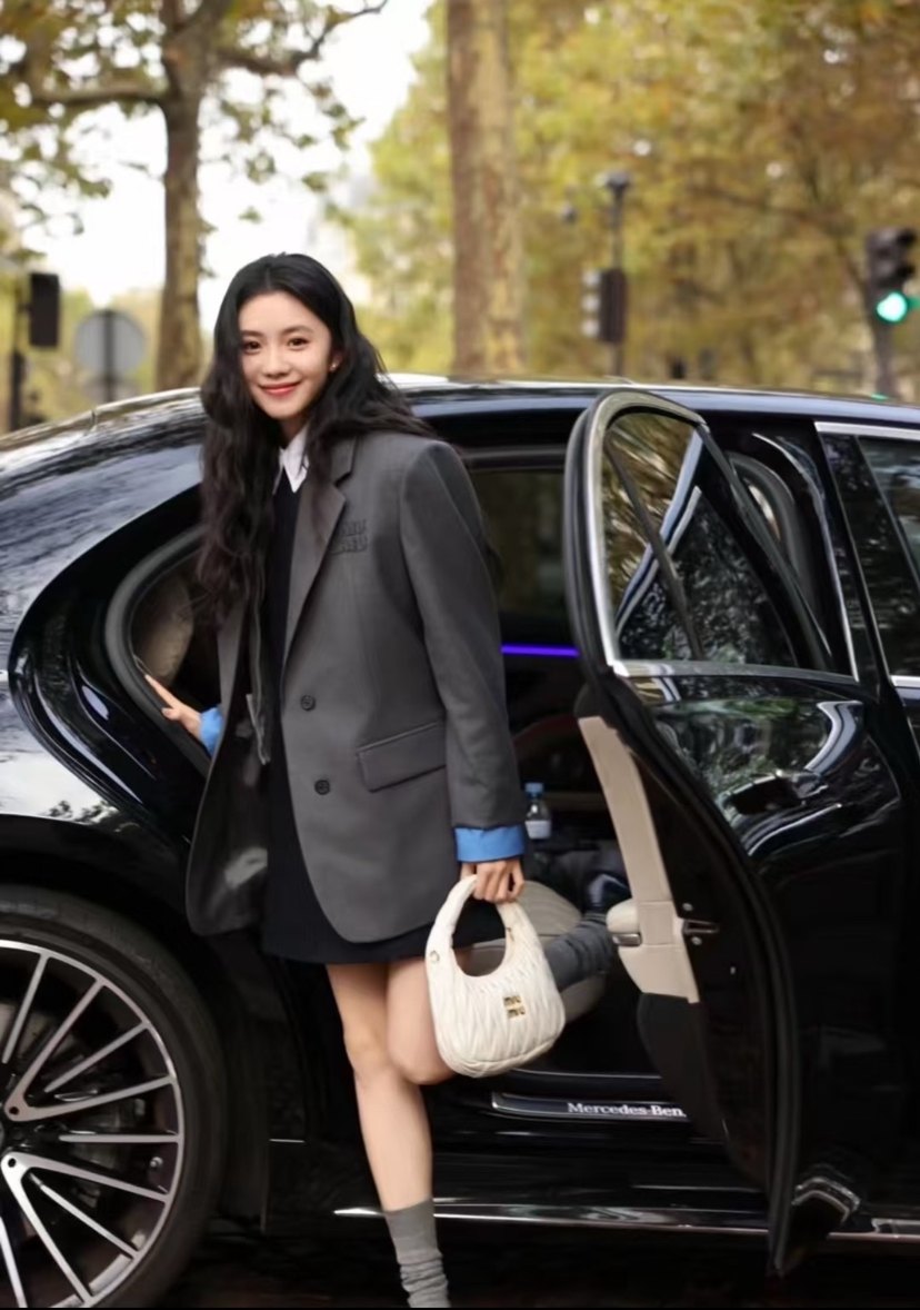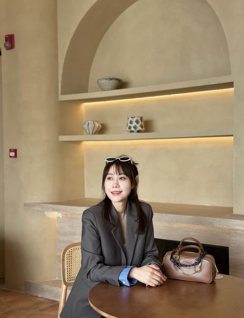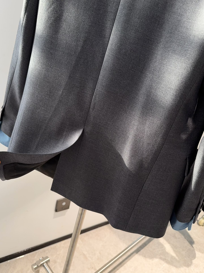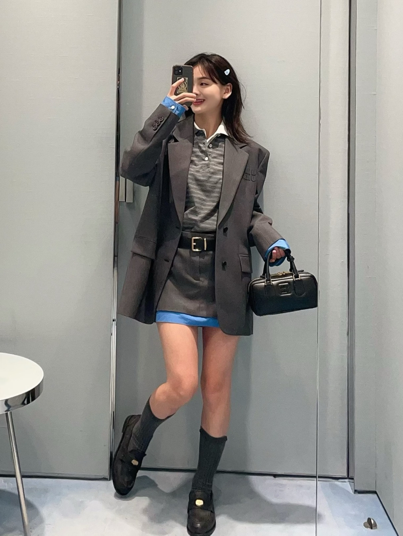 314-1大爆款 miu女士撞色拼接西服 深灰/蓝色袖口西装