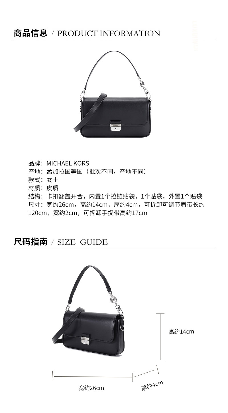 【高圆圆同款儿同款】Michael Kors/迈克·科尔斯 2021款 MK女包小号BRADSHAW系列皮质手提单肩斜挎包 30S1S2BL1L