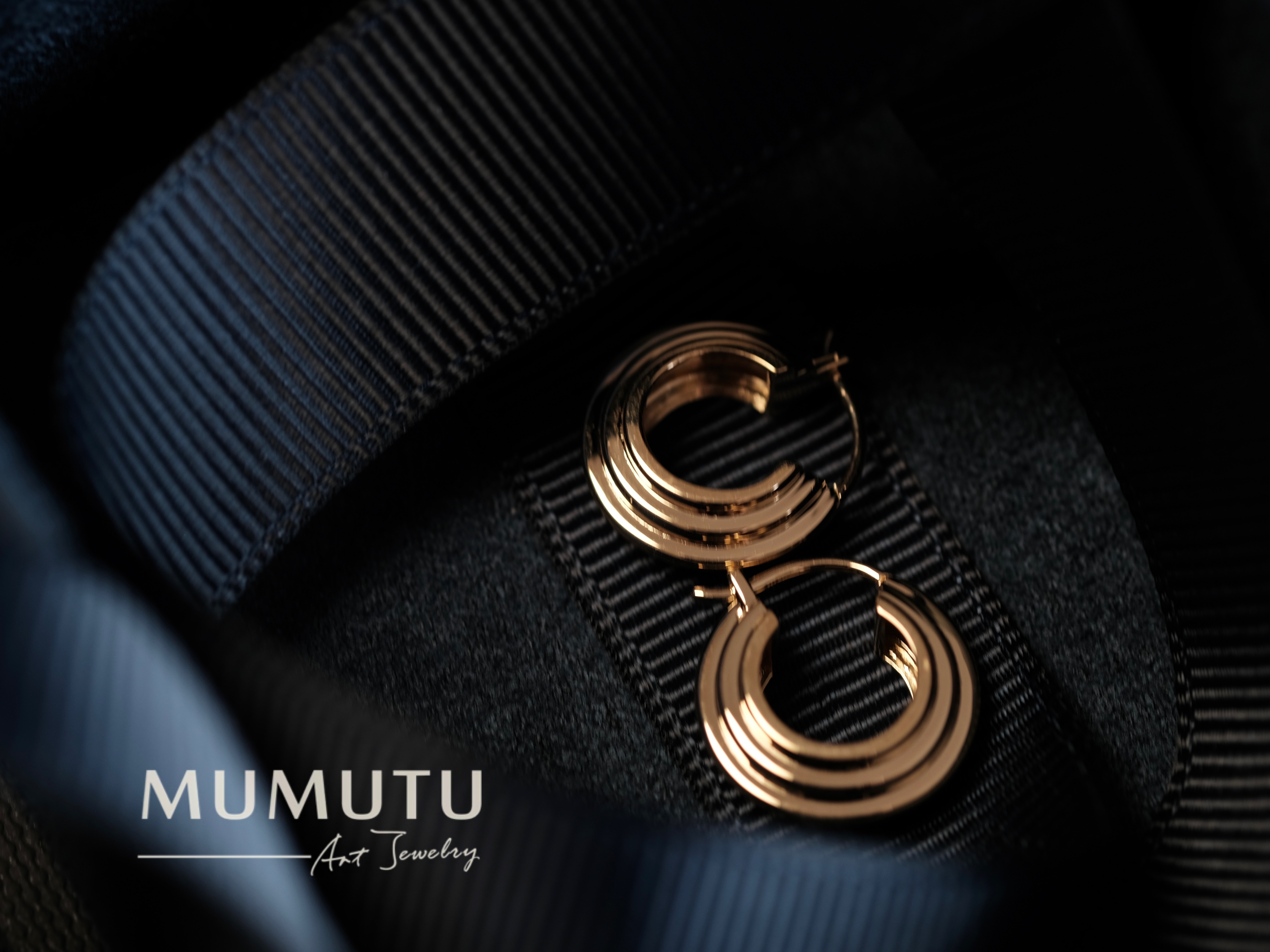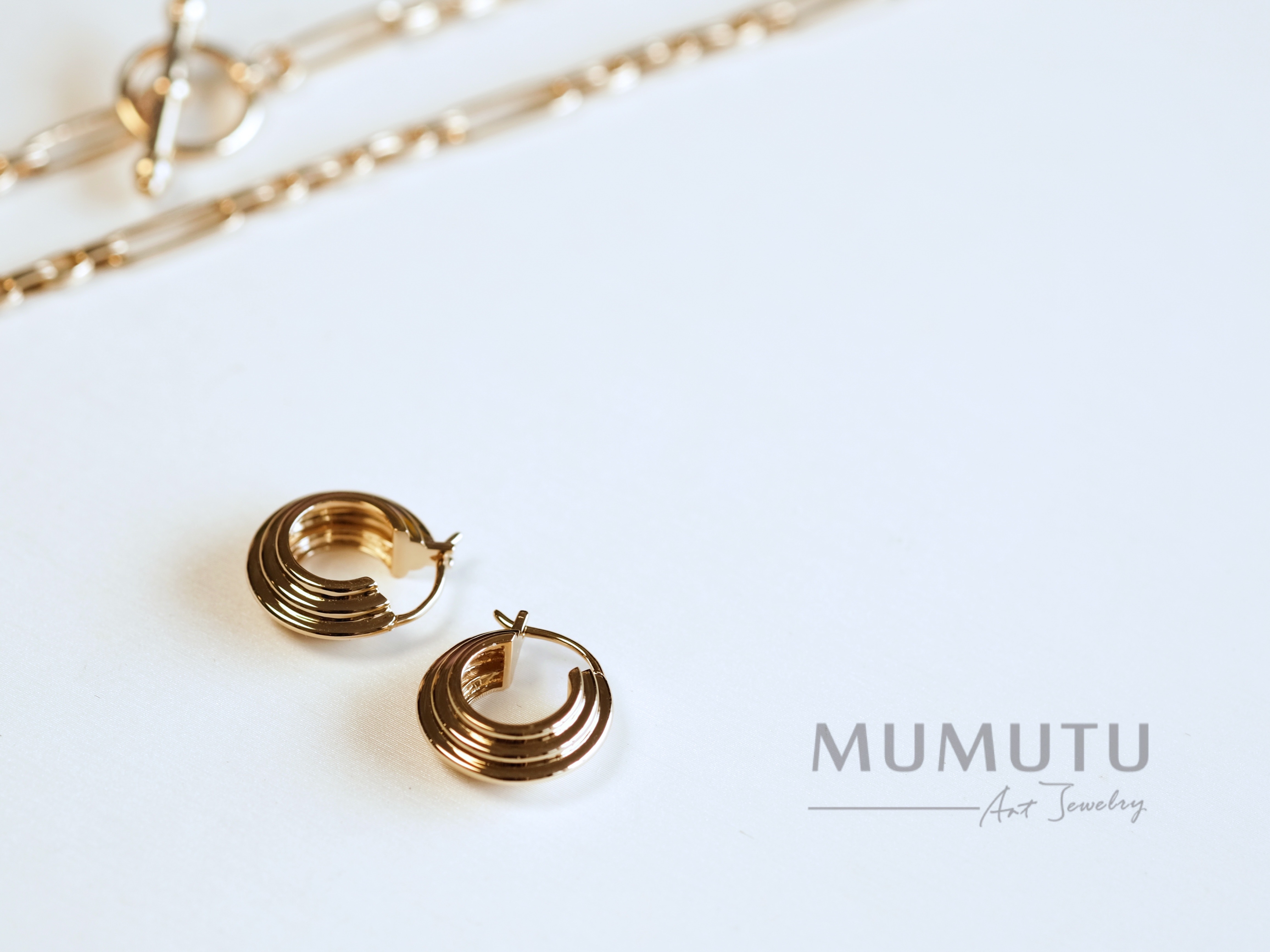 18K黄 三重奏耳圈