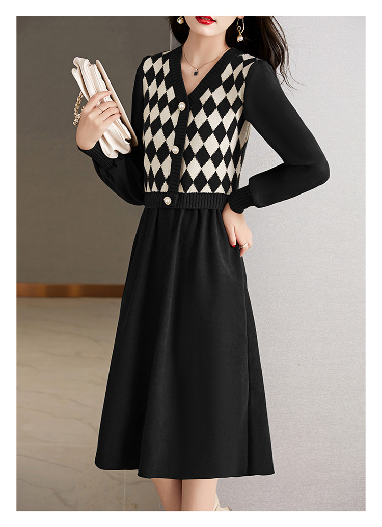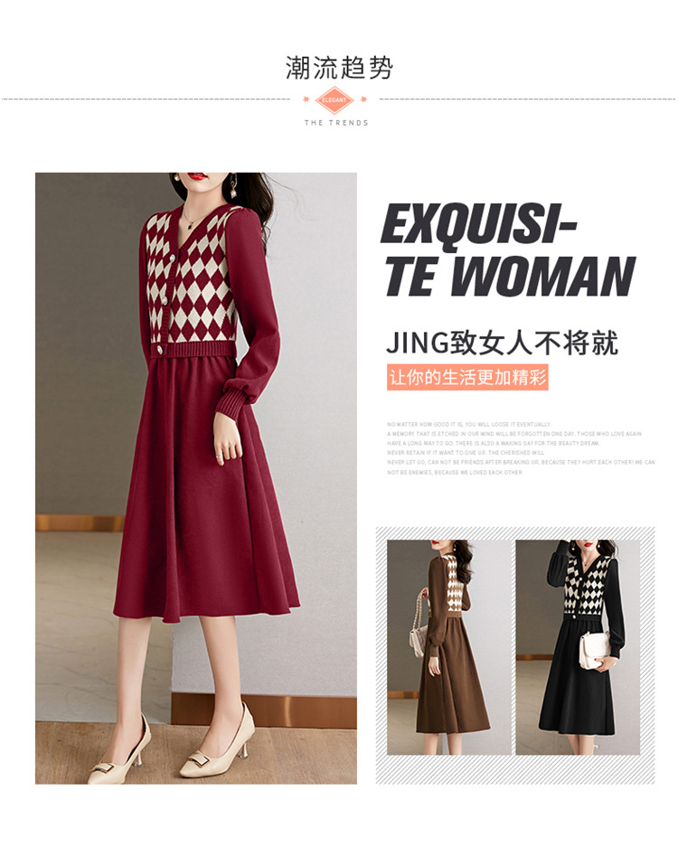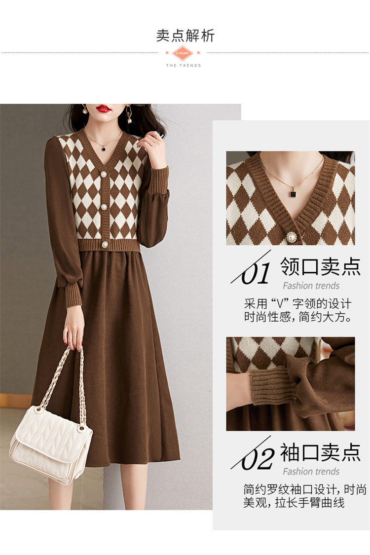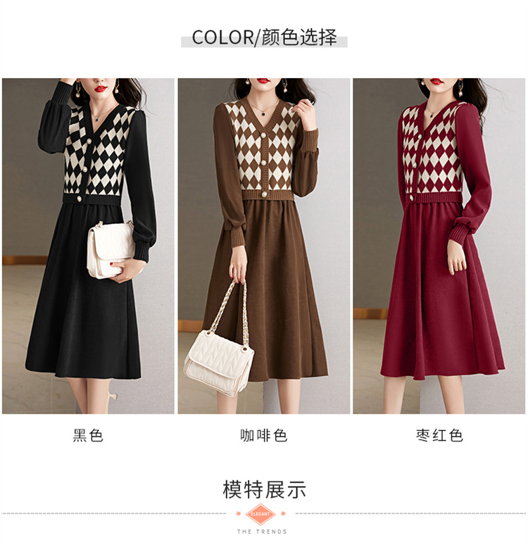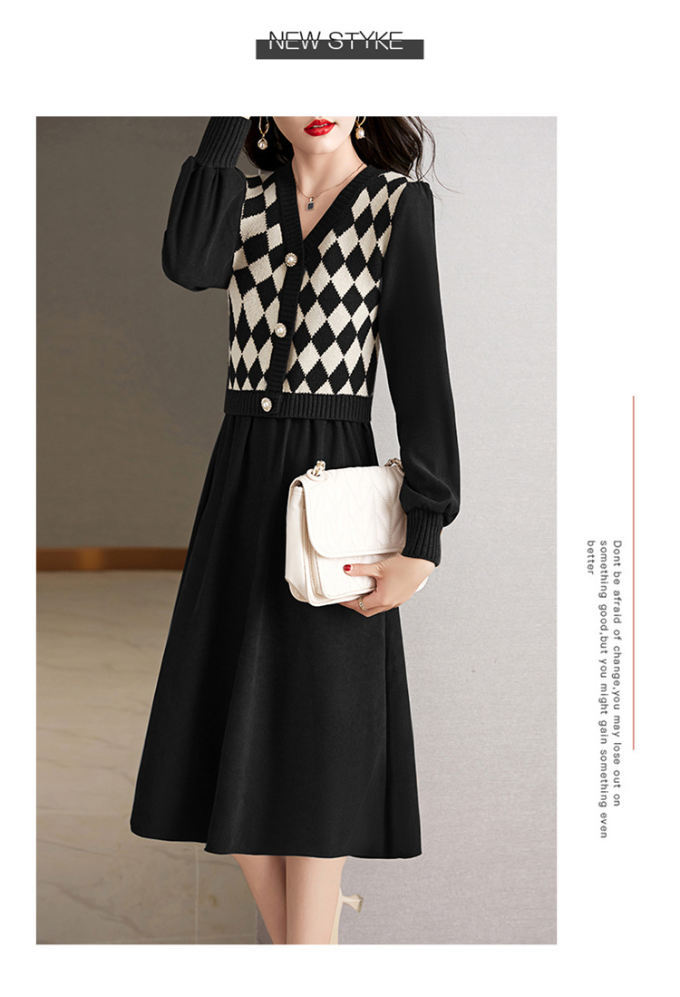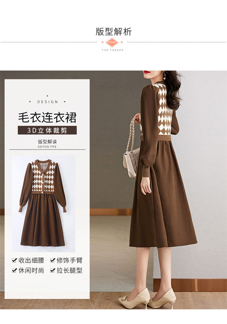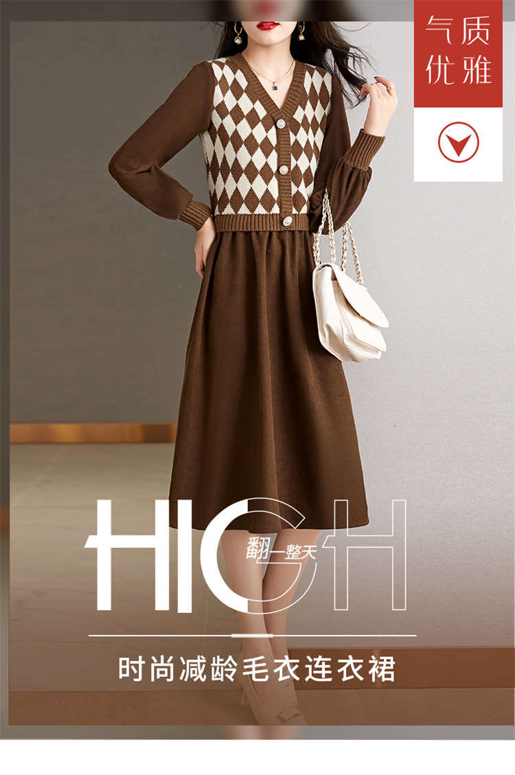 设计感菱格小香风,假两件针织毛衣裙子HR-WXS1269