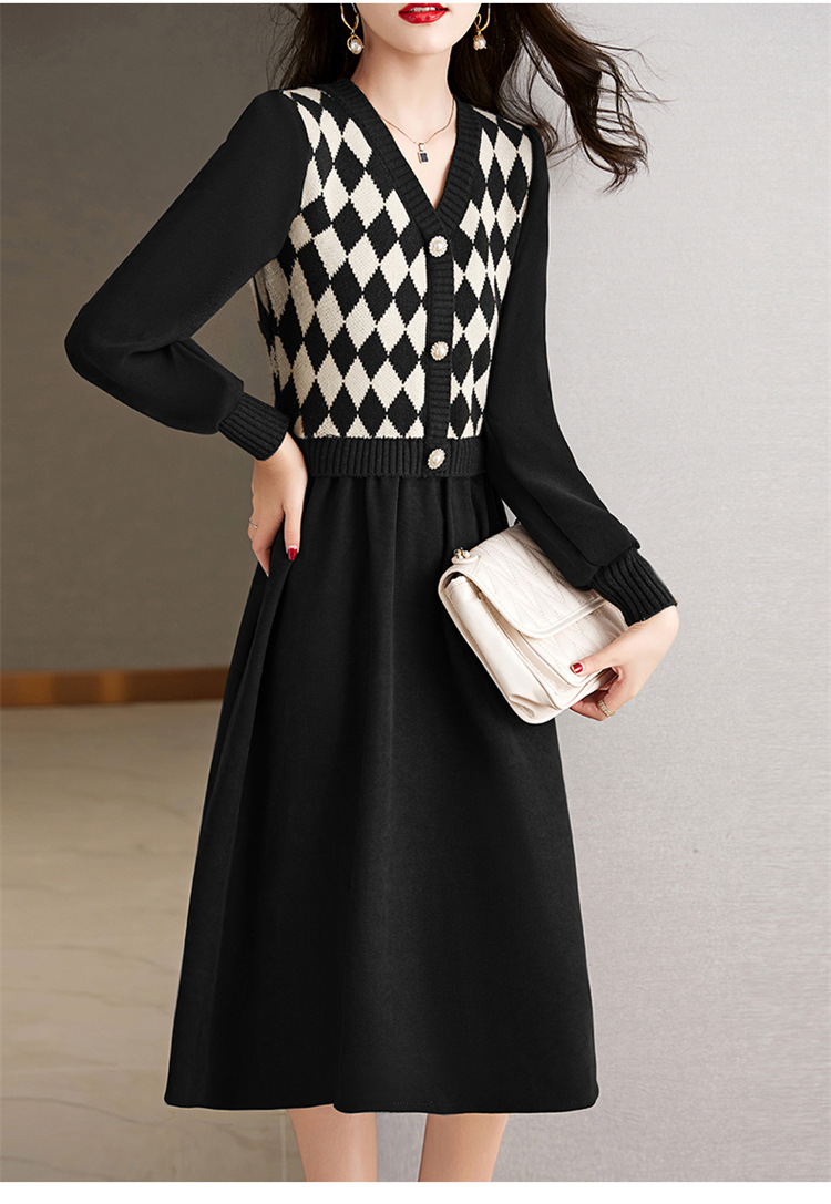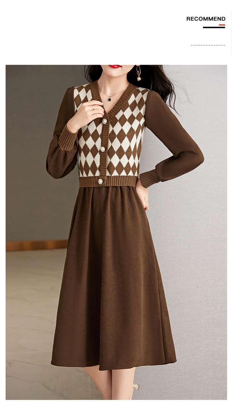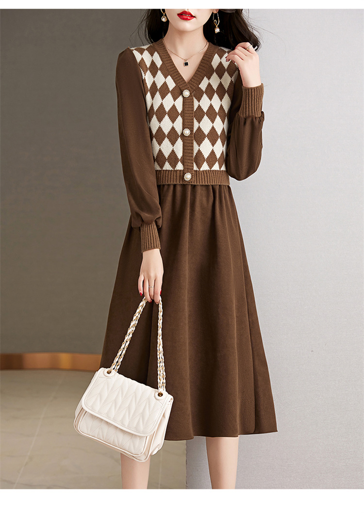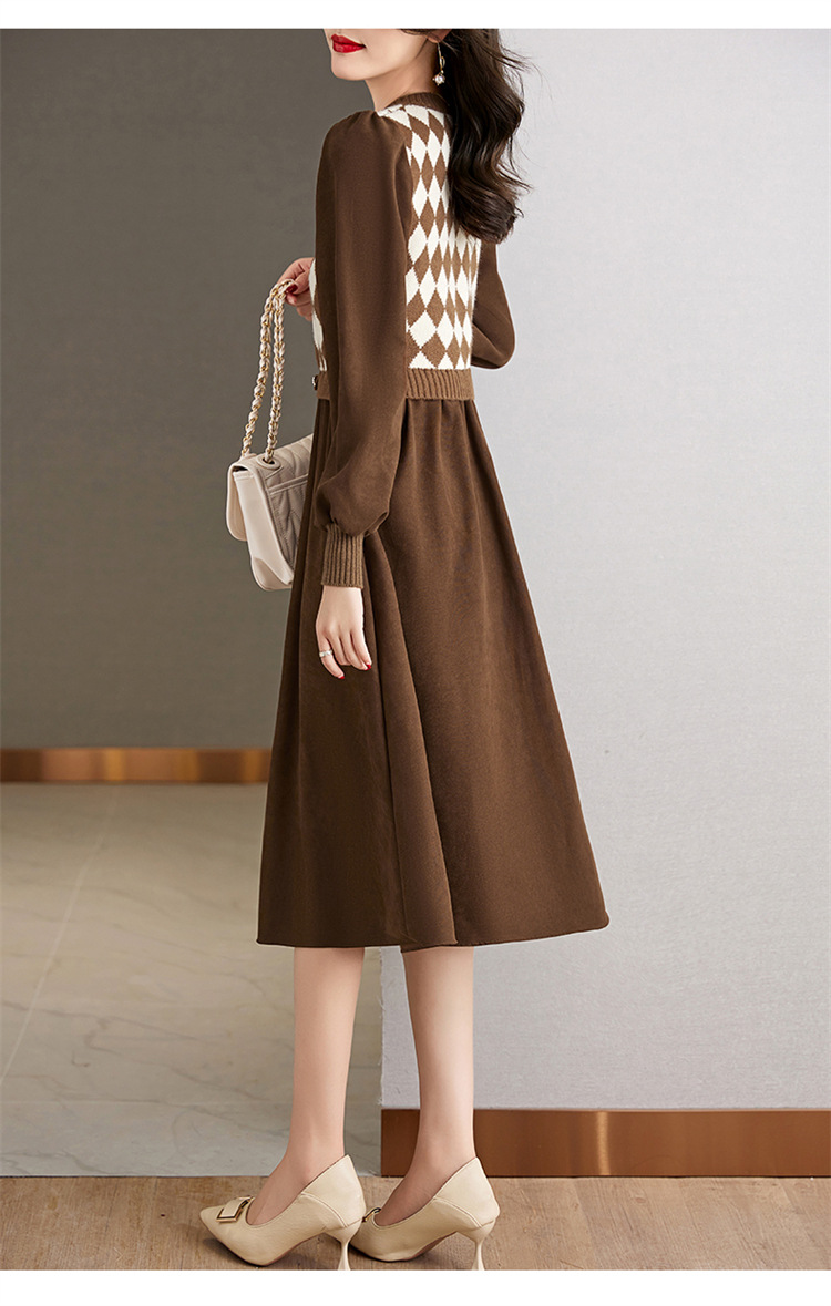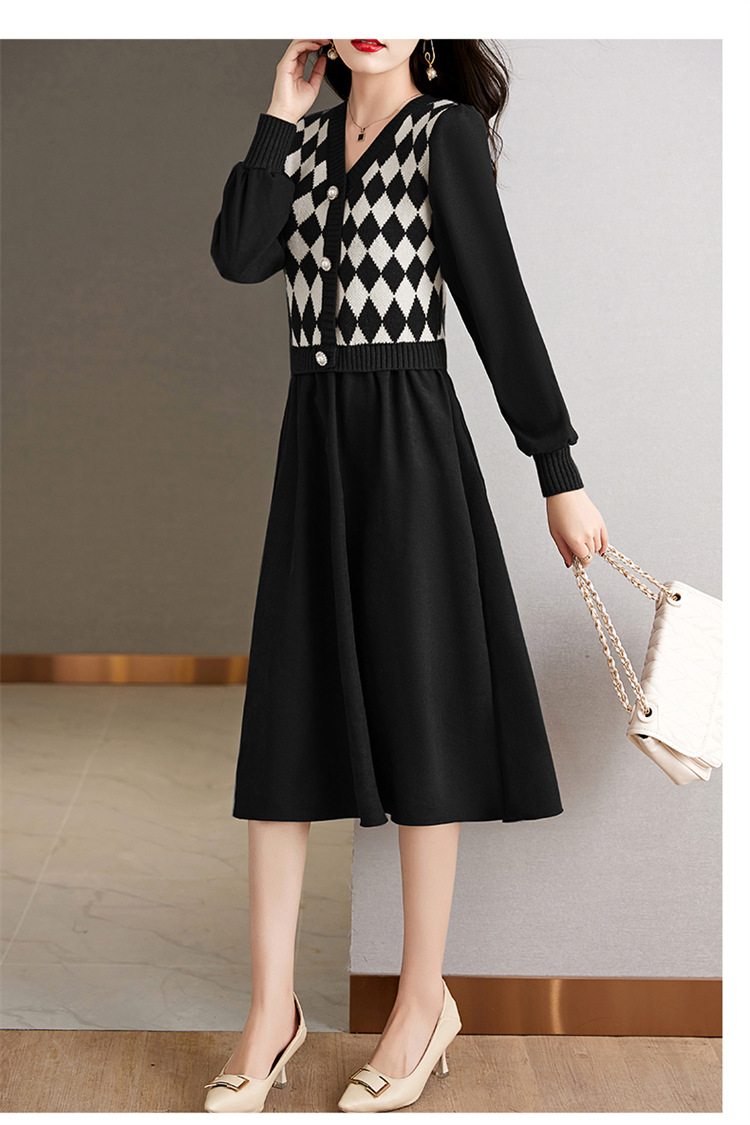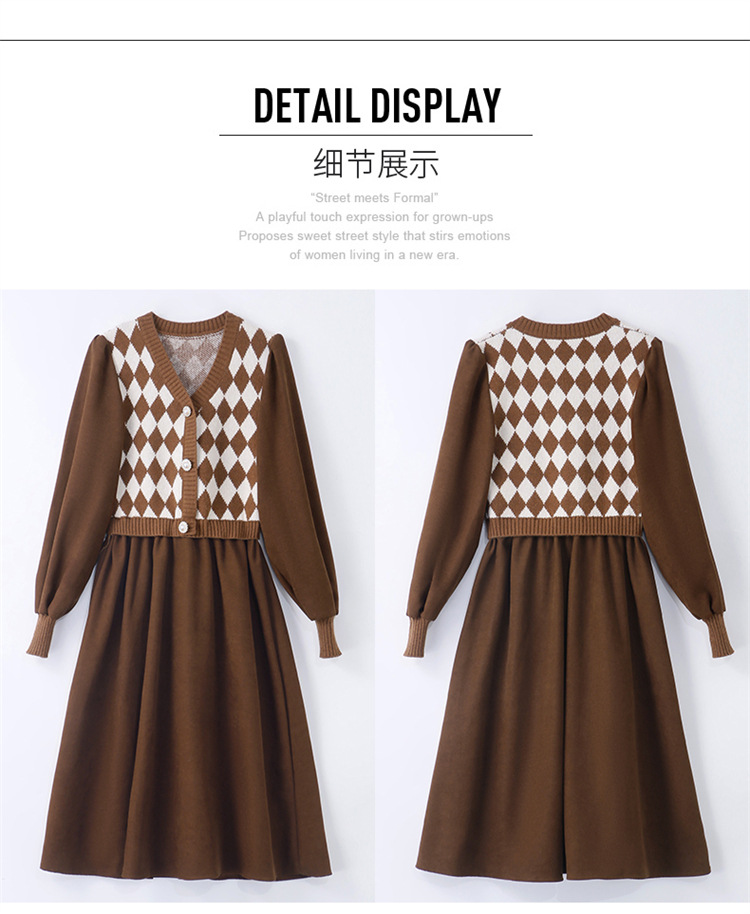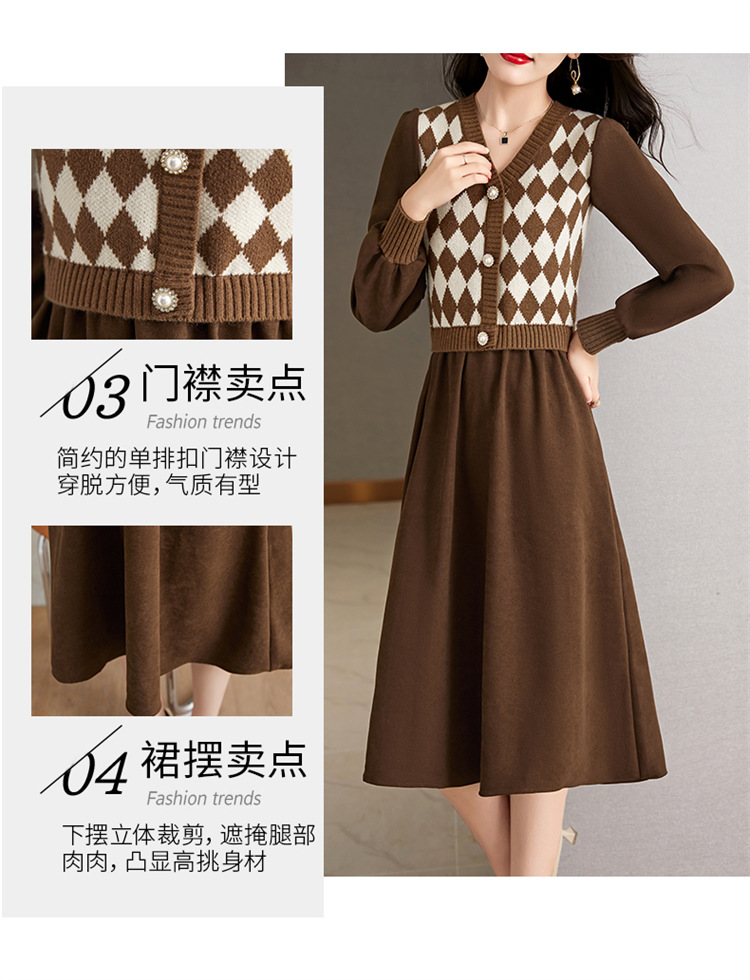 设计感菱格小香风,假两件针织毛衣裙子HR-WXS1269