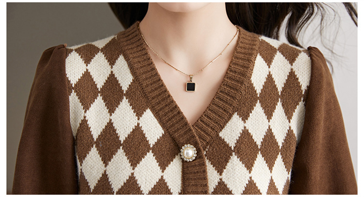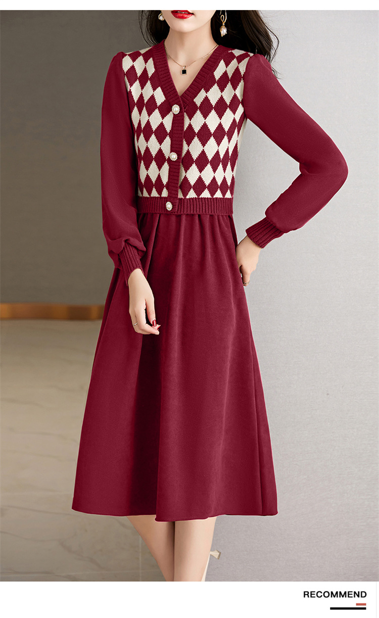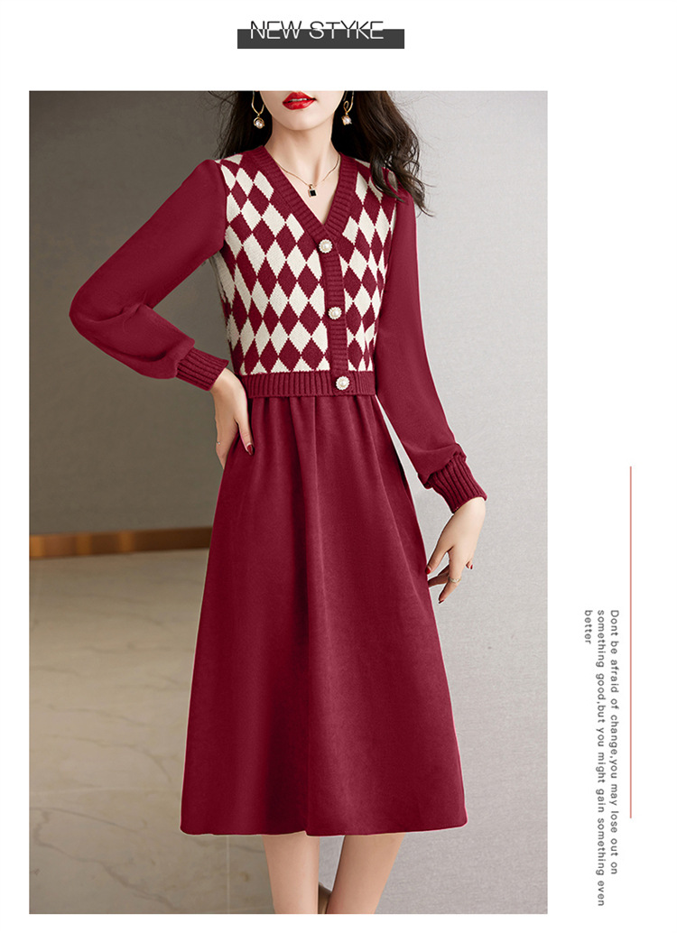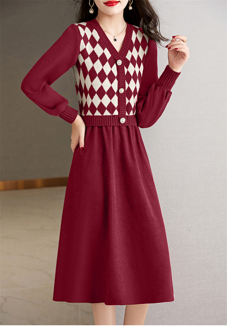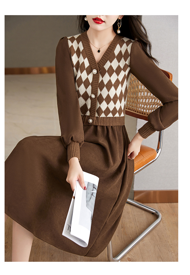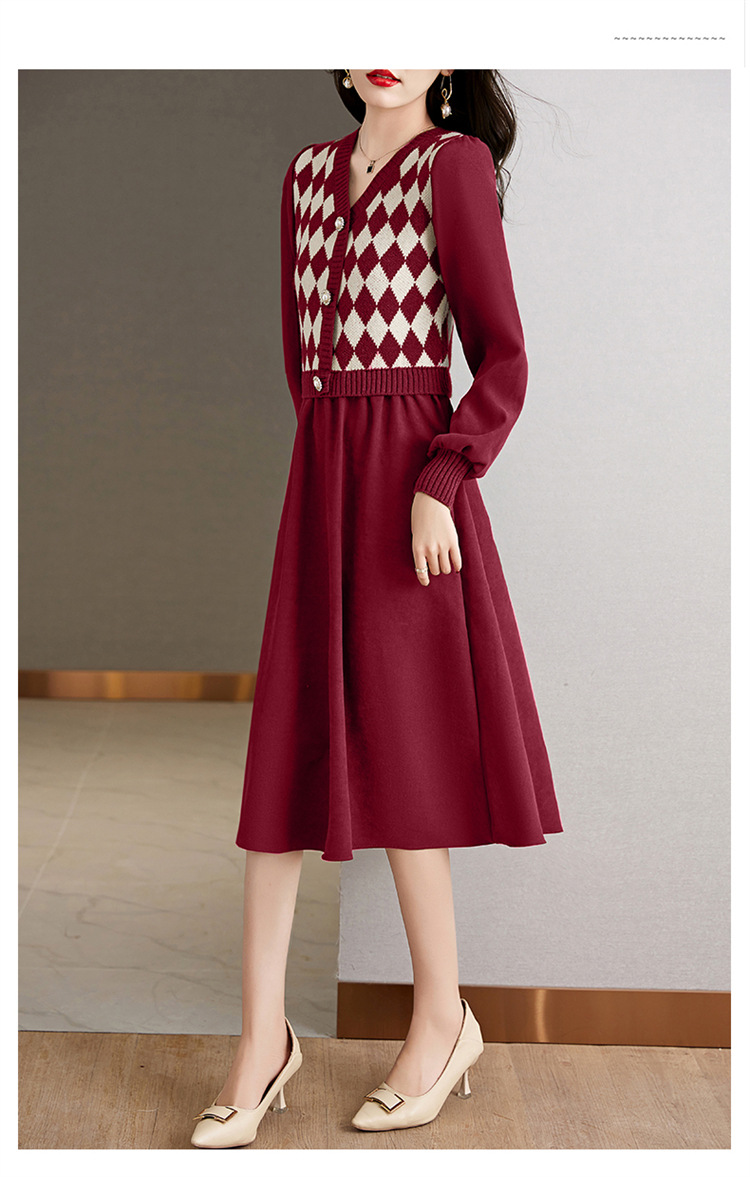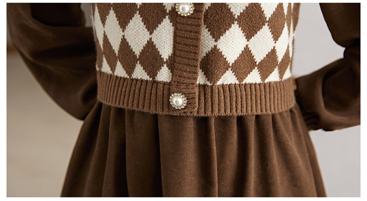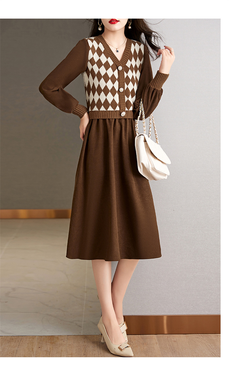 设计感菱格小香风,假两件针织毛衣裙子HR-WXS1269