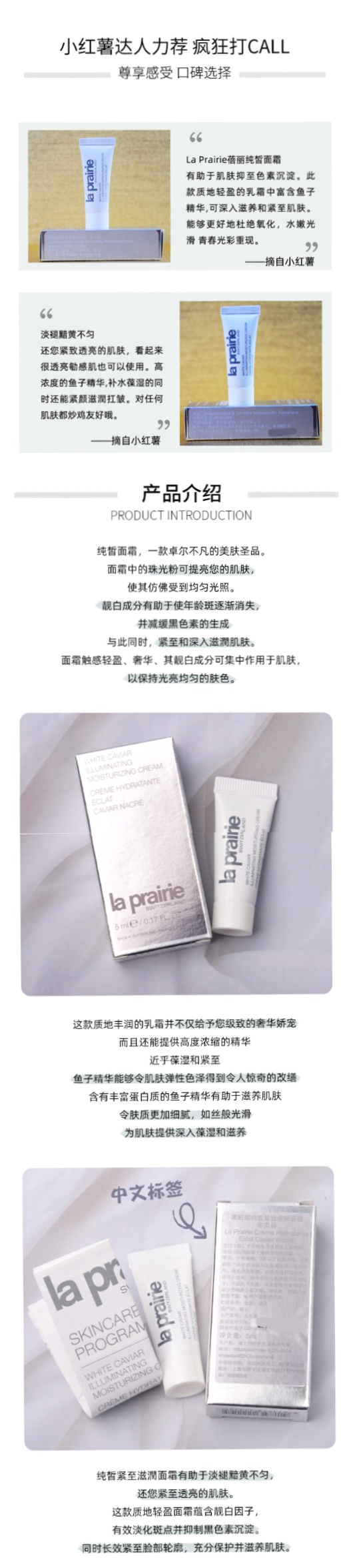【现货】莱珀妮(La Prairie)小样面霜管装5ml