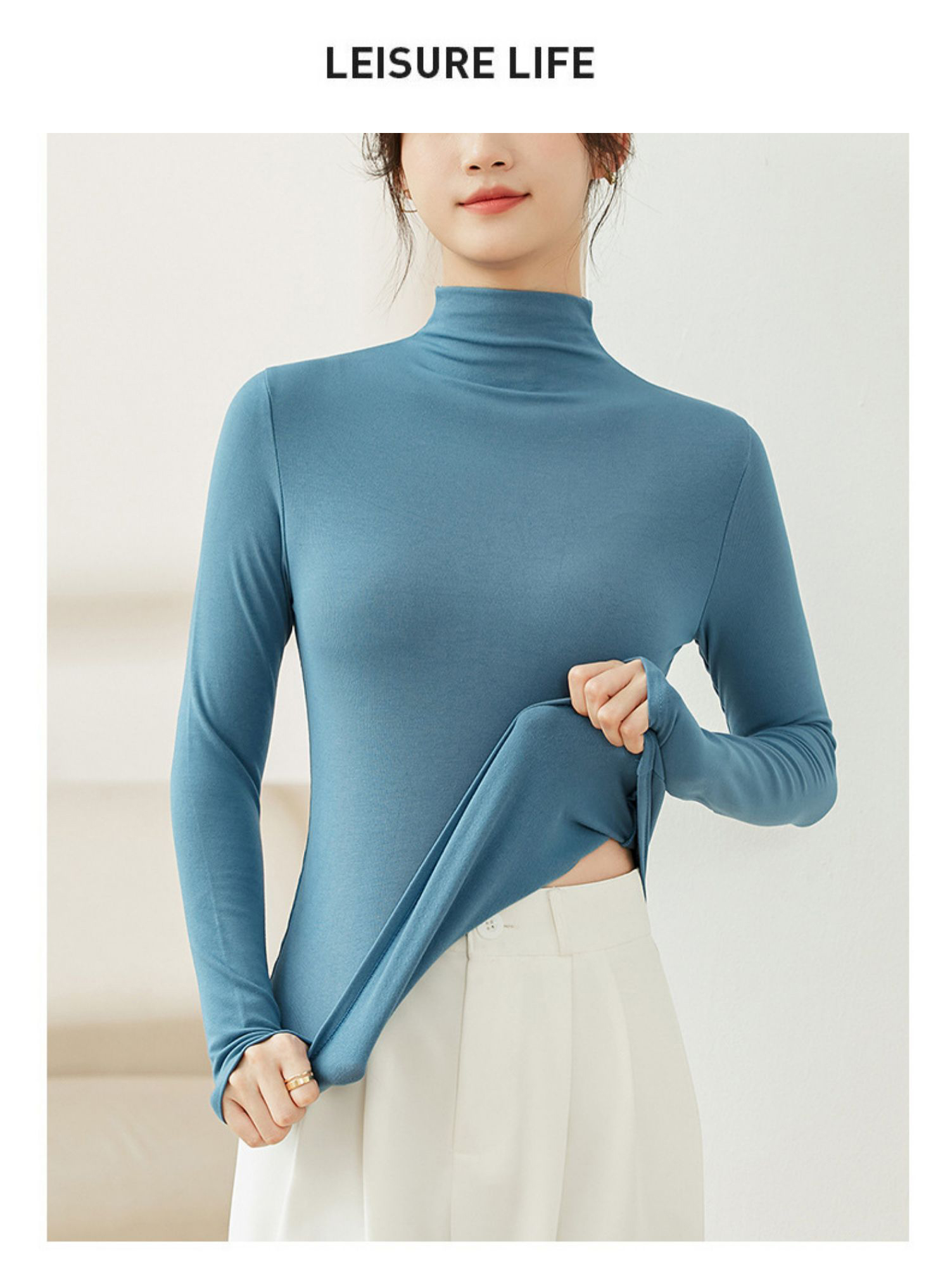 半高领打底衫女秋冬内搭磨毛上衣7227
