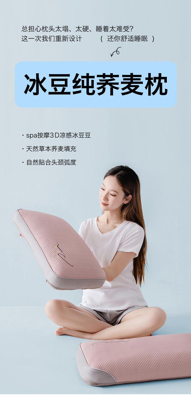 【79元2个】清凉冰豆豆纯荞麦枕 贴合颈椎舒缓解压草本助眠护颈枕