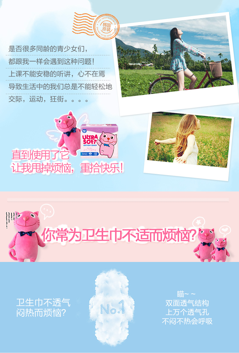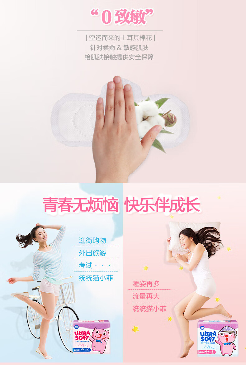 恩芝猫小菲纯棉日用卫生巾 250mm/10P