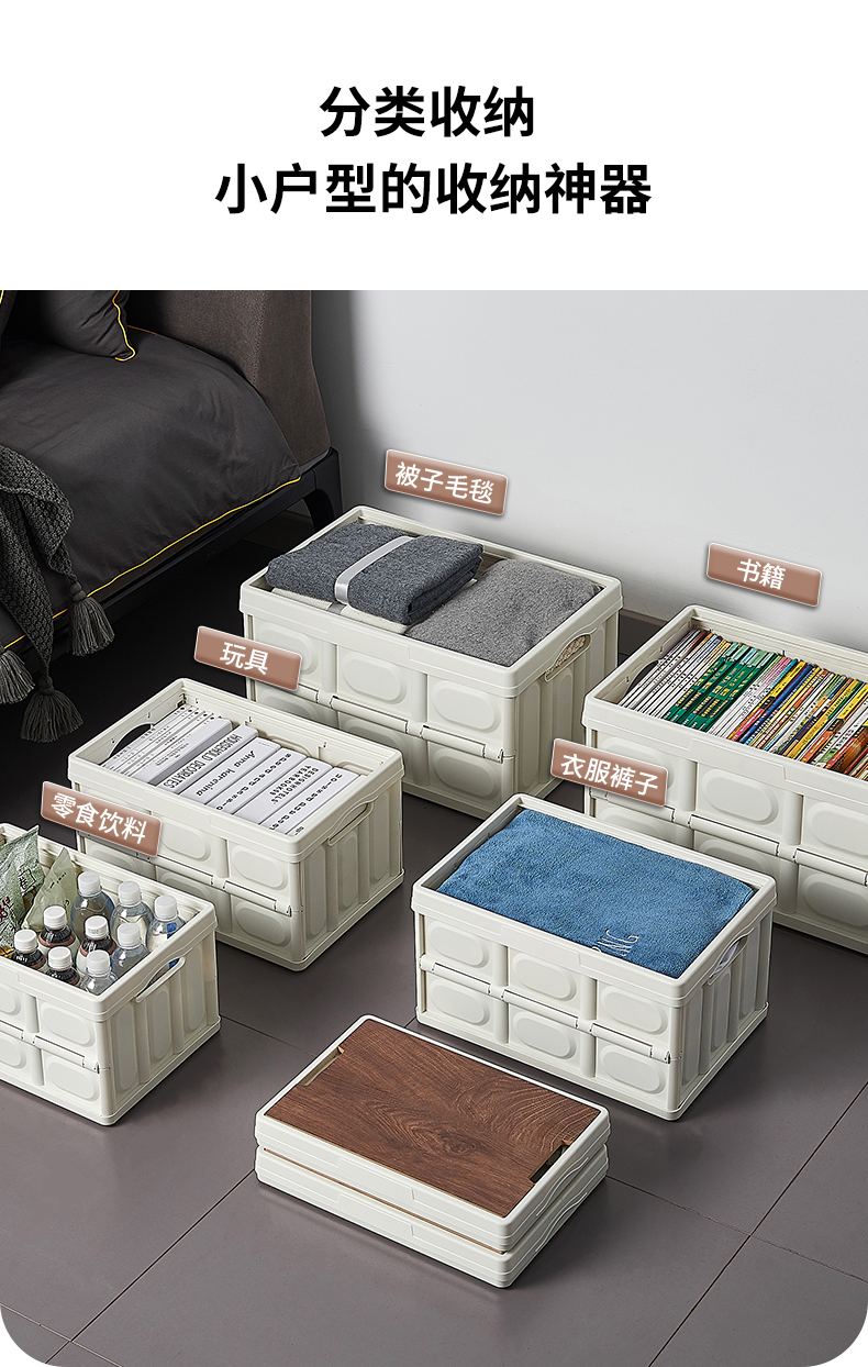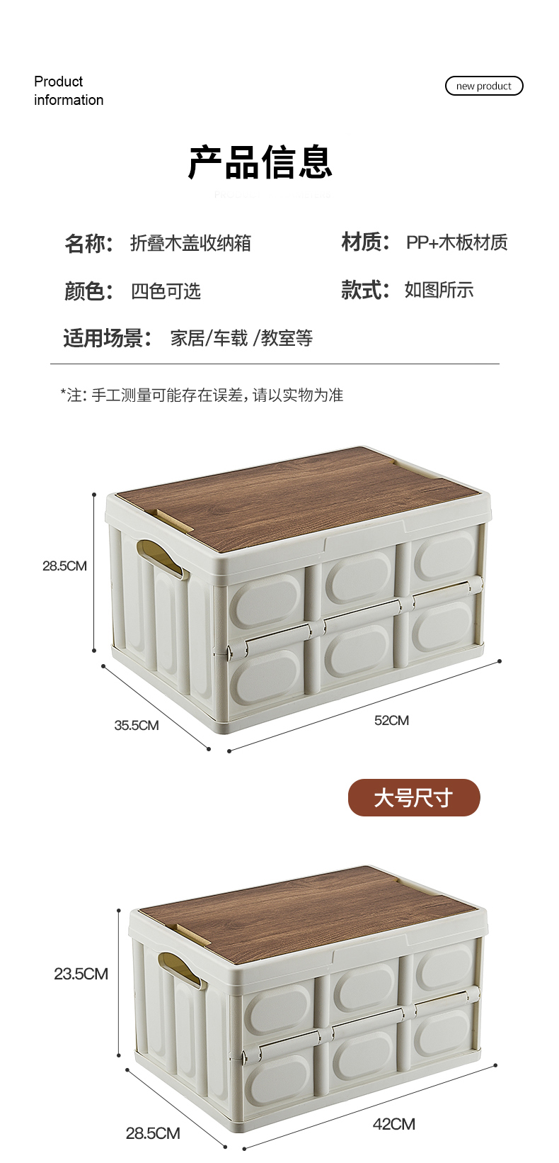 加厚可折叠大号衣服收纳箱户外野营木盖款大容量整理箱