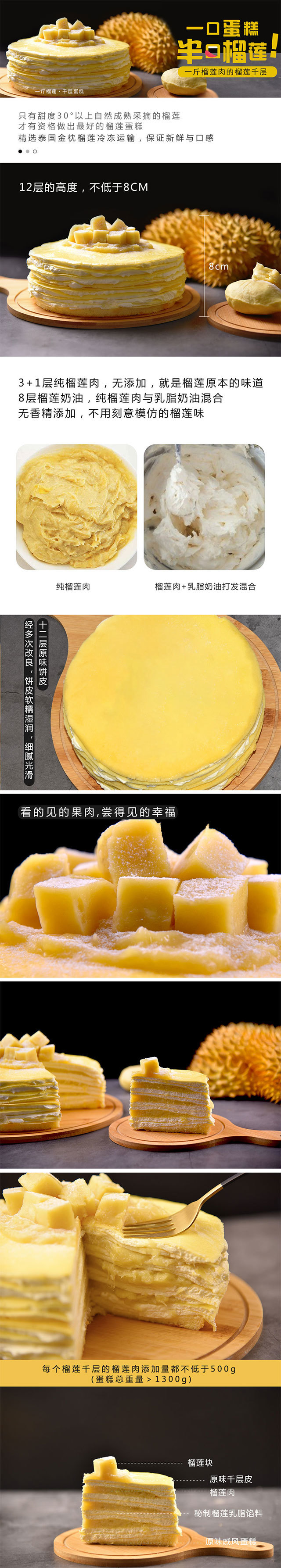 千层榴莲蛋糕( 重量大于1300g 内含一斤榴莲肉)