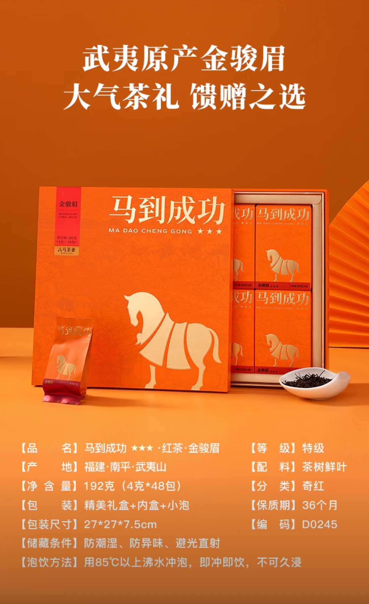 八马茶业·马到成功·金骏眉198g礼盒装(4g*48包)