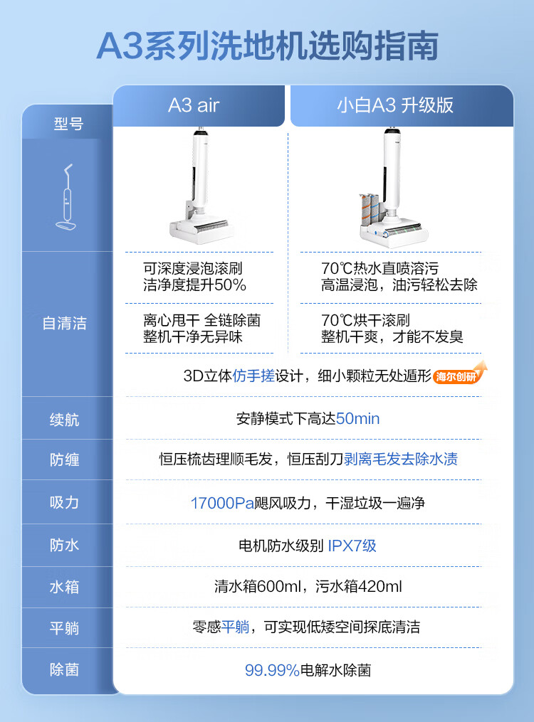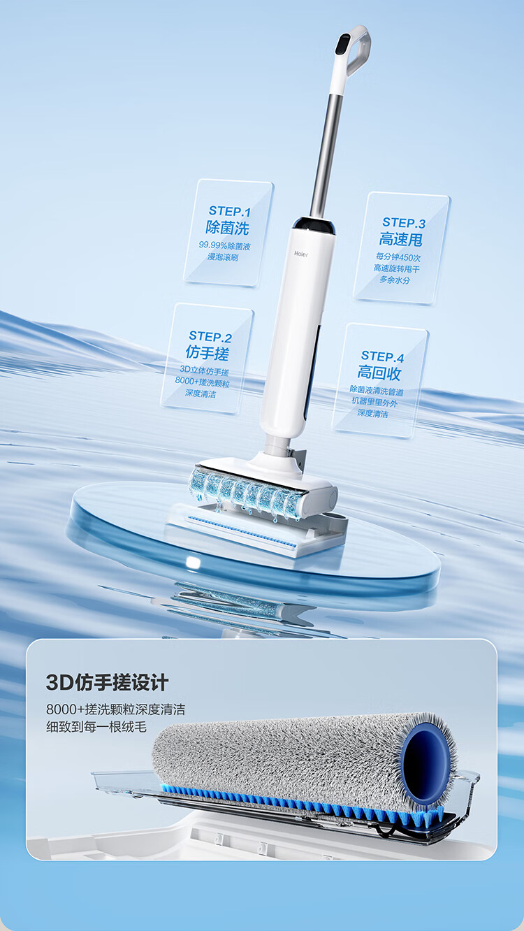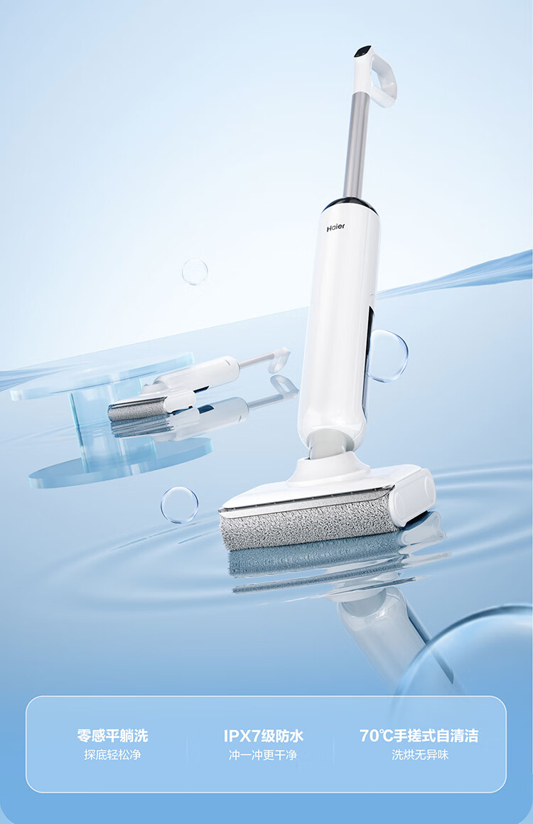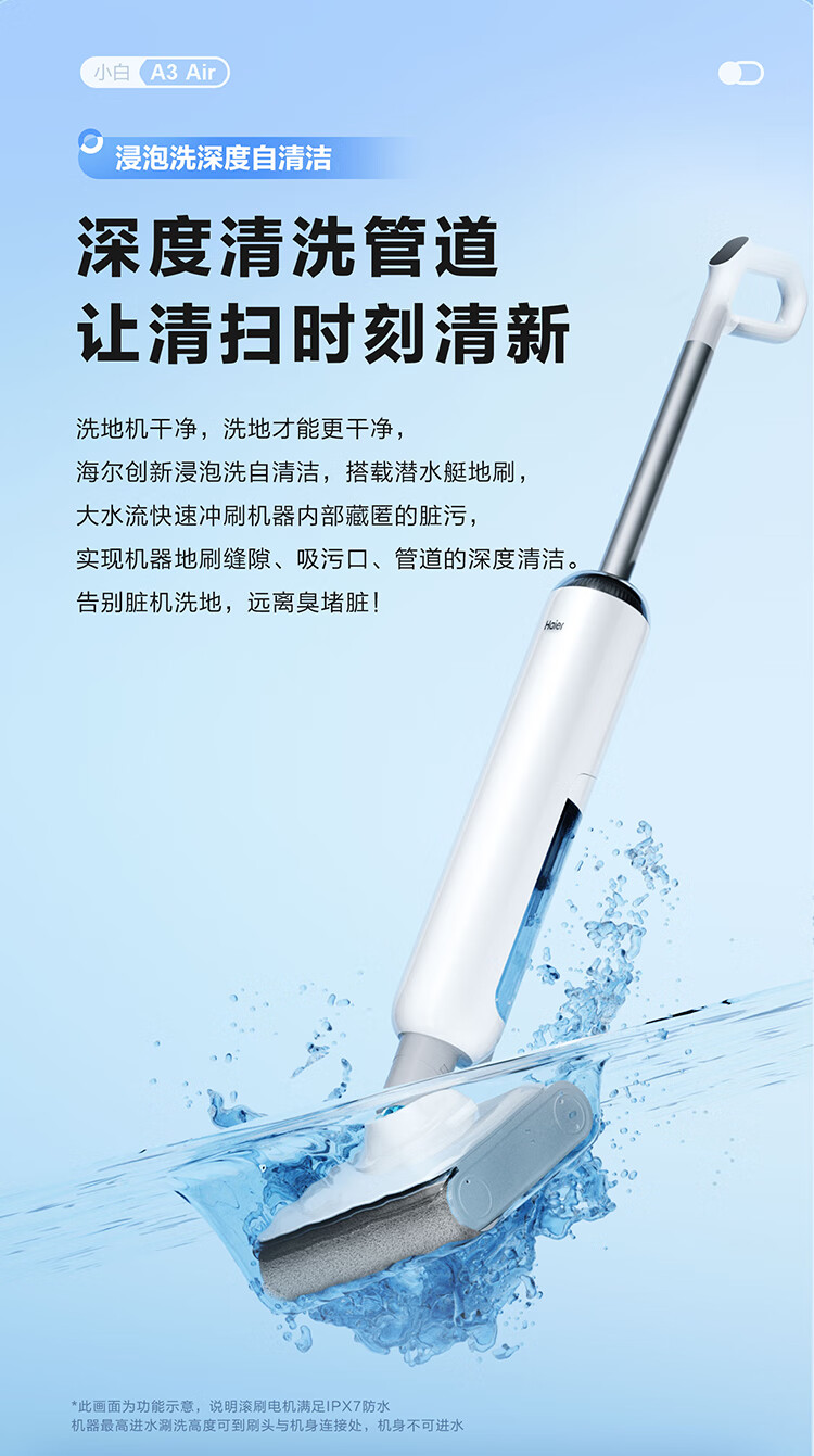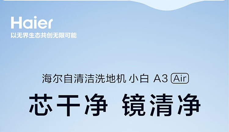 海尔(Haier)洗地机小白A3Air 【小红花套系】洗拖一体自动清洗智能拖地机零感平躺三贴边防缠毛可冲洗浸泡地刷 【旗舰新品A3 Air】