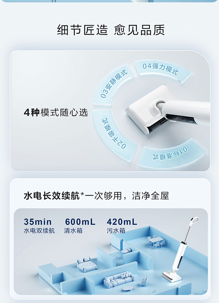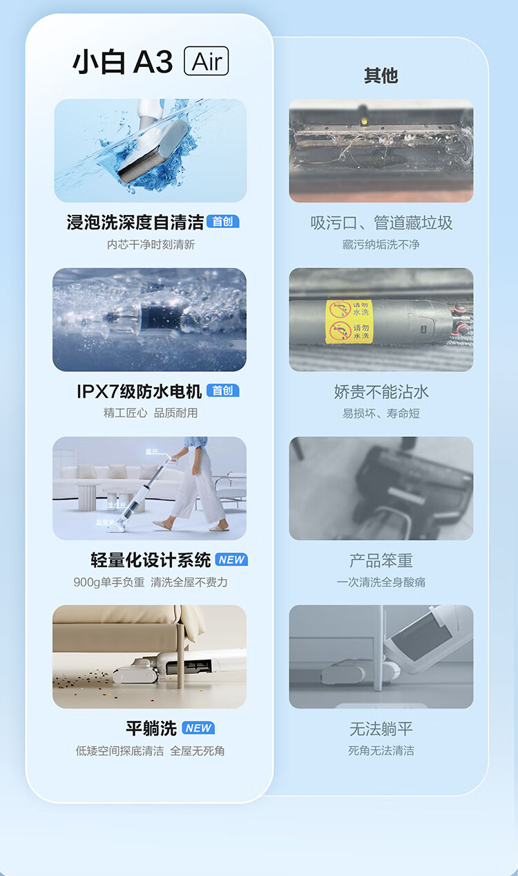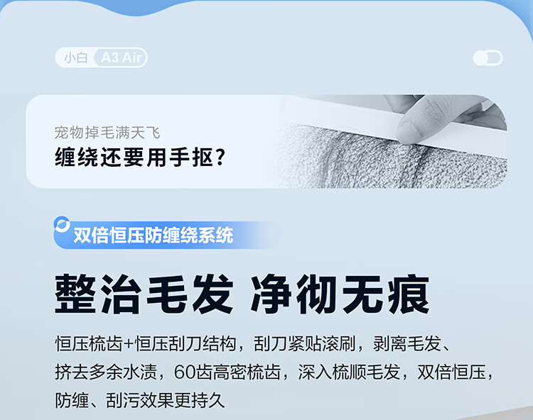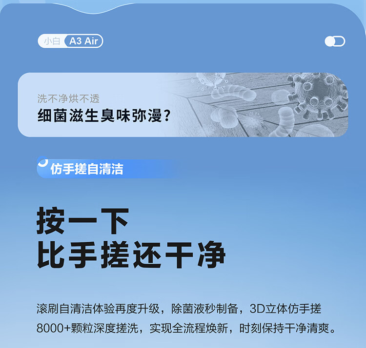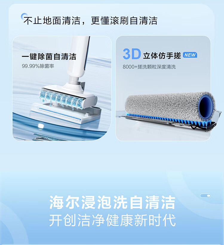 海尔(Haier)洗地机小白A3Air 【小红花套系】洗拖一体自动清洗智能拖地机零感平躺三贴边防缠毛可冲洗浸泡地刷 【旗舰新品A3 Air】