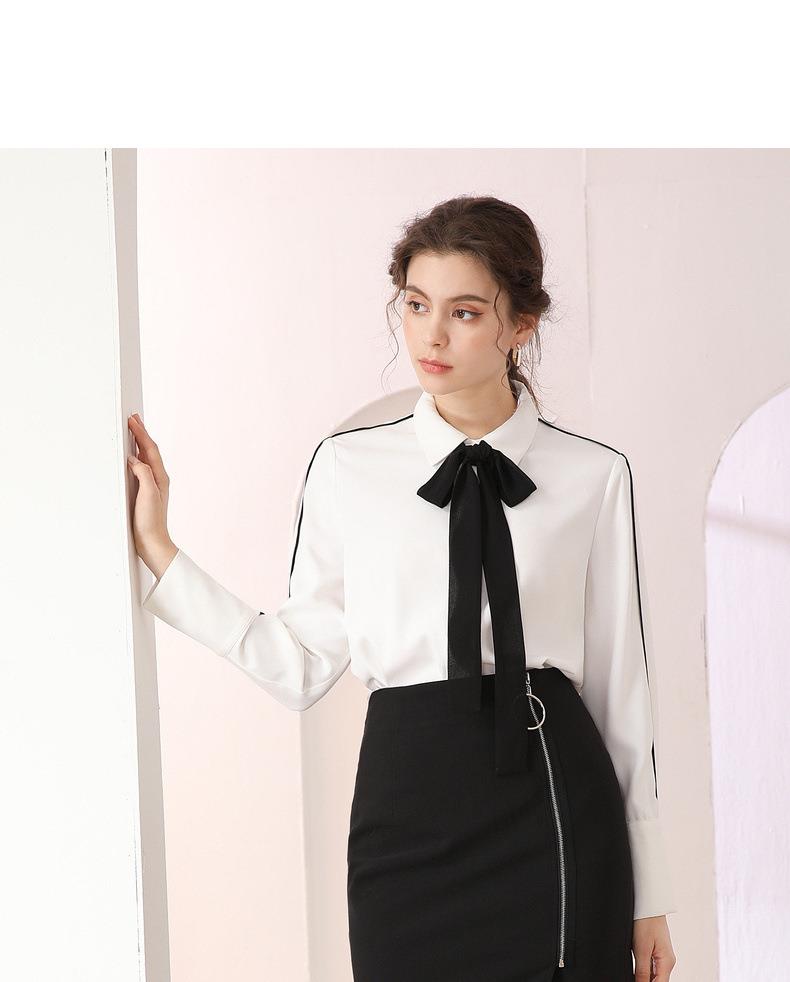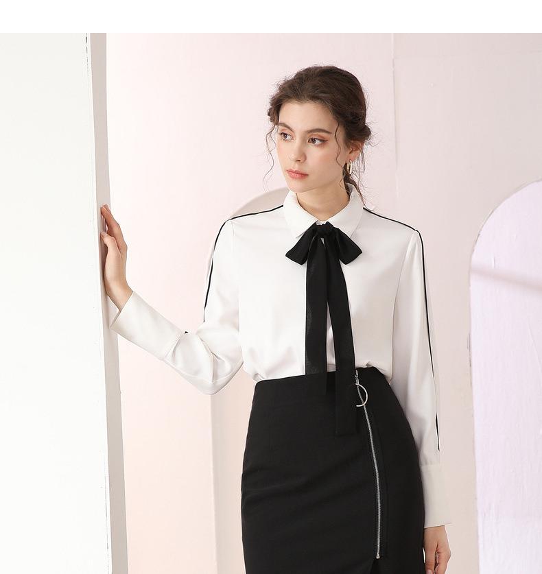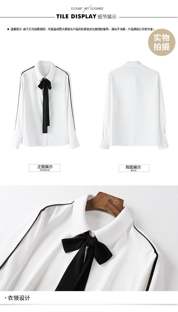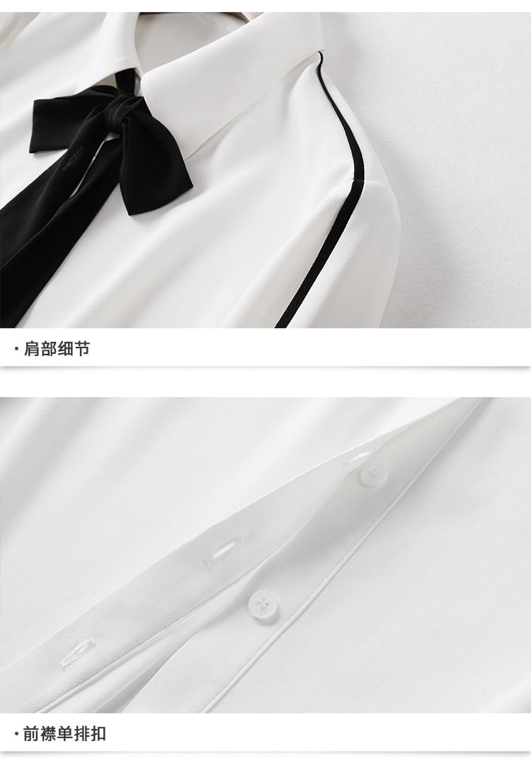 百姿 气质优雅POLO领纯色长袖衬衫2023年春季OL蝴蝶结开衫衬衣女装