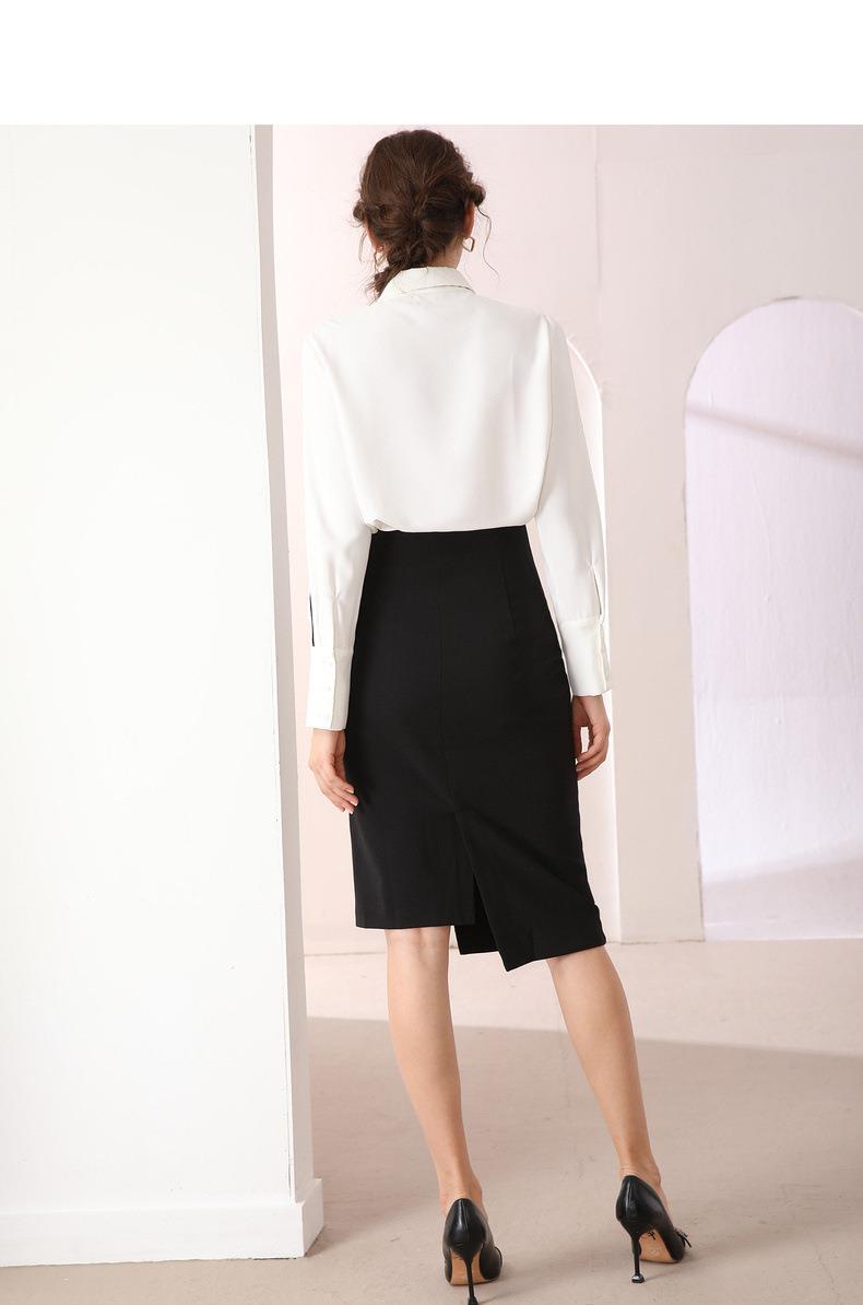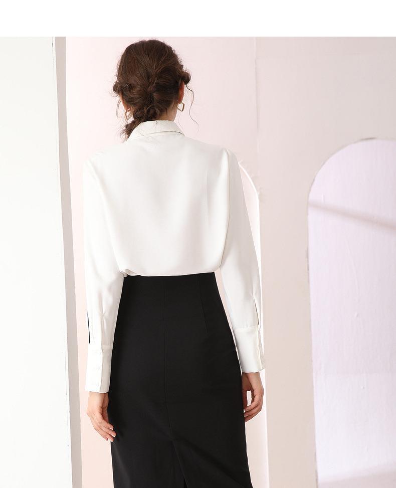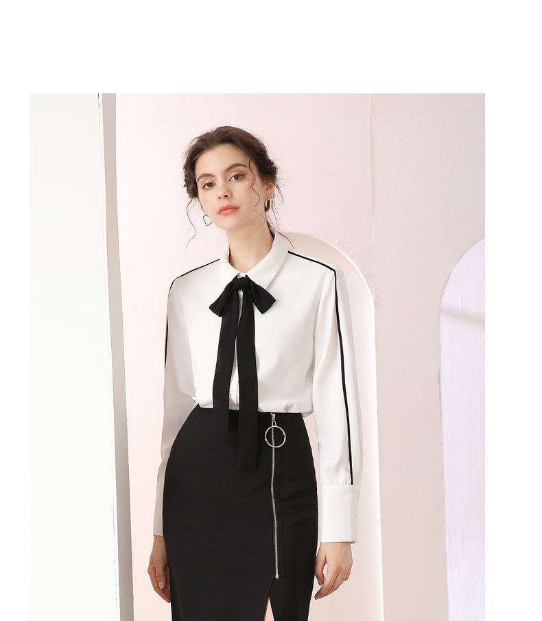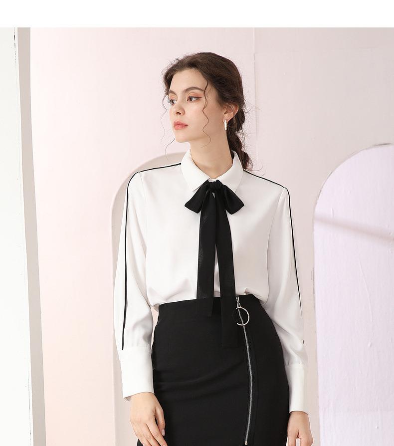 百姿 气质优雅POLO领纯色长袖衬衫2023年春季OL蝴蝶结开衫衬衣女装