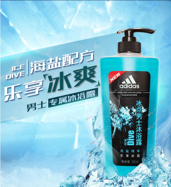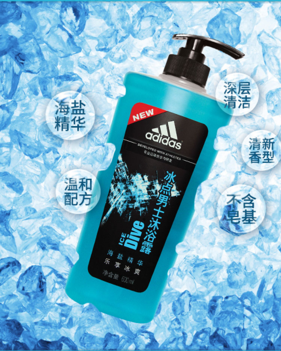 阿迪达斯 (adidas)男士沐浴露套装 激情600ml+冰点600ml海盐香氛 持久留香沐浴露