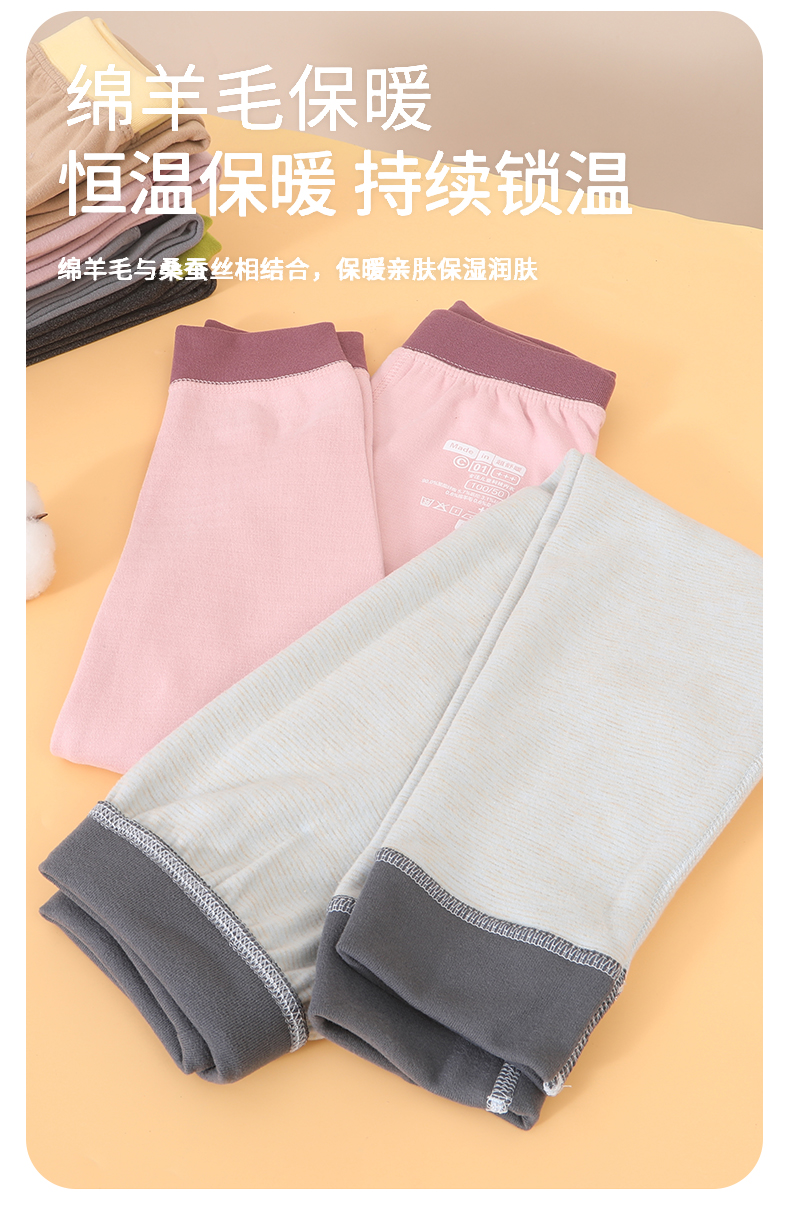 【A类品质,买一送一】【羊毛蚕丝,聚暖高弹】SIIJJEYY冬季新款儿童羊毛蚕丝保暖裤内穿男童女童秋裤加绒加厚绵羊毛蚕丝保暖棉裤