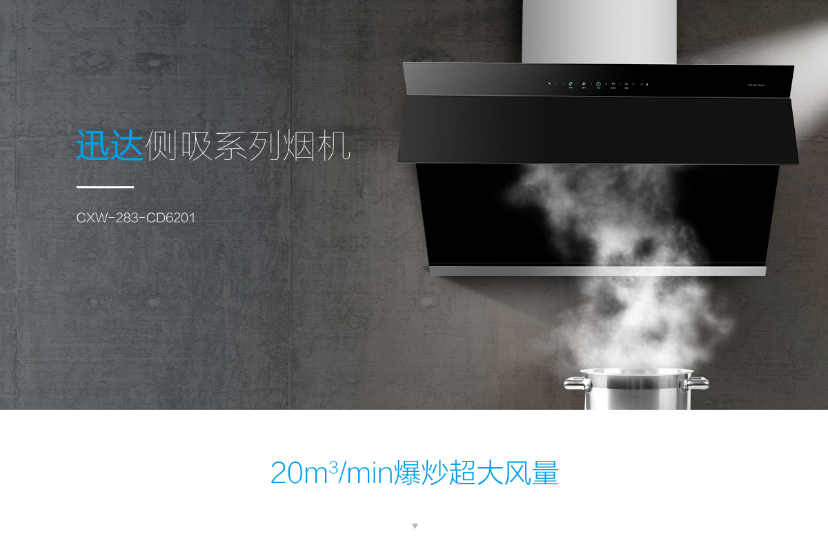迅达(XUNDA)侧吸烟机 20m³大吸力 一键爆炒 智能开合屏 热清洁免水洗 挥手控制 CXW-283-CD6201