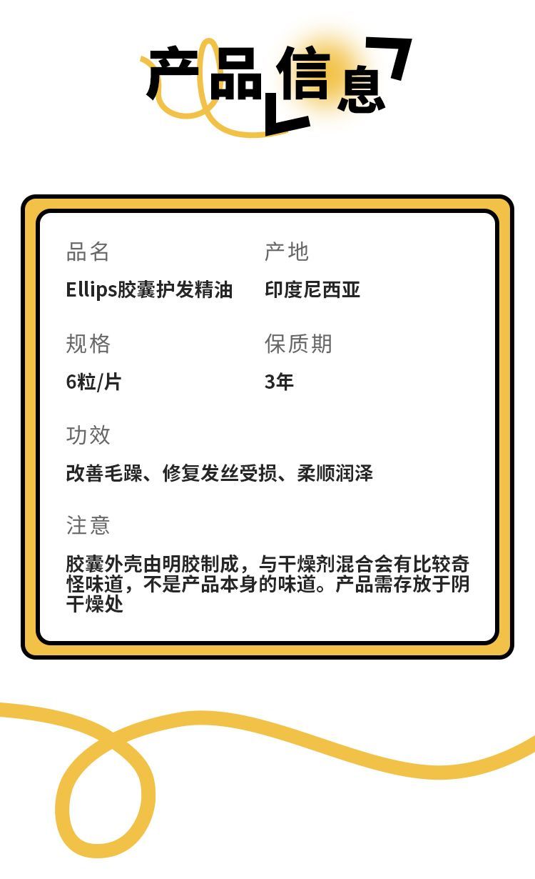 【爆款超低价预售 急单慎拍】Ellips护发精油胶囊免洗毛躁修复干枯6颗装