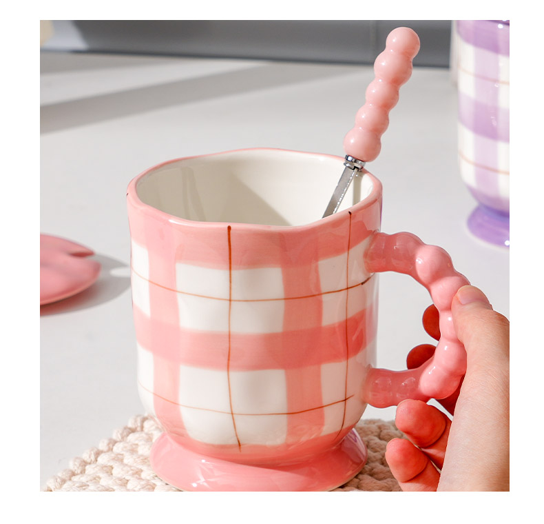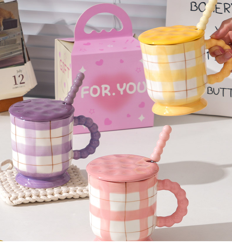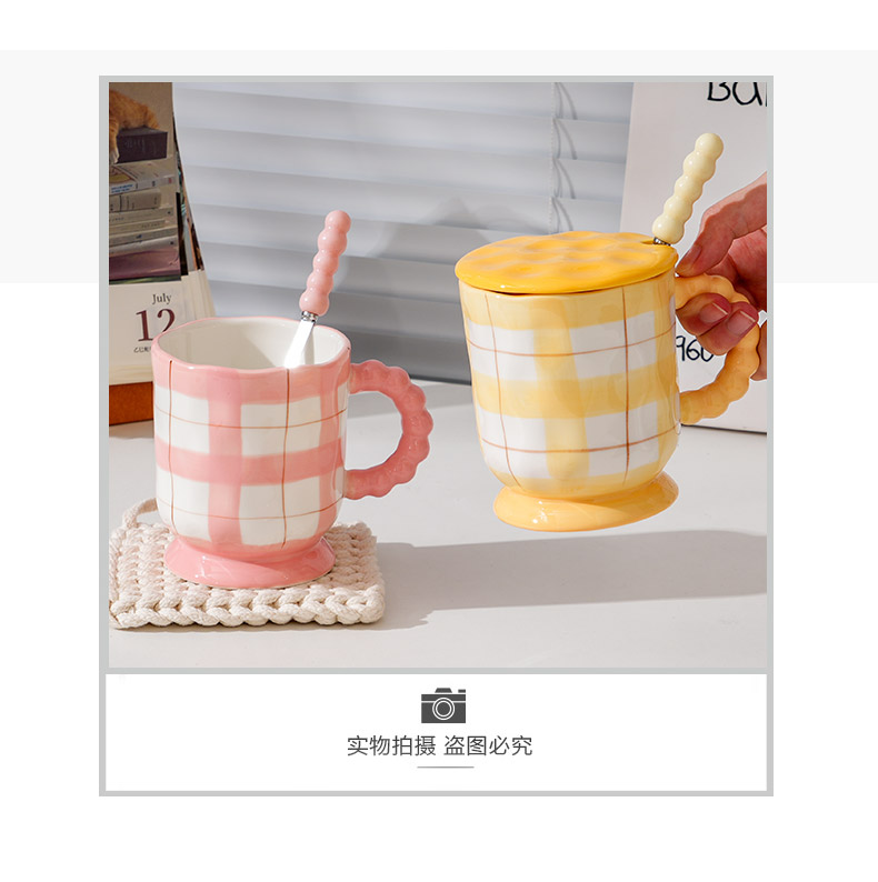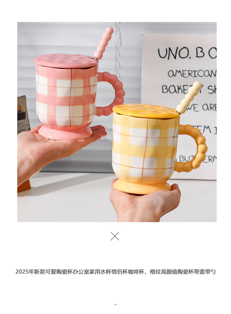 360ml格纹格纹高值带盖带勺陶瓷杯-纪念日百货门店同款167294637