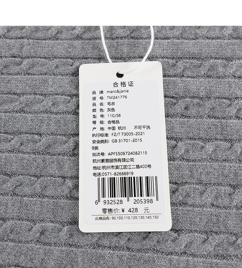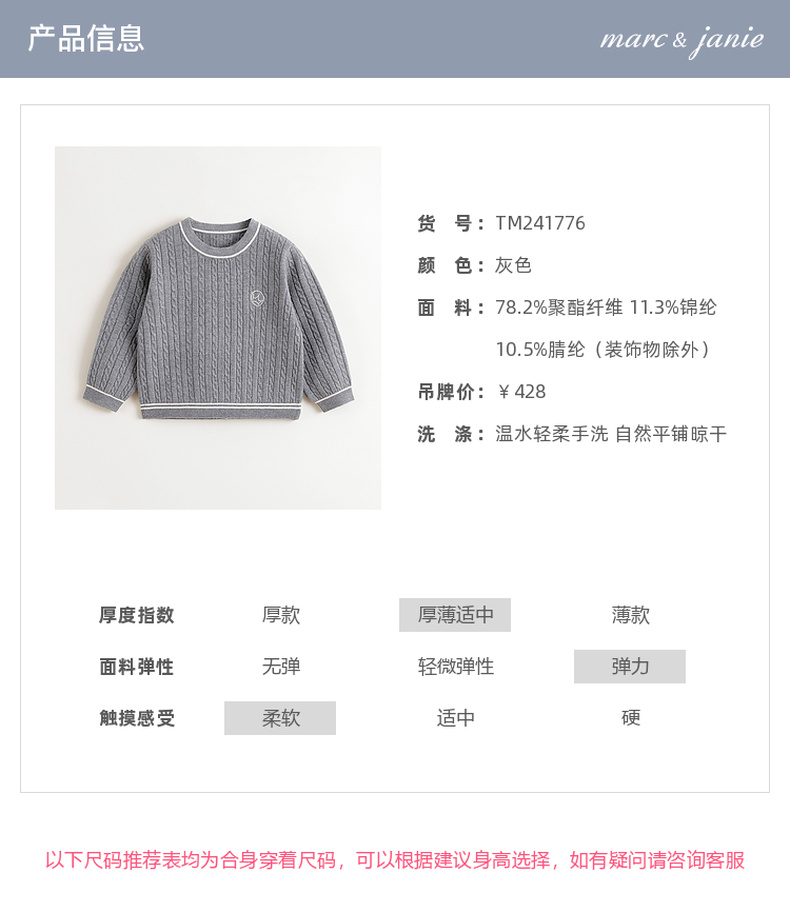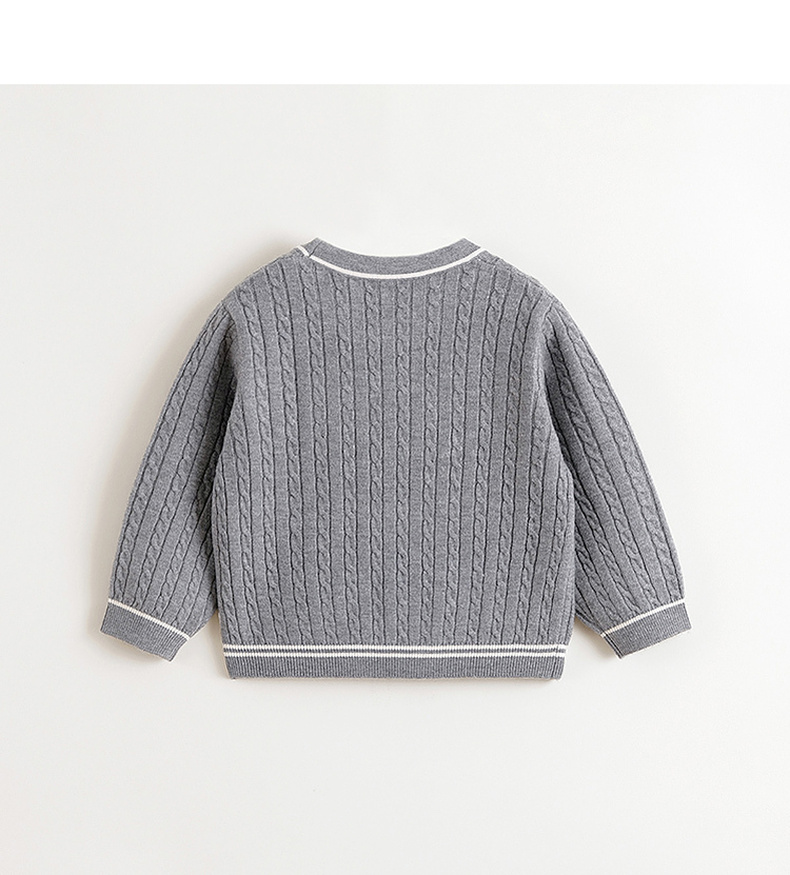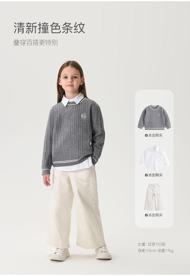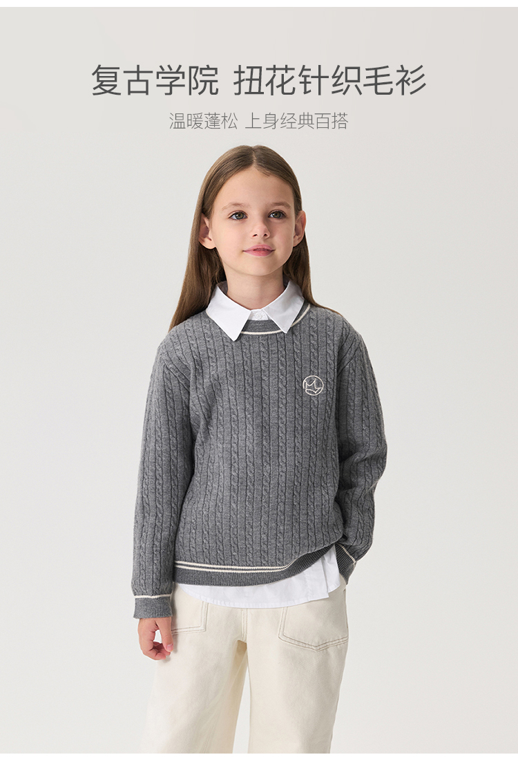 马克珍妮女童复古学院撞色毛衣儿童针织衫2024年秋冬新款241776